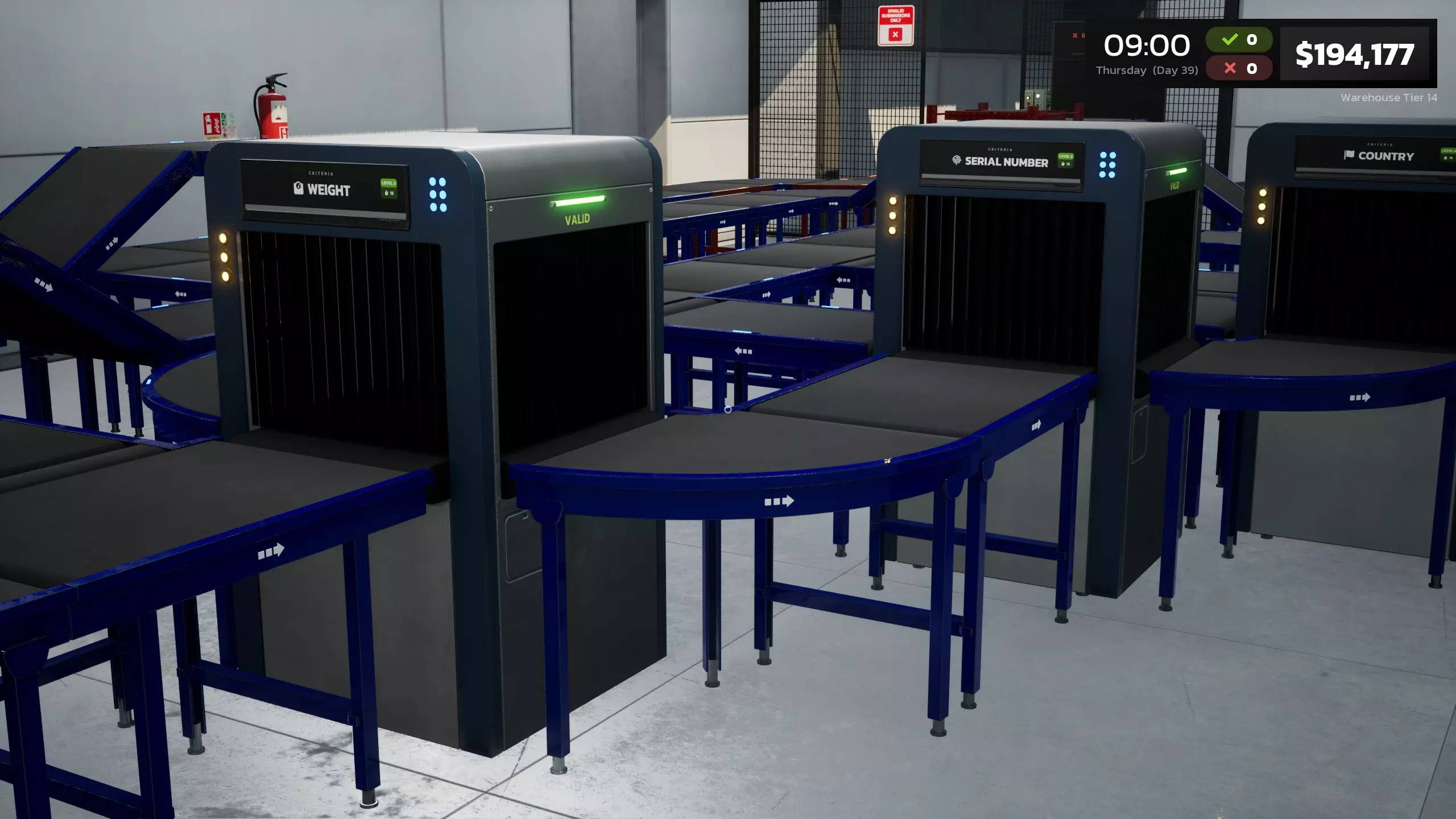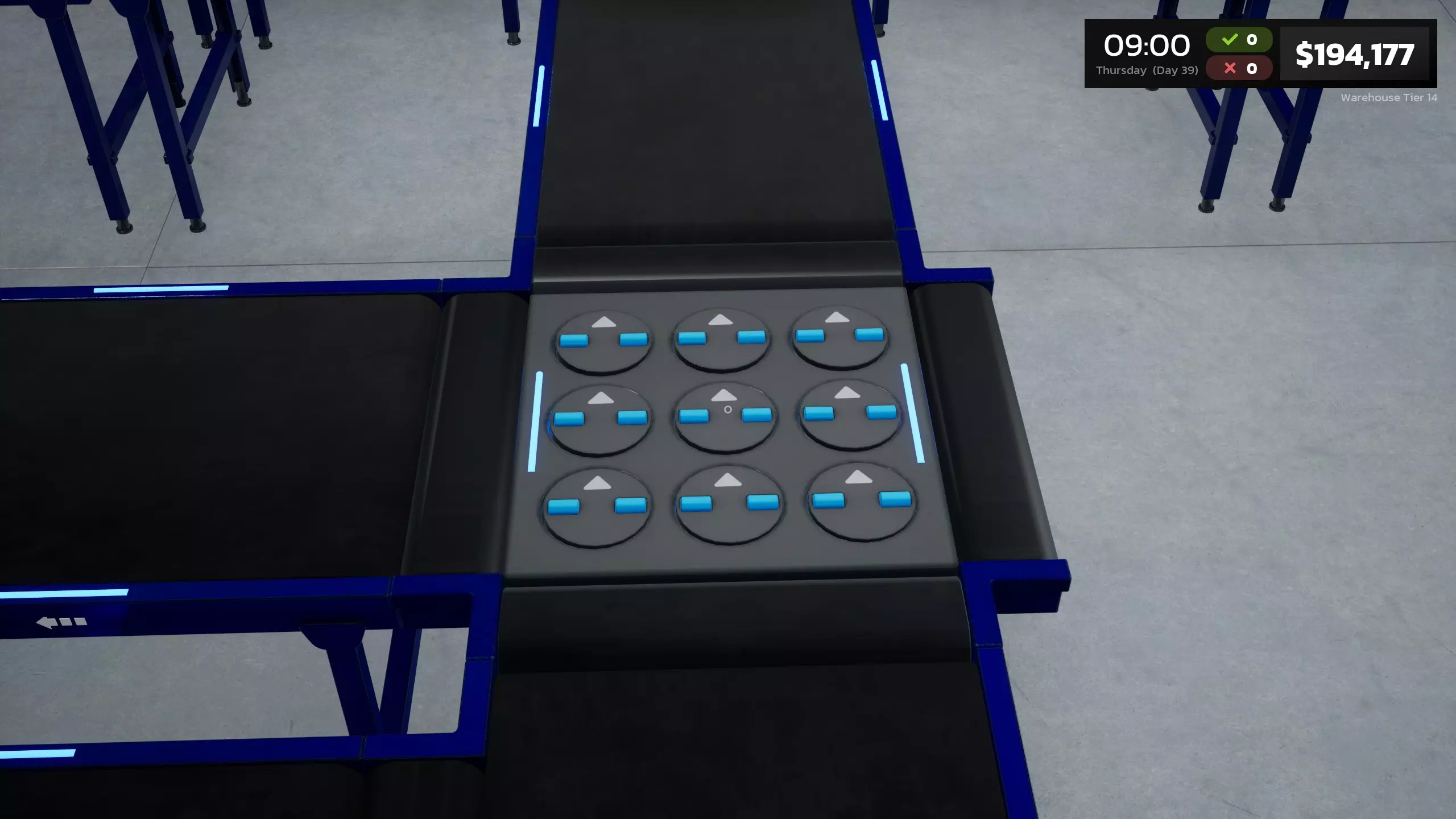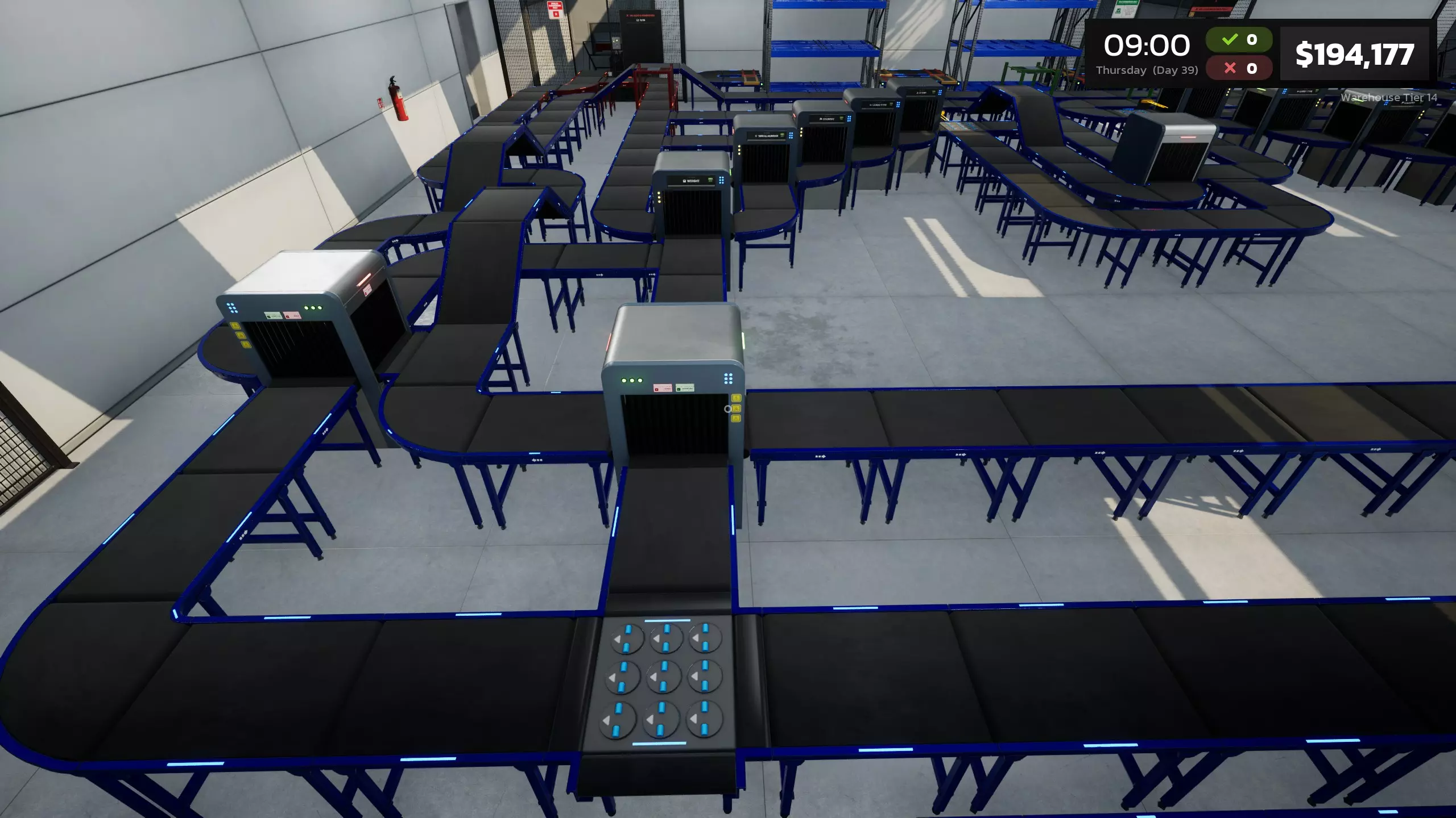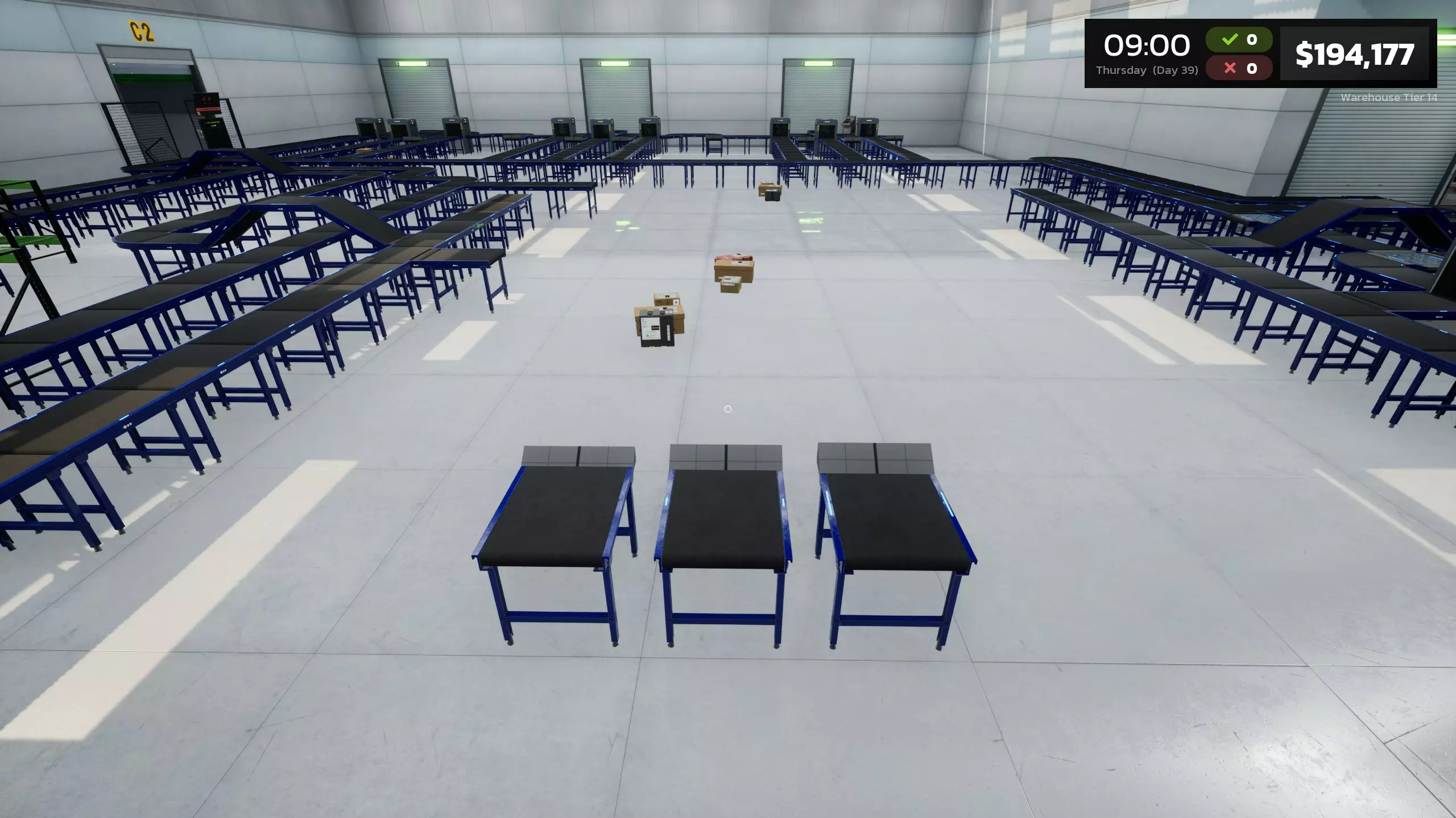要扩展你的业务,首个升级需通过购买体重秤和称重箱许可证来解锁。该升级本身花费700美元。 每个区域升级将为你的仓库提供10x10的扩建空间。共有14个扩展或“层级”可供解锁。下方图片展示了初始区域以及前两个已解锁区域。