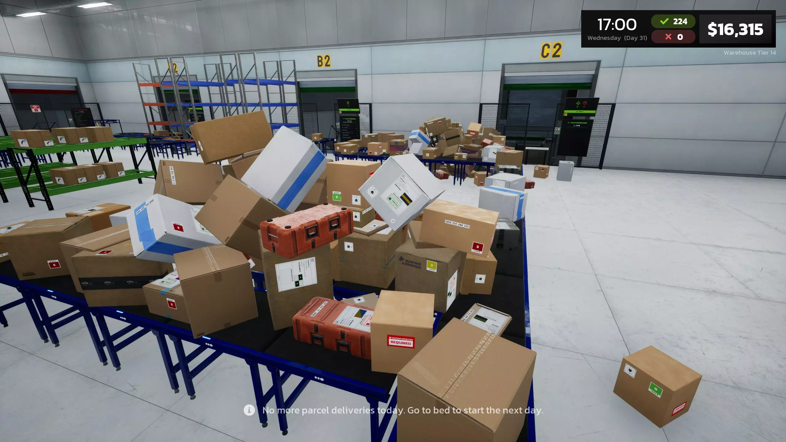 存储架 当你在构建包裹帝国的过程中不断取得进展时,你需要将存储架整合到你的系统中。这样可以防止在你无法提交特定货物类型的日子里,包裹在传送带上积压。