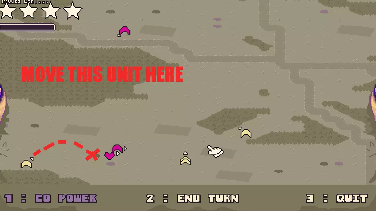 步骤1:将鼠标光标移至任意己方单位(黄色标记)上,即可查看其移动范围,该单位可轻松抵达敌人(红色标记)处。