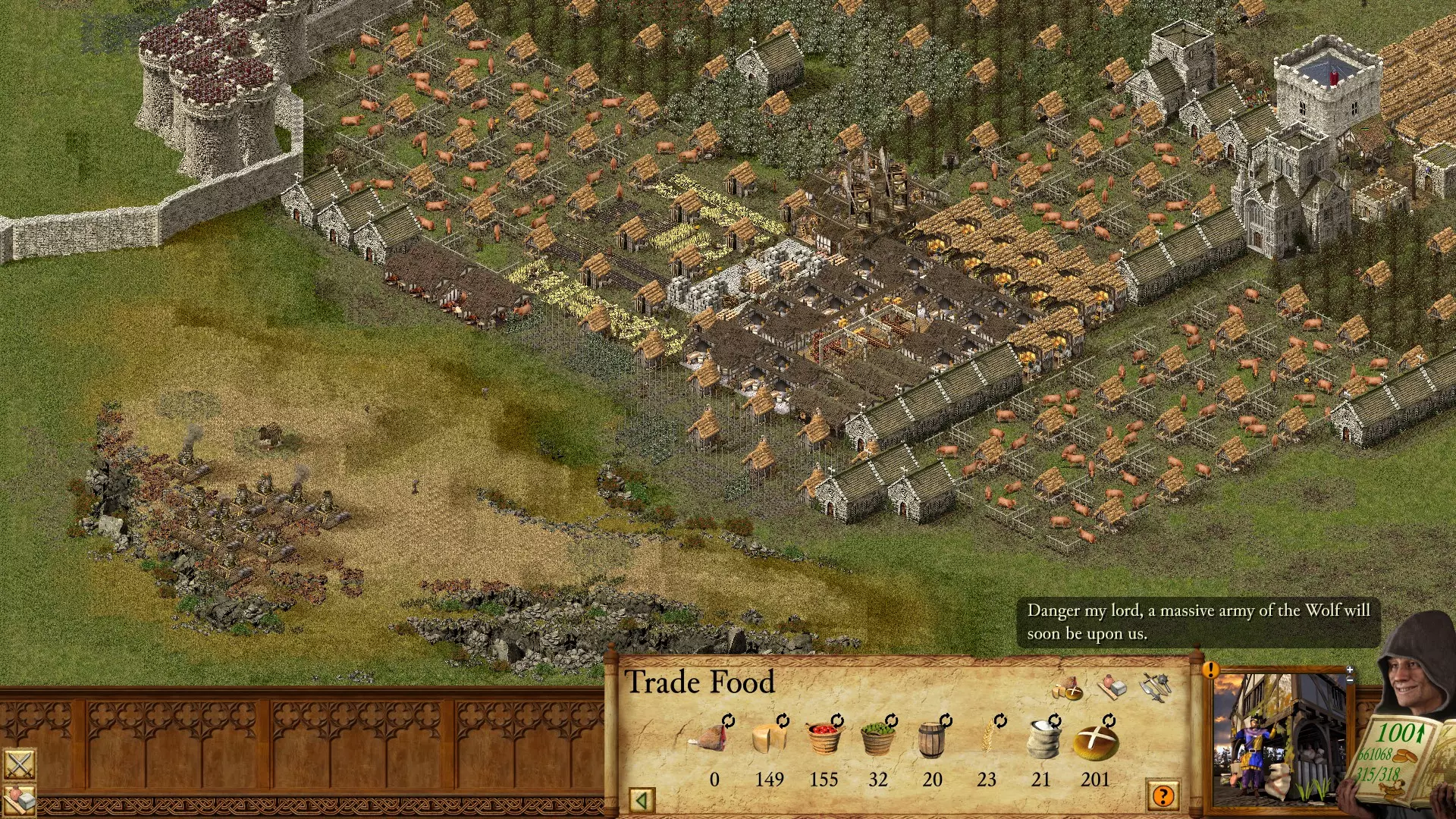 本文介绍了如何建造一座AFK城堡,它能在每分钟一次的极难入侵中坚持约6小时后才会被攻破。通过这种方法,你可以在一夜之间达成【1 million unit kills】成就。在此期间,你还能完成关于武器储备、食物储备、黄金储备以及300人口的相关成就。 关于 虽然有更快的方法来获取多项成就,但这是我在了解那些方法之前所采用的方式。我认为这种玩法能带来《要塞》中通常不会遇到的有趣选择,也让我从不同角度思考了游戏的某些方面。至少作为一种新奇的玩法,我把它分享出来。对我而言,这确实是一种更“正统”的获取大量成就的方式,不过这其实也无关紧要。 战前设置 选择【自由建造】模式的【草原】地图。将初始物资与黄金设置为极高。将入侵难度设为极难且每分钟一次。设置60分钟和平时间。关闭随机事件。 前10分钟: 将游戏速度降至10。将城堡主楼放置在中间区域的某处,然后在仓库囤积大量物资前立即将其摧毁。 将仓库和谷仓放置在中间位置但远离城堡主楼,两者之间留出足够空间用于建造双排面包房。之后建造一座市场。 你总共需要大约4个仓库。在仓库周围建造9个小麦农场和3个磨坊。在仓库和谷仓之间建造16个面包房。最终将面包房数量增加到32个。这应该能轻松养活300名农民。 建造3个奶牛场,并在其附近建造8个制革厂。建造8座 Fletcher(制箭厂)并让它们生产弩箭。尽量将它们都建在靠近仓库和军械库的位置,以确保效率最大化。最后建造4组3x3的住房(也就是9间 hovels(茅屋)呈方形紧密排列)。 当木材耗尽时,直接从市场购买更多。 接下来40分钟 首先建造采石场和 ox tethers(牛棚)。在资源允许的情况下,建造铁矿、沥青提炼厂,以及9个啤酒花农场、12个酿酒厂和10个酒馆。这样应该能实现100%的酒馆覆盖。保留石头用于建造塔楼,其他资源尽量出售。反正你最终还是需要购买石头来建造所有塔楼,所以最重要的是保持黄金的流入。在不降低声望的前提下,尽可能提高税率。开始设置市场自动交易以促进这一点。以下是具体细节说明。 和平时期结束前,你需要在每个路标处建造5座配备弩炮的塔楼,并至少训练100名弩手以应对初期入侵。在和平时期结束前保存游戏,这样你可以随时从此节点重新加载。 你需要购买武器才能实现这一目标。鞣皮匠和制箭匠会有所帮助,但只要有可能,你应该购买弩和皮甲来训练更多弩手。我通常以25人为一组进行训练。训练25名士兵所需的武器、盔甲和训练费用总计为2575金币。要训练1500名士兵,通过这种方式至少需要154500金币,这还不包括工程师和弩炮的费用。 挂机建议:持续建造防御工事,直到在每个路标处拥有至少17座配备弩炮的圆形塔楼,且每组塔楼部署500名弩手。建造城墙,将敌军引导至中上部的路标处,但不要封闭要塞主楼。AI寻路机制会帮助阻止敌军攻击你的防御设施。 将市场设置为自动交易所有资源。建议设置为:若食物资源(包括啤酒花、麦芽酒、面粉和小麦)存量低于20则全部买入;存量超过50的资源全部卖出;其他资源存量超过20则卖出,低于10则买入。这对于长时间挂机时维持经济运转至关重要,尤其是食物和麦芽酒的生产。 防御设施全部建造完毕并配备人员后,最后一步是将游戏速度调至90,让敌军浪潮以最快速度袭来。注意,在下方图片中,我还额外增加了苹果和奶牛场的食物产量,以及一些教堂。这有助于提升声望,但并非必需。确保在和平时期优先处理好上述列出的事项,再进行其他操作。 图片 以下是我的城堡布局图片。这个布局让我在大约6小时内获得了约75万击杀数,之后城堡才被攻破。我只需重新加载和平时期结束前的存档,再让游戏运行一段时间就能达到100万击杀数。或者,你或许可以在中央入口处再部署一批弩炮和500名弩手。