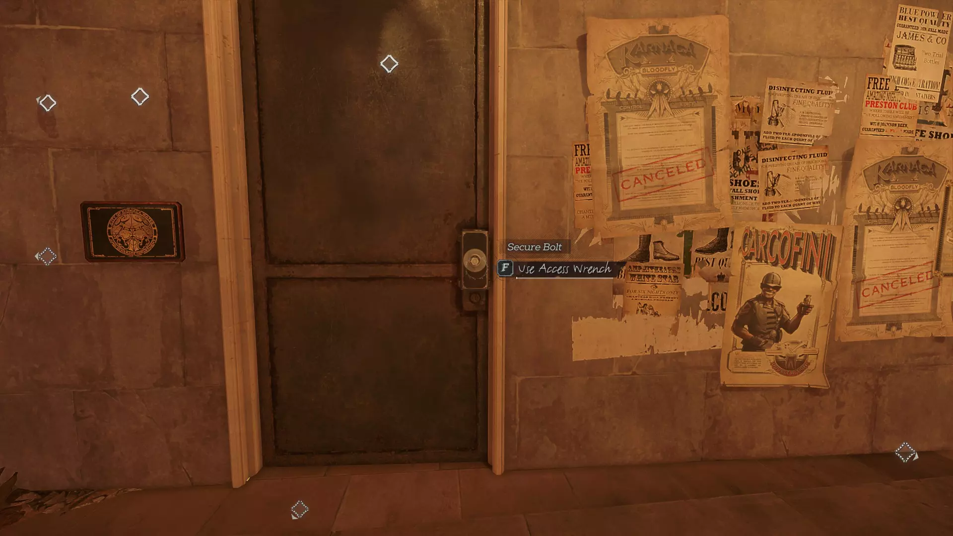 费雷拉道上有一扇门,门上锁着坚固的门闩。如果你从多洛雷斯·迈克尔斯储蓄贷款银行下方的工人那里获得【访问扳手】,就可以用它来松开门闩并打开这扇门。这里会有一个任务目标,因为这是闯入银行的一种方法。