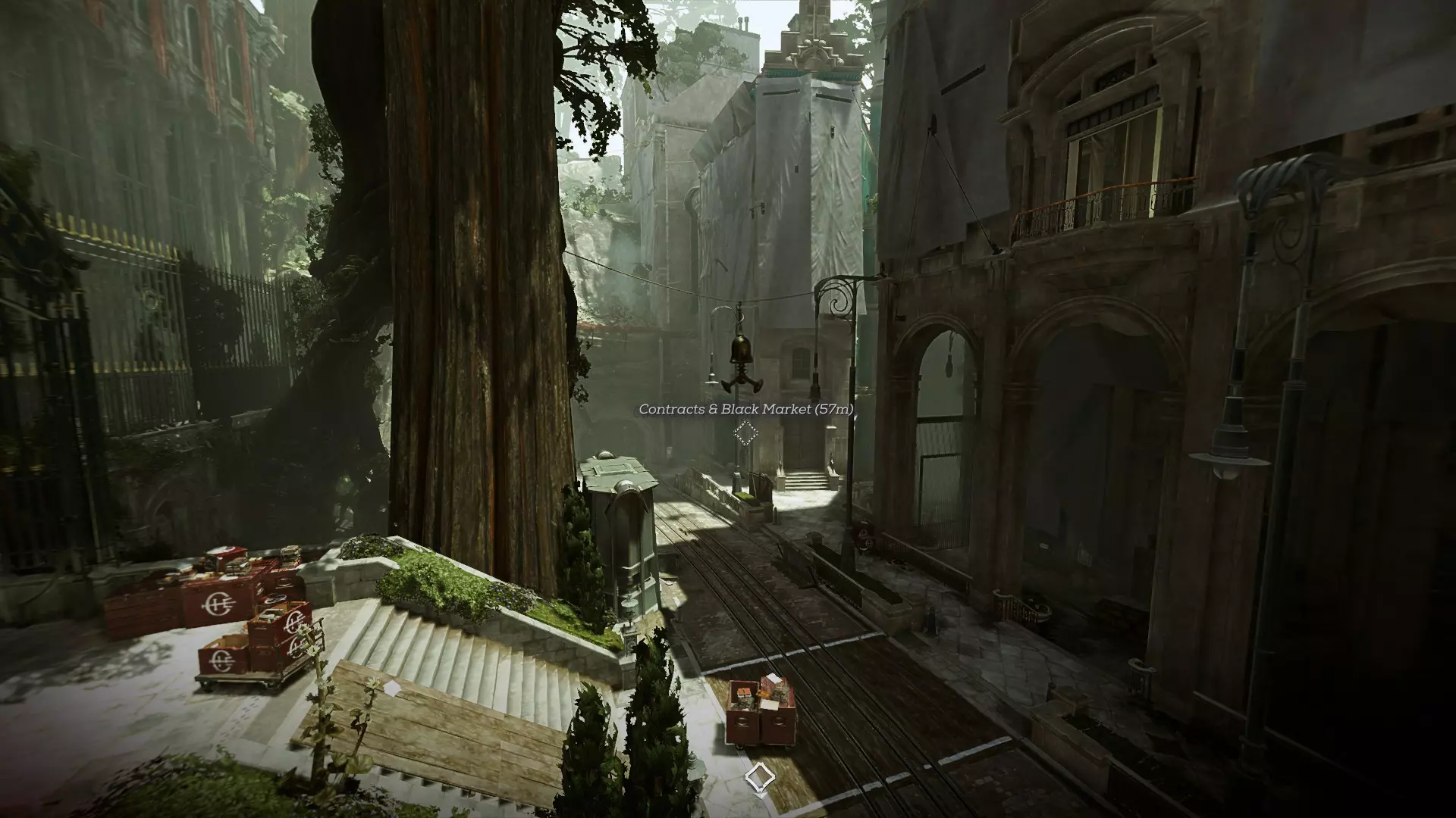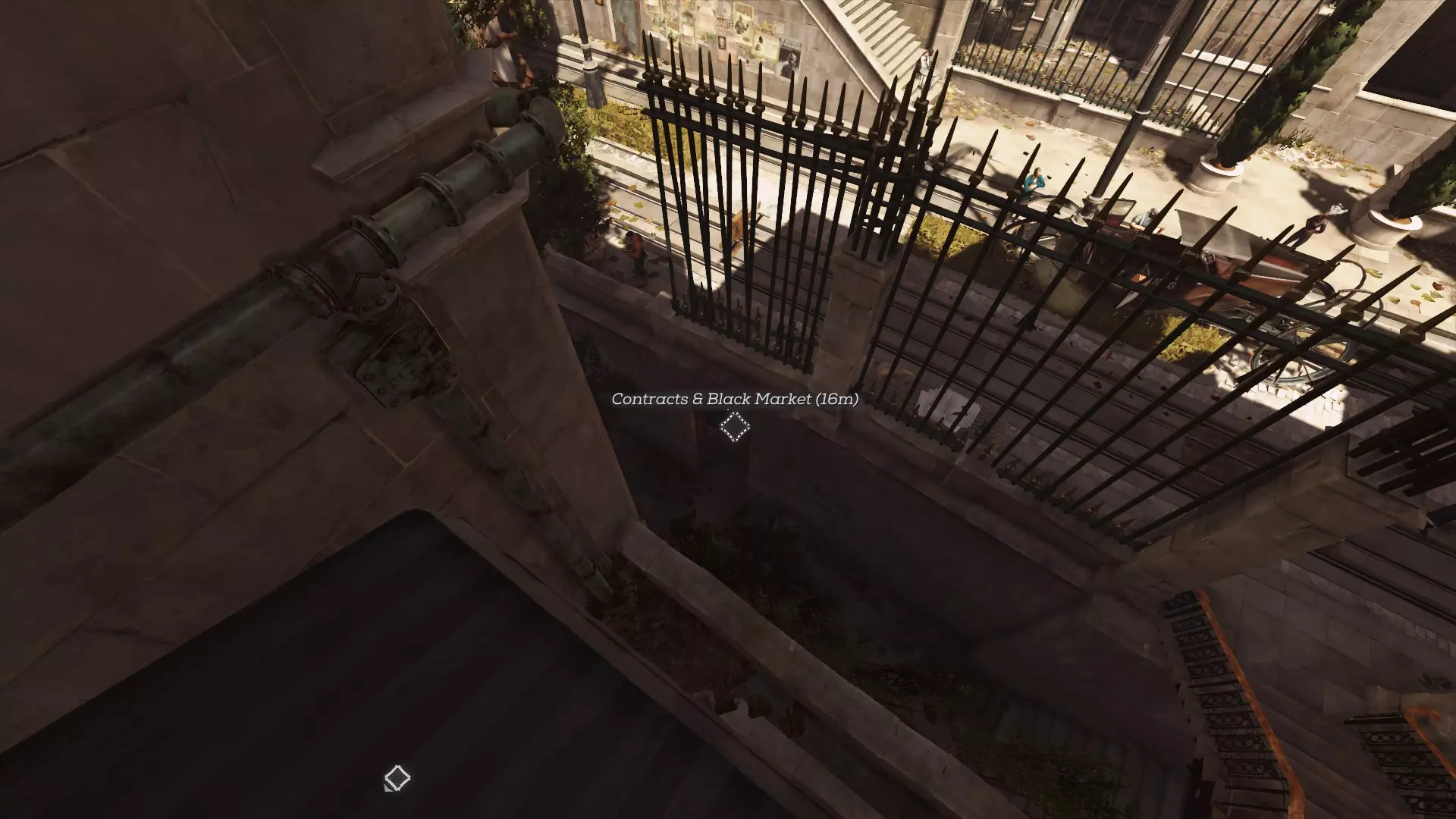 开始任务时,你会接到可选目标【黑市与契约】。前往这里的路径有很多,其中一条路会经过一辆破损的马车。从街道走下楼梯,进入楼梯底部的门即可。