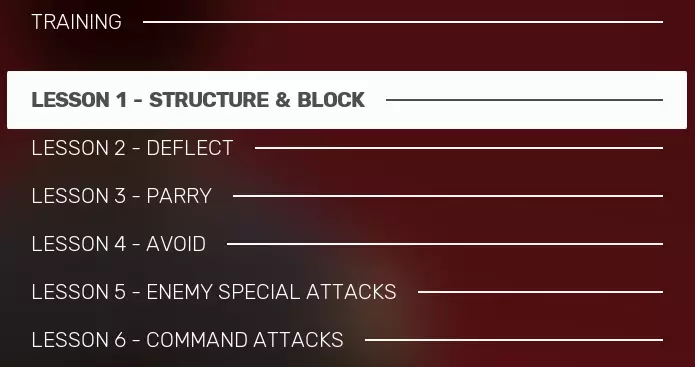 如果你与武馆中的训练假人互动,或在【竞技场】中点击【训练】选项,就会进入教程菜单。教程会讲解基本的游戏机制以及应对特定情况的方法。不要跳过这些内容,从长远来看它们对你很有帮助。