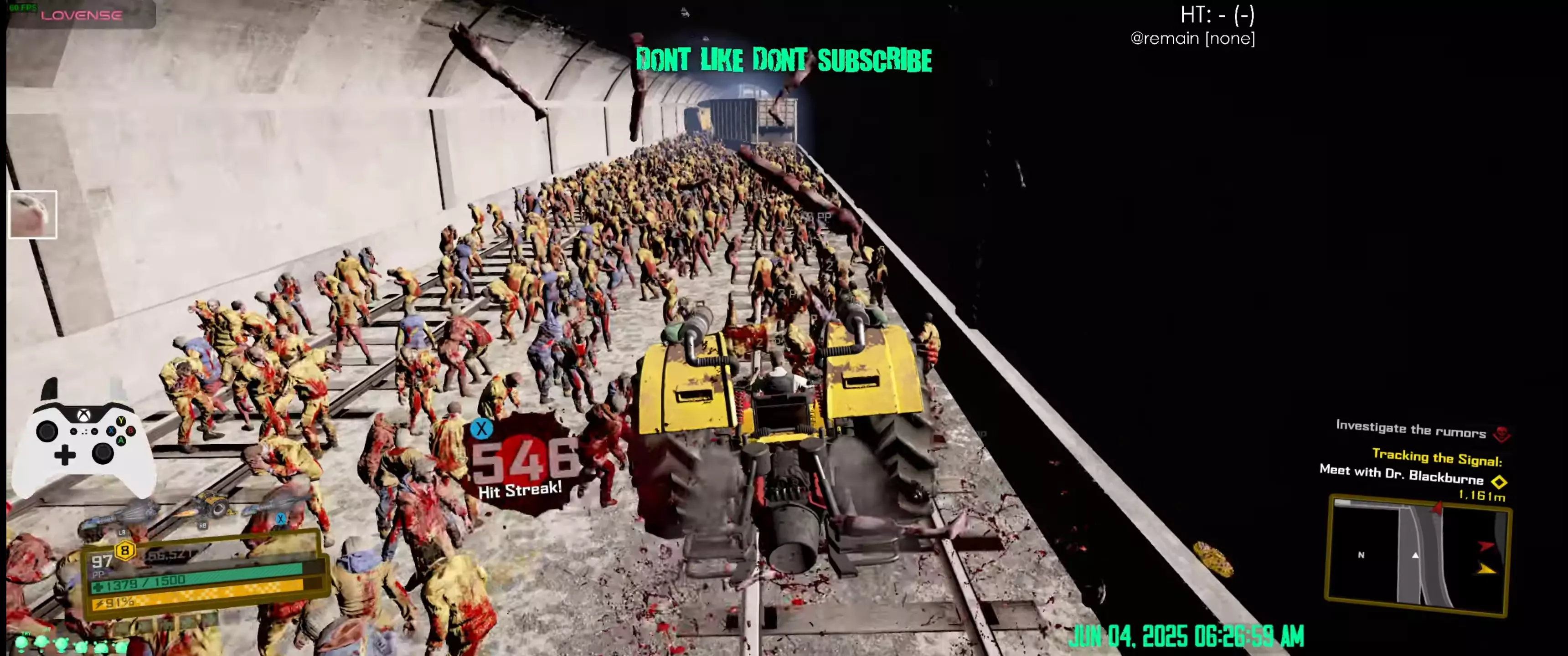 如果你正在使用【轨道制造者】,请以一定角度靠近实际的金属轨道,这样你就不会暂时卡住。 差不多就是这样了。 视频中还提到,在进行此操作时,你可以完成100次载具击杀中的全部或部分,以及500只新鲜丧尸中的全部或部分。不过,我建议在商场完成500只新鲜丧尸的挑战,因为停车场会有一个短暂的切换场景,出现5只新鲜丧尸,这样你还能获得完成这些挑战所需的键盘和手套。但对于100次载具击杀来说,这是个绝佳时机,因为前往轨道的路上大约有4辆载具,轨道上本身至少有3辆,而且在同一加载场景下它们会重生。我强烈建议不要尝试一箭双雕,在使用这种方法的同时,通过1000或2000连击来获取PP。还有另一种更简单的获取PP的方法,使用真空强化或冰冻强化时,你可以轻松达成2000连击以获得10000PP,这种方法更省时、更容易,而且执行起来更快。相信我,对于刷PP来说,使用外骨骼真空或冰冻强化比在驾驶载具时尝试结合僵尸击杀和连击PP要更简单、更快,还能节省更多时间。这段视频展示了我尝试同时获取僵尸击杀数和连击PP的过程。不要这么做。只需刷隧道里的尸潮,然后驾驶全地形车和 dirtbike 到天桥重置尸潮即可。