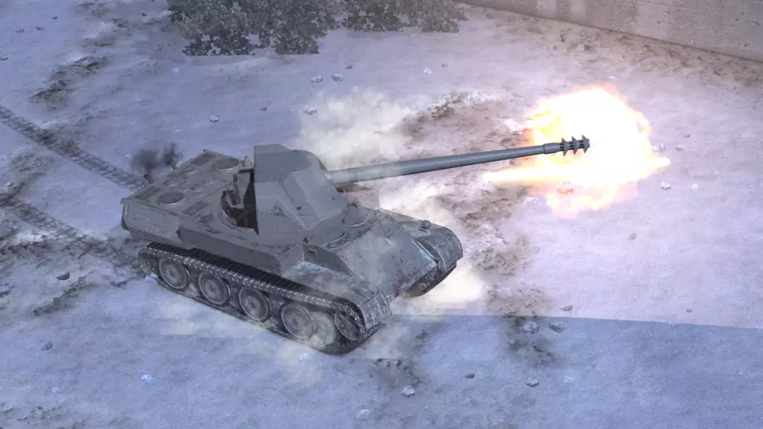 T54E2搭载一门105毫米主炮,平均穿透力为220/260/53,平均伤害为310/260/440。炮控精准,移动射击仍能保持较高的命中精度。配合4.4秒的瞄准时间与9.3秒的装填时间,具备可靠的持续输出能力。该车拥有40千米/时的前进极速与20千米/时的倒车极速,机动灵活,足以支撑远距离转场作战。出色的机动性使其不仅限于卖头对线,还可利用机动优势进行侧翼突袭与战场支援。