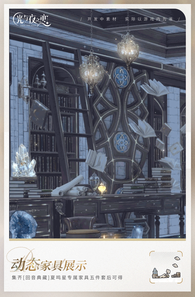 制作集齐[回音典藏]系列夏鸣星专属家具五件套后,可在长期计划处领取纪念动态家具图纸。