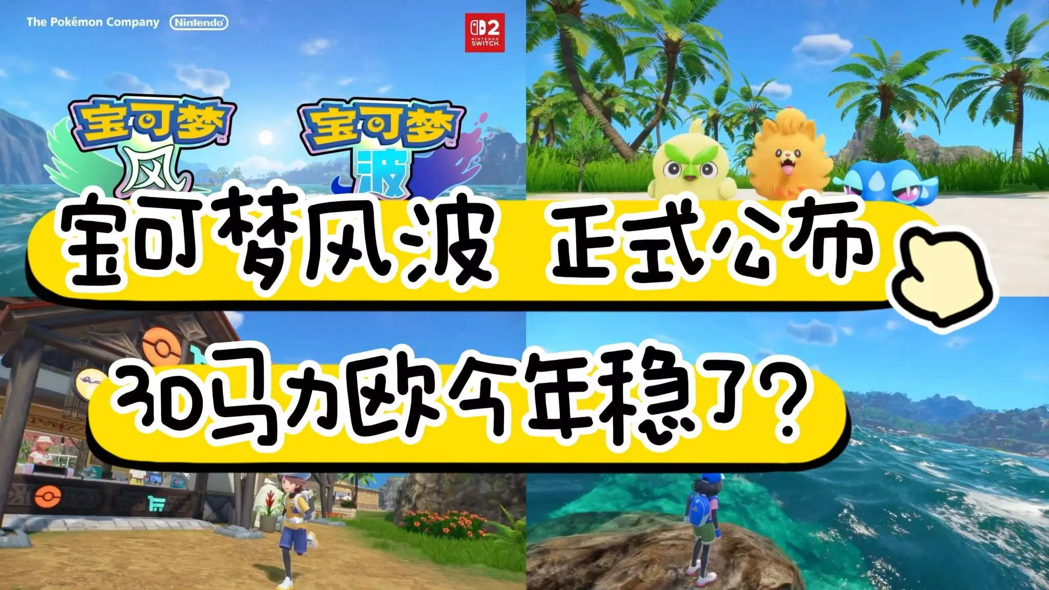 万众期待的宝可梦第十世代正统新作《宝可梦 风/波》终于正式公布了,本作为Switch2独占,将于2027年全球同步发售。