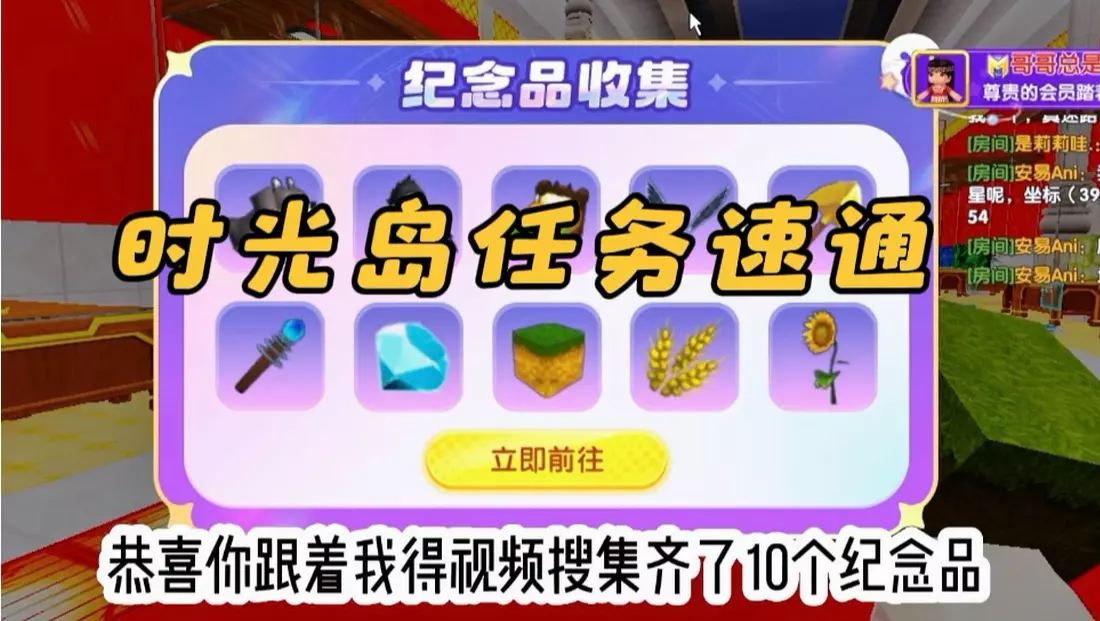 10个纪念品全部收集完后,进度条推进100