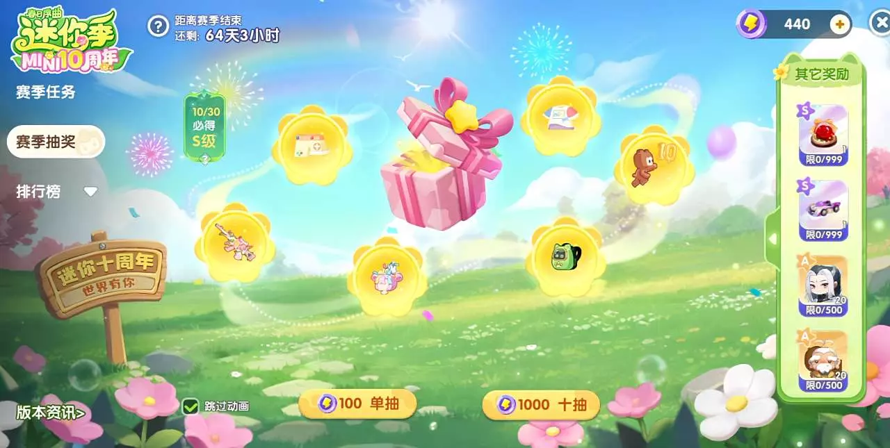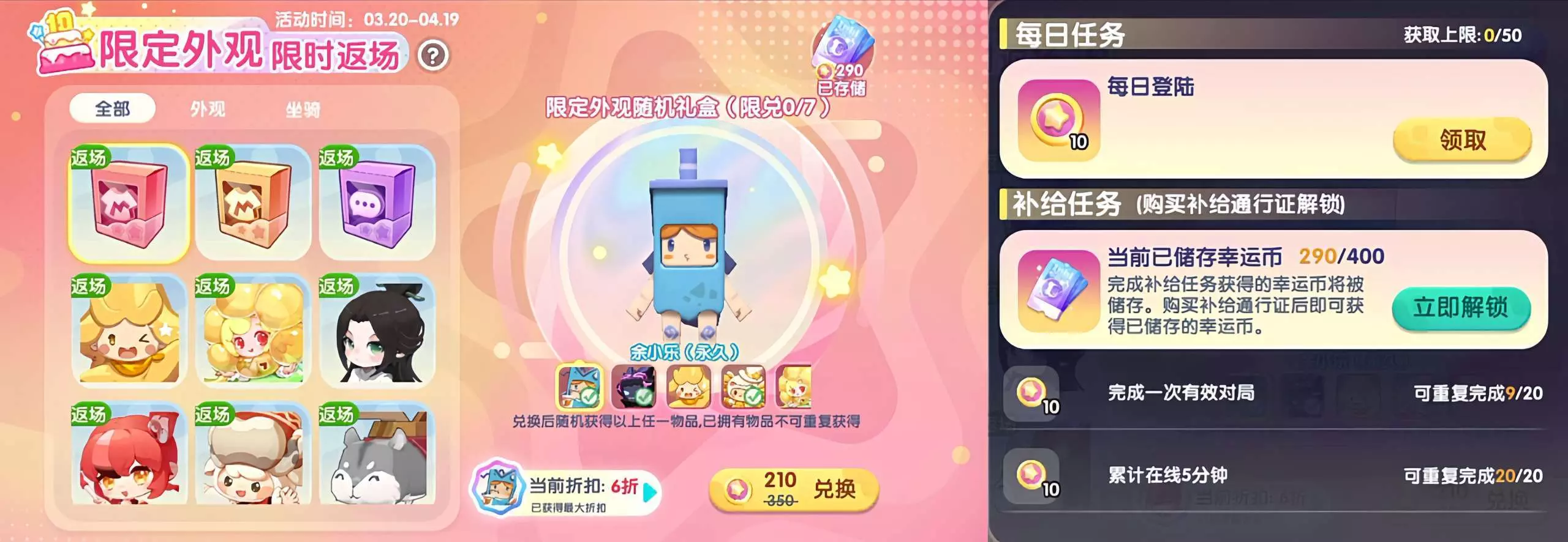 每日登录可领取10幸运币,可花费78迷你币解锁通行证。