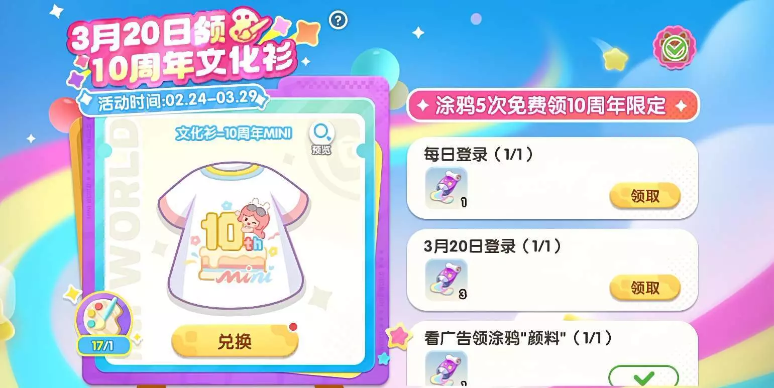 涂鸦5次可全部解锁,3月20日登录即可兑换