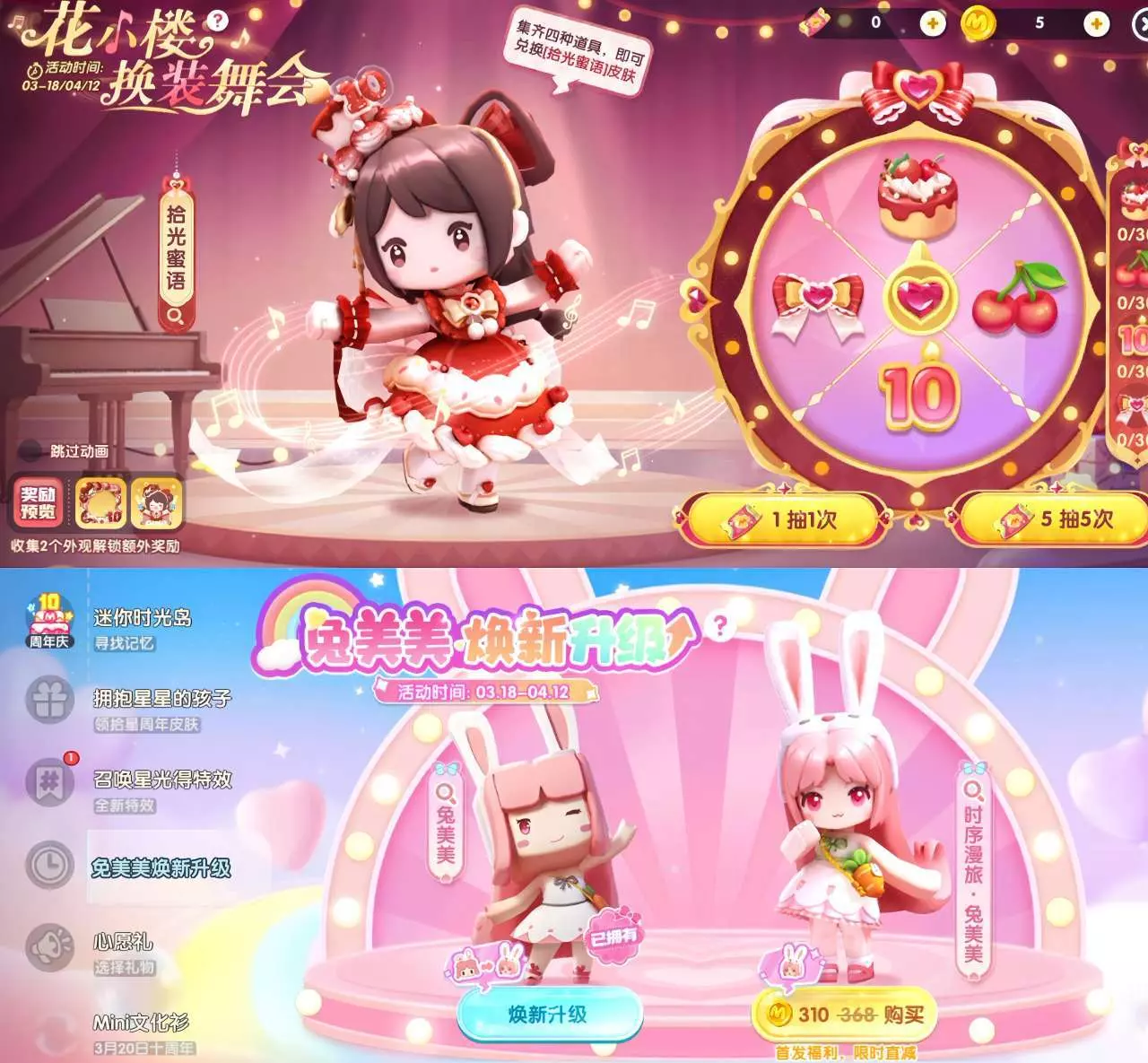 注:兔美美新皮肤价格为310迷你币,老皮肤为300迷你币。
