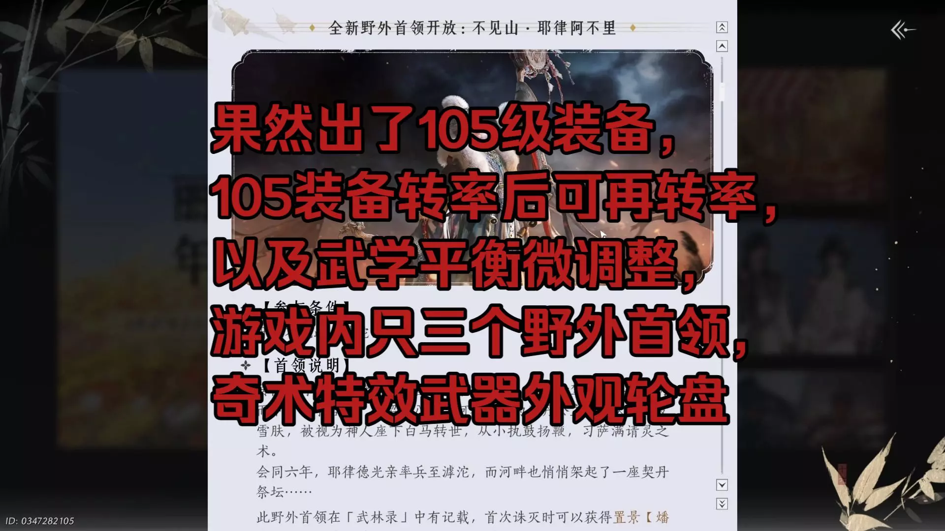 燕云3月27号更新公告速看(果然出了105级装备,新105装备转率后可再转率,以及武学平衡微调整,三大野外首领,奇术特效武器外观轮盘)