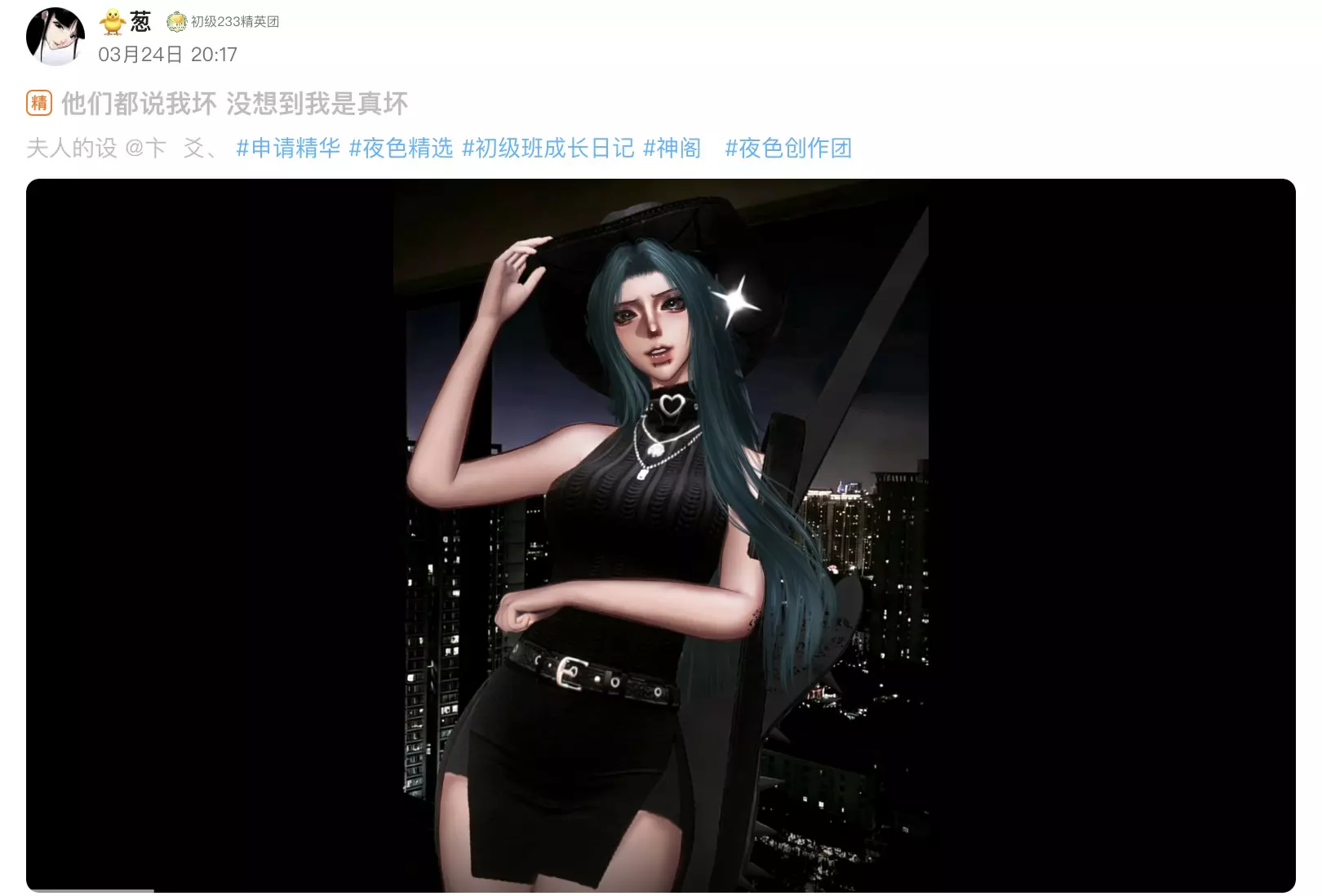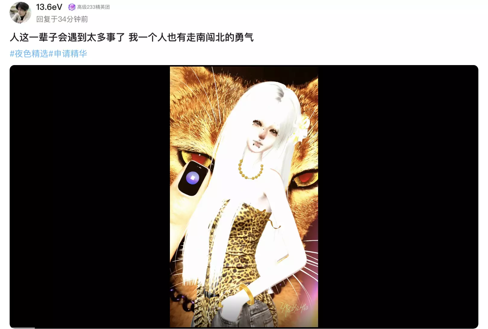 本期周刊就到此谢幕噜~每个作品都值得被欣赏,希望各位小伙伴可以继续在夜色圈分享热爱!期待下次能看到更多创作者们带来的惊艳作品呀✨