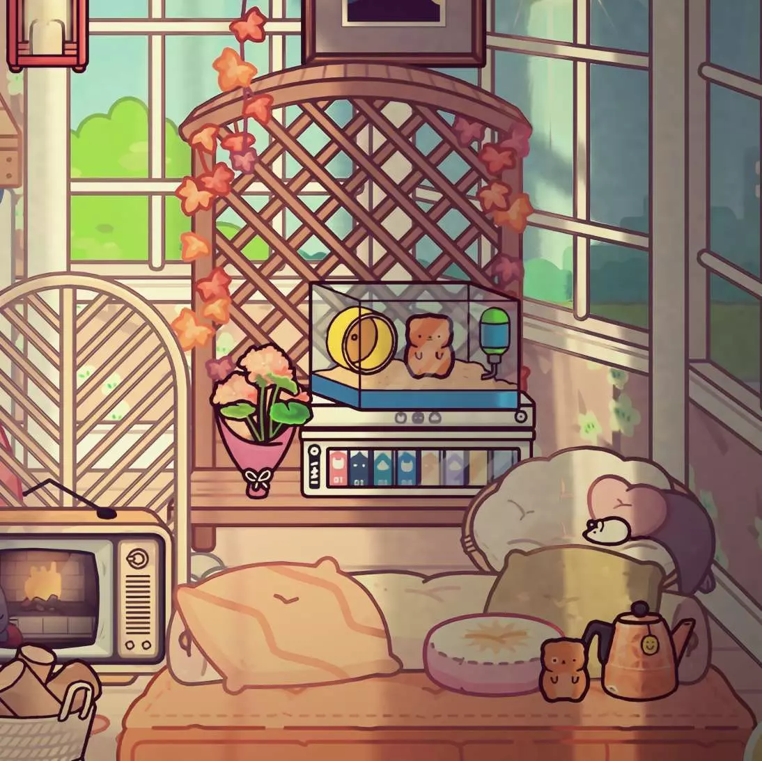 这是一则托卡建筑相关的社区帖,展示了充满温馨氛围感的托卡房间布置,房间内有书桌、床铺、装饰摆件等丰富陈设,作者借文案抒发怀旧情绪,申请精华。