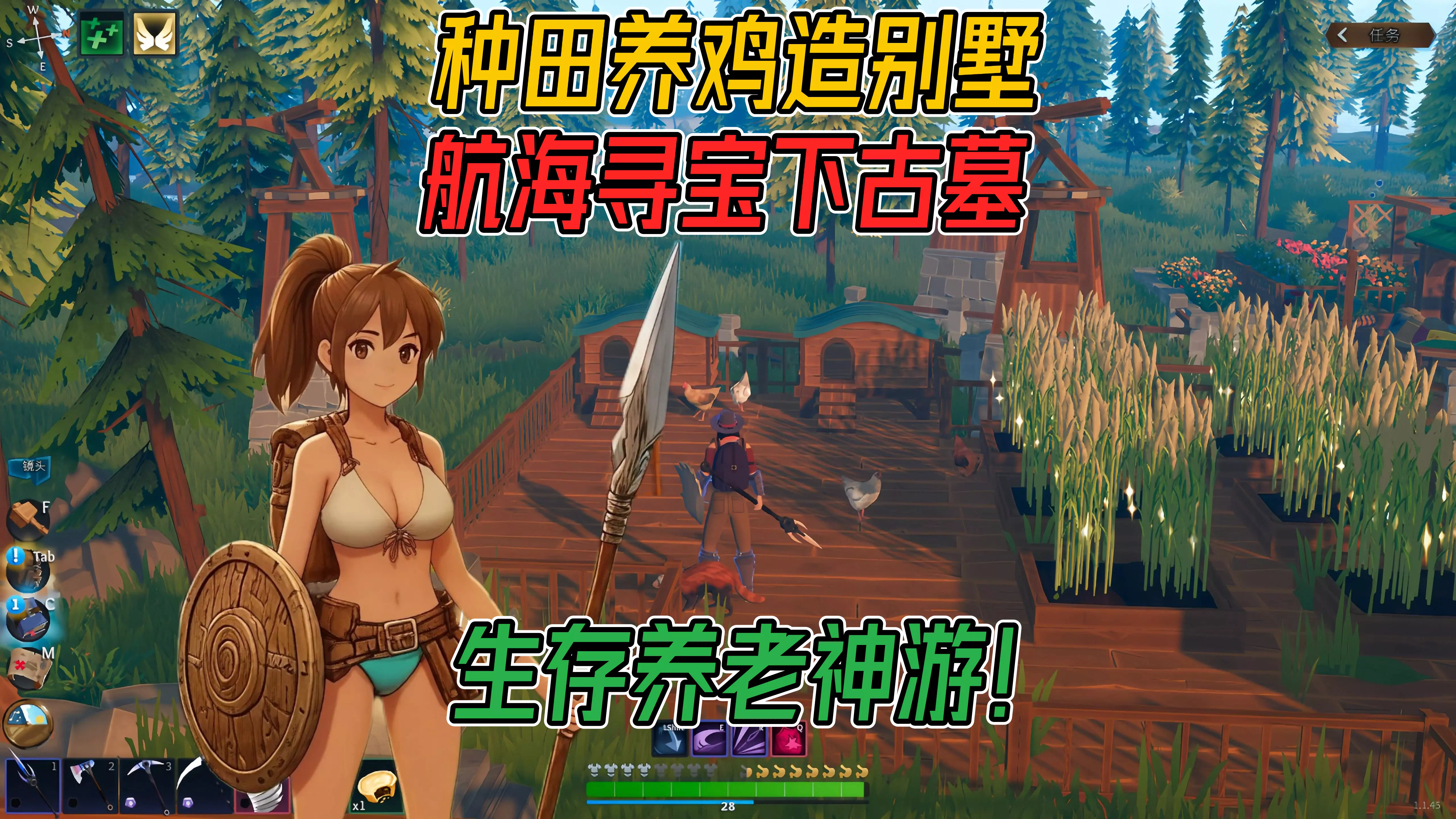 之后给大家演示了如何附魔装备以达到事半功倍的效果,如何解锁家具蓝图装修自己辛苦肝出来的房子,以及如何开启伐木场和设防。