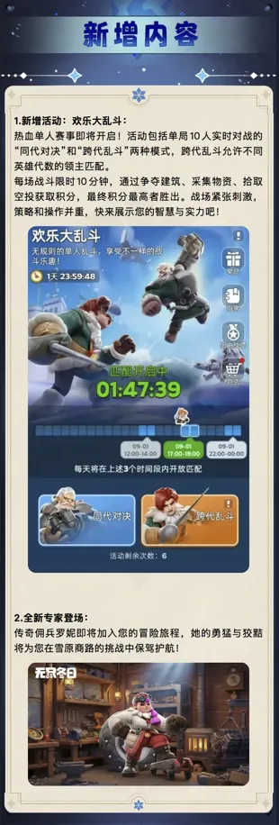 更新公告 | 欢乐大乱斗、雪原商路专家,以及30+优化重磅来袭!