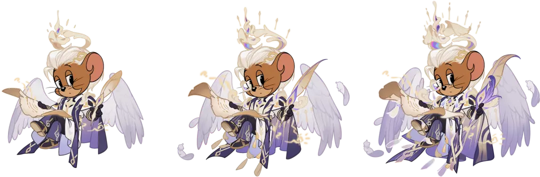 在3S级状态时,天使杰瑞将会拥有走、跑、跳等全套的符文与羽翼交织飘扬特效,在使用护盾饮料后,天使杰瑞身上还会出现羽翼护佑下符文流转的护盾哦!
