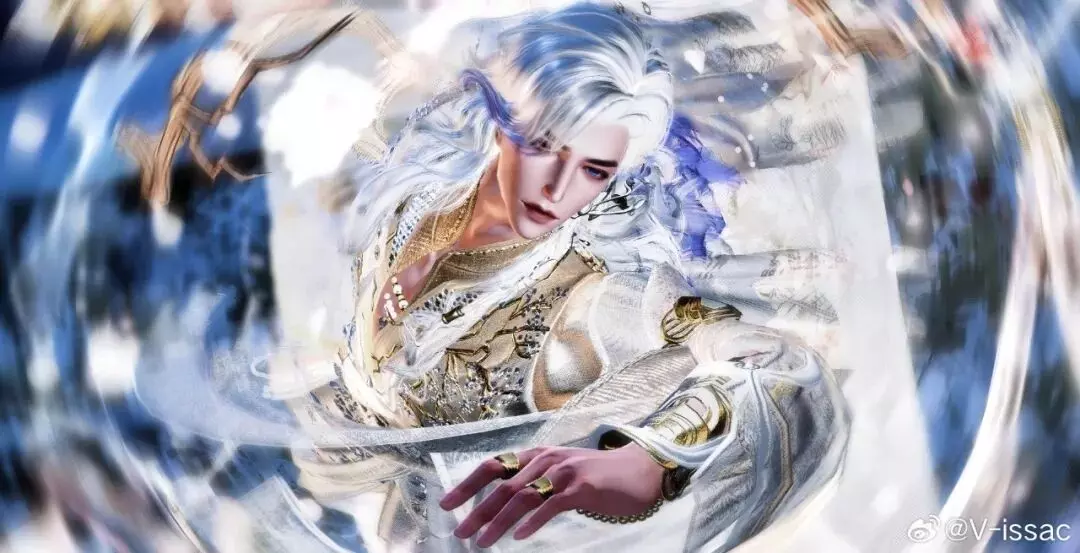 花间风起时,云阶踏浪,星芒展锋。少侠银白长发搭配淡紫挑染,金纹绣枝蜿蜒于时装・繁星缀碧间,腕间金饰轻扣,恰是敛于袖中的锋芒。