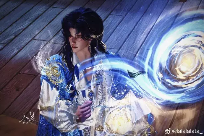 少侠 @鹧鸪停玉楼身着时装・星野梵空,抬手间将整片星夜拥入怀中,蓝发随气流轻扬成浪,衣袂上的漩涡纹理与身后星夜交叠。是奔赴星海的热忱,是俯瞰尘寰的孤高,更是与宇宙共振的热烈与浪漫。