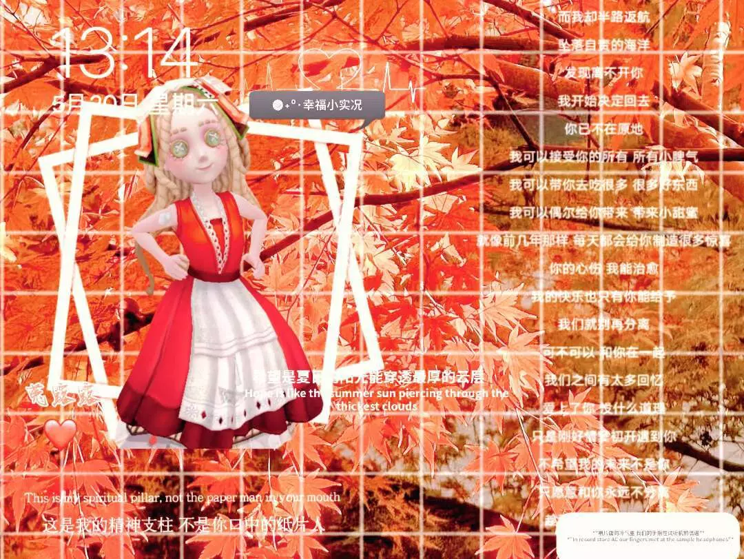 这是第五人格相关的美图帖,展示了角色菟露露的秋日主题精美造型,配文传递出在意情绪陪伴的暖心观点,表达了对该角色的喜爱。