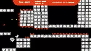 这是高难度游戏《the hardest game in the universe 2》的视频介绍,游戏画面布满尖刺、飞行障碍等危险机关,玩家操作的角色极易死亡,从画面的死亡次数可见其超高的挑战性。