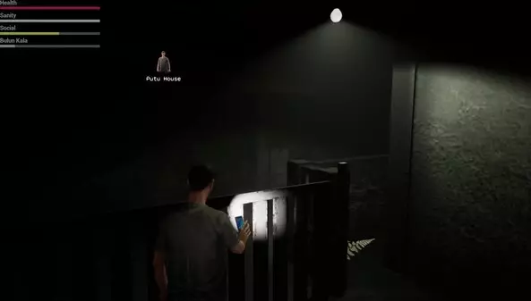 这是恐怖游戏《Niskala Sacred Knowledge of Leyak》的视频介绍,展示了主角Putu在夜晚的场景中,遭遇怪异灵体,还提及他在圣室发现了 lontar,打算后续探寻,游戏带有健康、理智等数值设定,氛围惊悚。