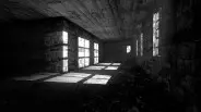 这是《Lazarus Darkness》的视频介绍,视频展示了昏暗阴森的室内场景,有复古吊灯、皮质沙发、铁笼等元素,整体氛围诡谲,该内容为WHITE VORTEX制作的未完成作品。
