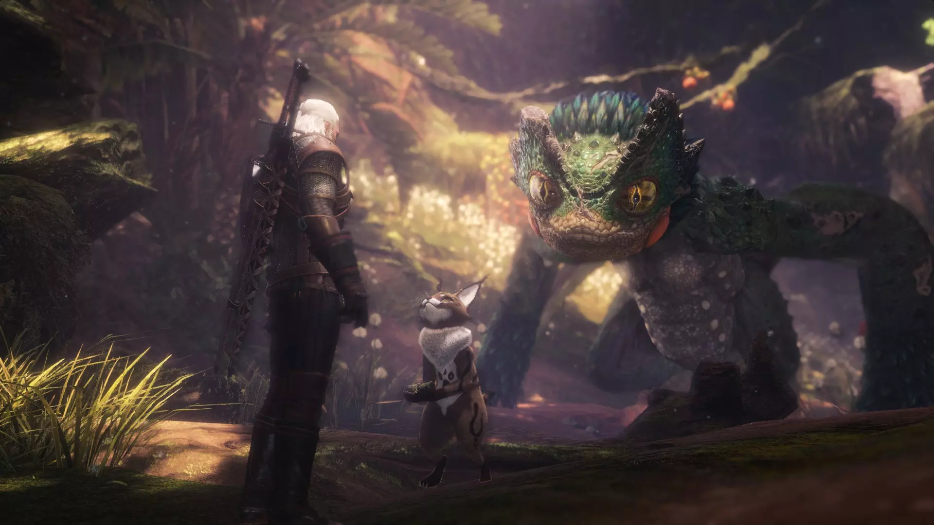 伊格尼法印再次前来救援,这将开启本次联动活动的第一个支线任务(具体是第一个还是第二个取决于你的探索进度)。在该任务的结尾,那只毒妖鸟会再次出现。 之后你可以继续推进主要目标,深入森林中心寻找树精的图腾。很快会有一群贼龙出现,这是你在此次狩猎中遇到的第一场战斗。 虽然这些贼龙的攻击力不算高,但成群结队时会很麻烦。此时你的最佳选择是使用伊格尼法印和盾击连招(如果你仍在使用银剑的话)。 解决掉这些蜥蜴后,你将最终面对本次活动的主要Boss。 树精——森林之魔 树精主要利用植物和乌鸦进行攻击。这场战斗的首要任务是对他使用伊格尼法印。这会使他短暂眩晕并驱散其鸟类光环(避免你持续受到伤害)。至于他的根部攻击,当他把手插入地面时,要立刻翻滚躲避。 务必不惜一切代价避开他的近战攻击!因为这会造成流血效果,而如果没有积累的道具,战斗会变得更加艰难。 强烈建议在这场战斗中使用猎魔人银剑,它能让你更快释放伊格尼法印,并为杰洛特提供更高的机动性。 树人怪和【怪物猎人:世界】中的怪物一样,在战斗中会移动到不同区域,最终区域是古代森林的开阔地带。 如果你已经解救了毒妖鸟,它会在最终区域出现并帮助你对抗树人怪。这是一个很受欢迎的新增机制,因为它能对首领怪物施加中毒效果,还能帮助你分散森林灵鹿的注意力。 不过别让那只可怜的怪物死掉!你需要让它存活下来,才能在任务结束后获得奖励!生命粉尘(以及简易生命粉尘)是你治疗这只怪物的主要道具。 在你解决掉森林灵鹿后,如果毒妖鸟仍然存活,你就会完成【毒妖鸟的危机】支线任务,并触发另一段过场动画。这还会奖励你游戏中最珍贵的物品……
