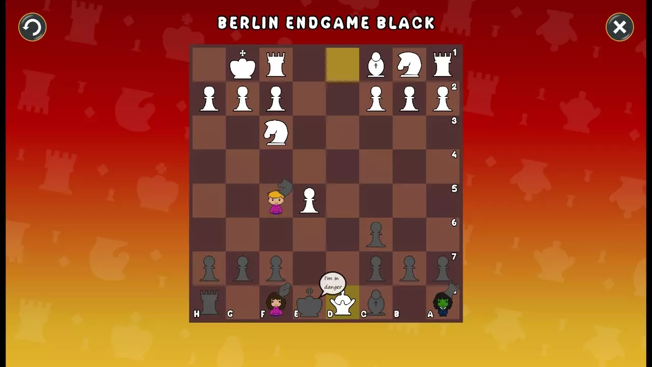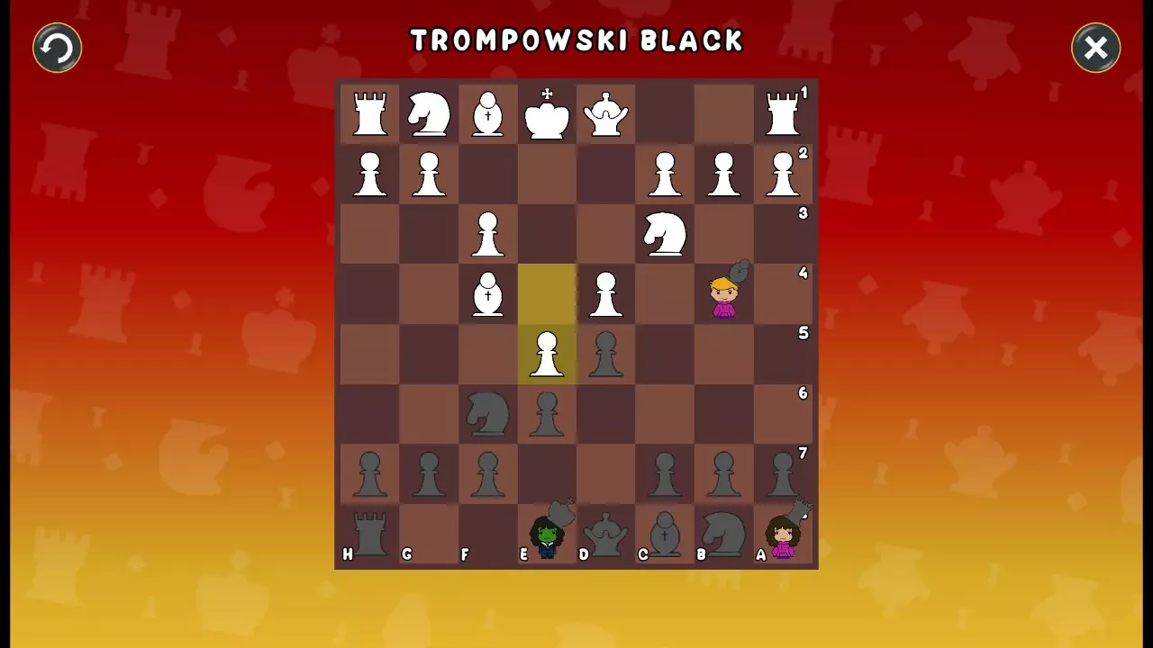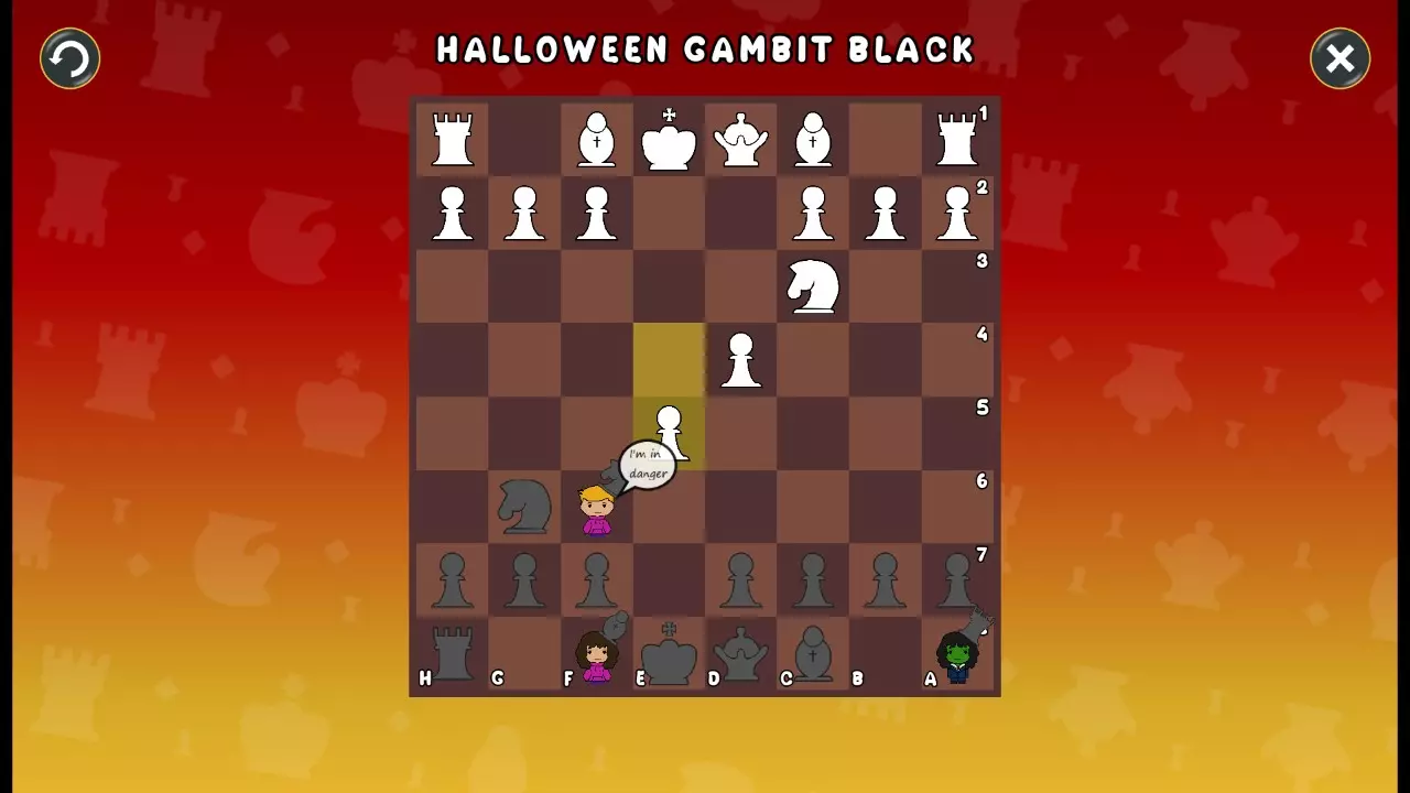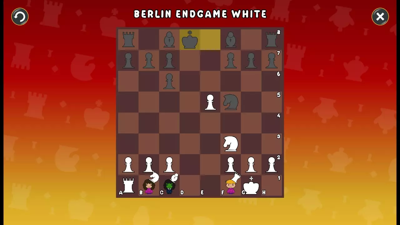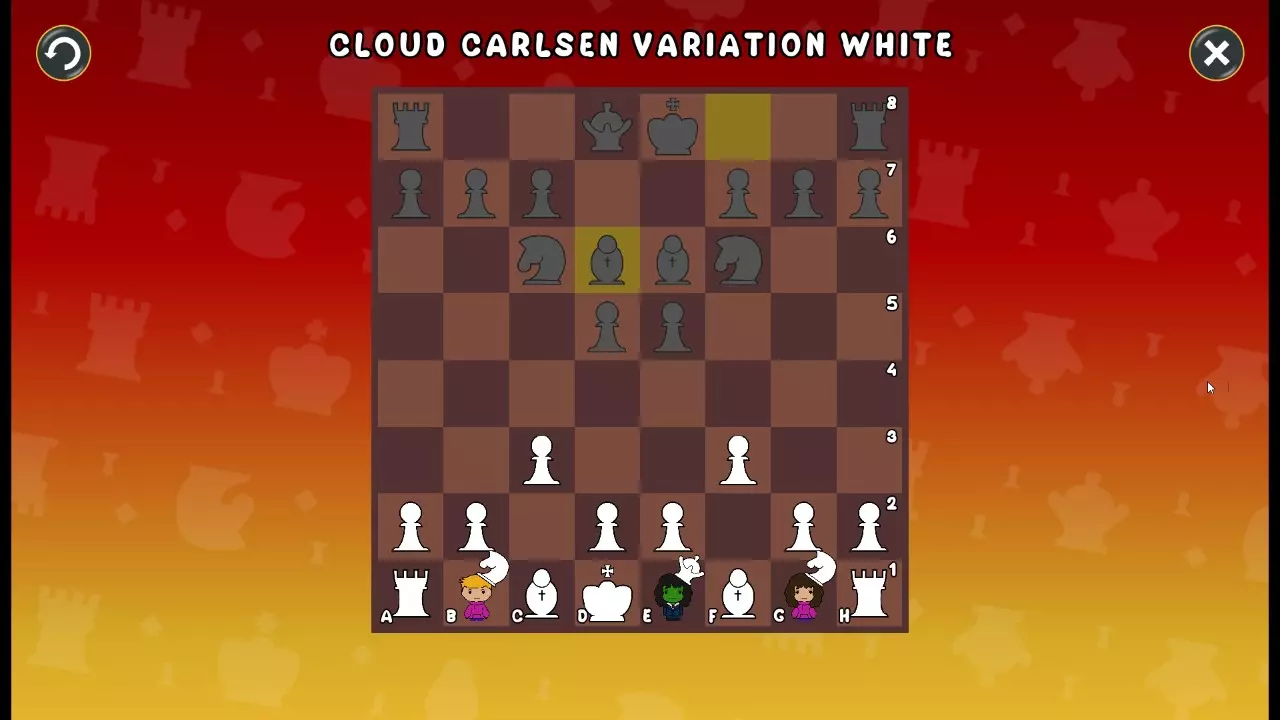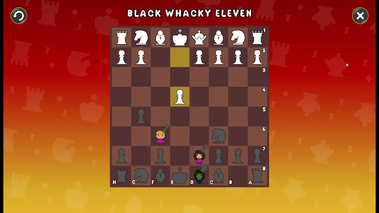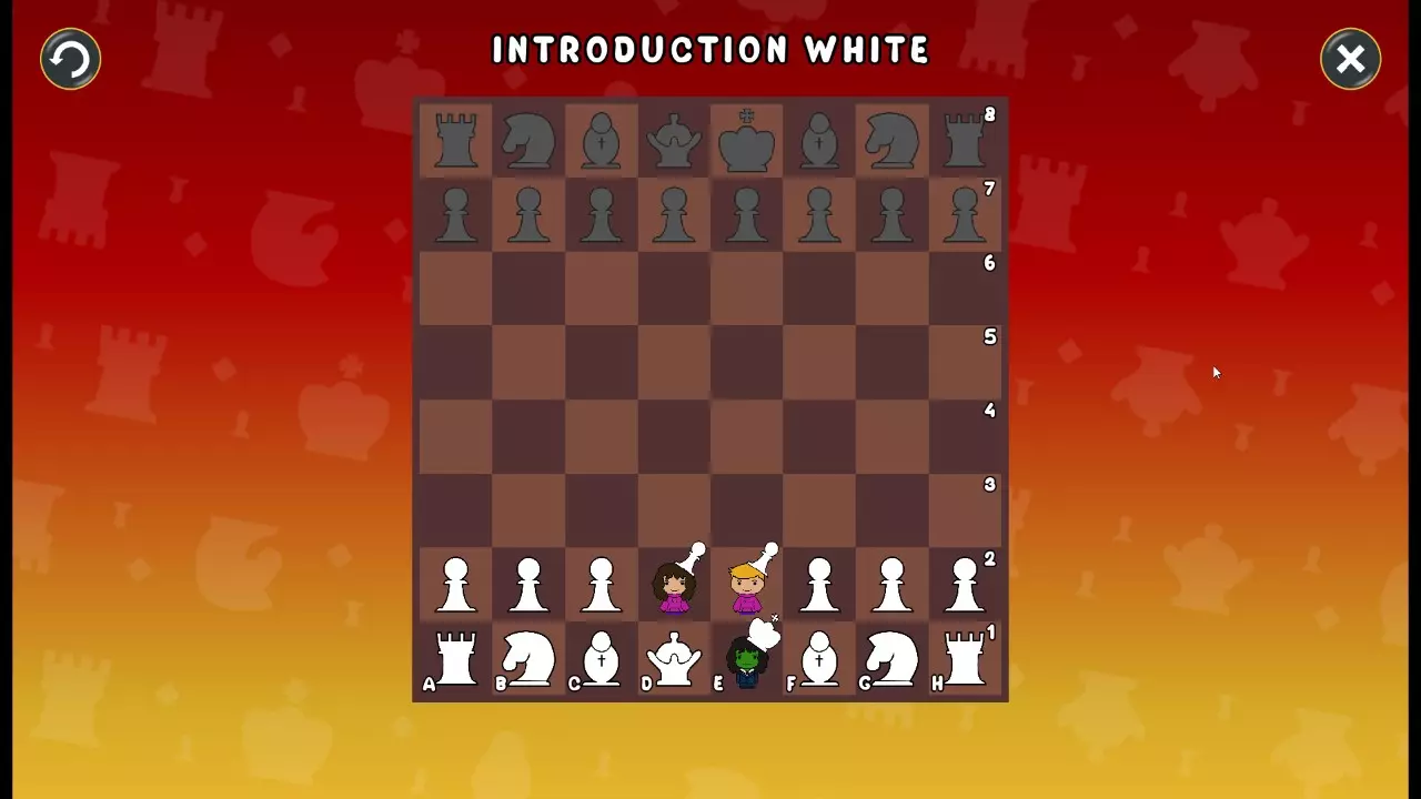 通过所有关卡并收集所有成就。 前言 那么,为我们带来了有趣的国际象棋变体。这里有需要在游戏过程中保护的【孩子棋子】。冒牌特级大师奥斯特洛夫·本德尔下过17盘西班牙开局。而我们则要下足足240盘棋,既执白棋也执黑棋。AI的智能水平并不突出:有时会走出强劲的棋步,有时却显得不堪一击。我们开启最高难度【d10】,然后开始游戏……