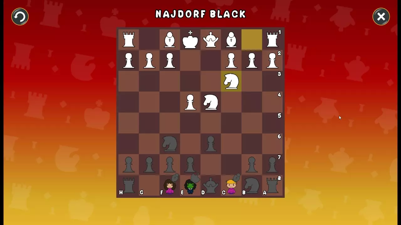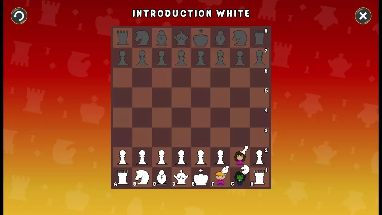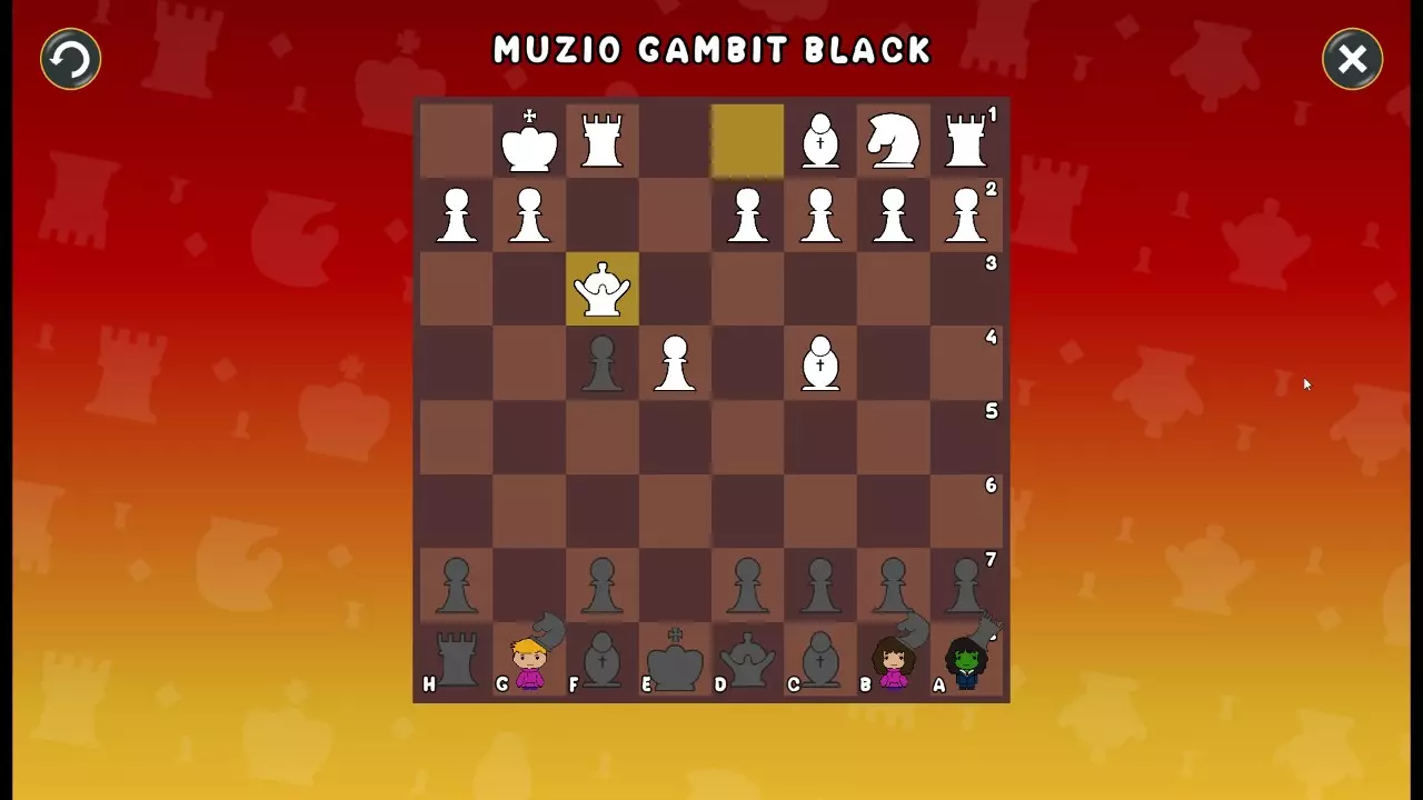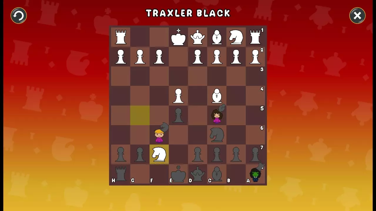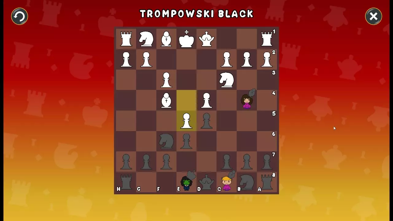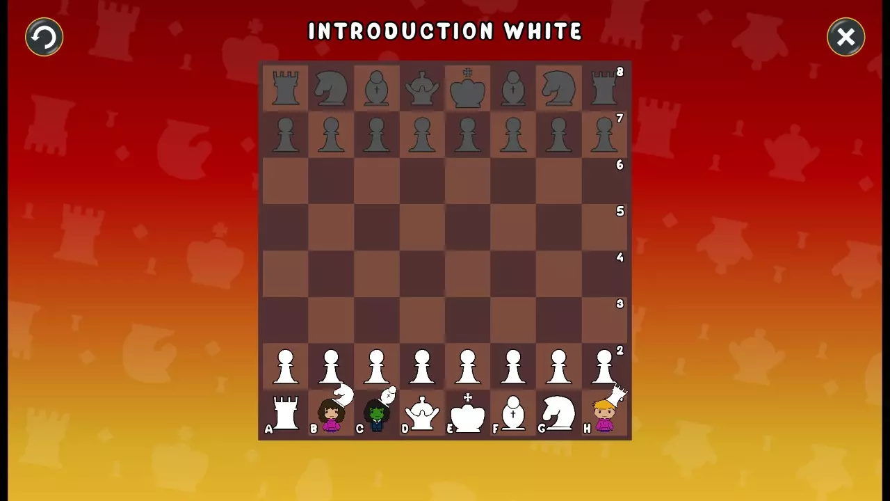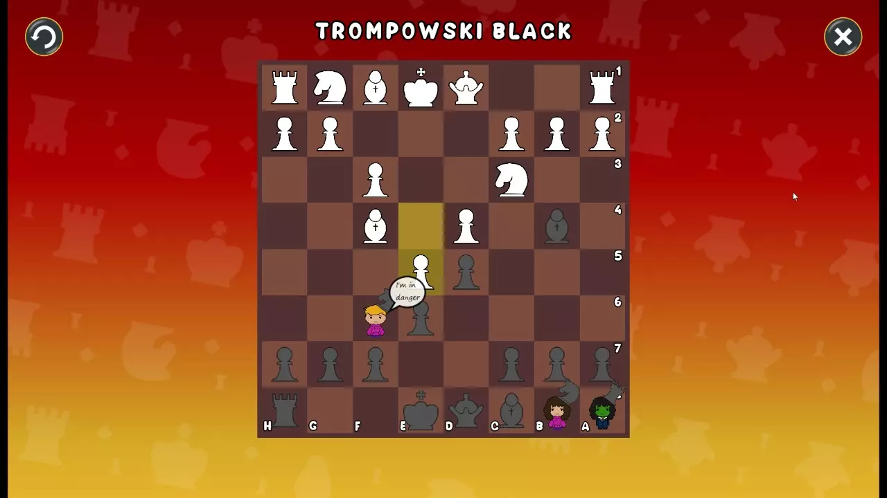 通过所有关卡并收集所有成就。 前言 那么,为我们带来了有趣的国际象棋变体。这里有需要在游戏过程中保护的【孩子棋子】。冒牌特级大师奥斯特洛夫·本德尔下过17盘西班牙开局。而我们则要下足足240盘棋,既执白棋也执黑棋。AI的智能水平并不突出:有时会走出强劲的棋步,有时却显得不堪一击。我们开启最高难度【d10】,然后开始游戏……