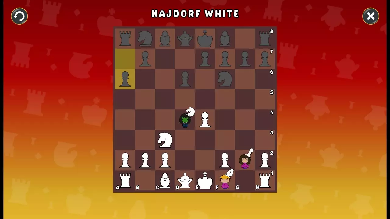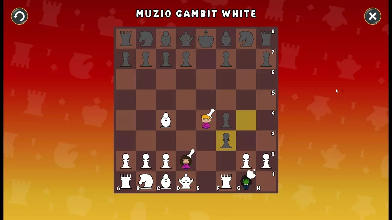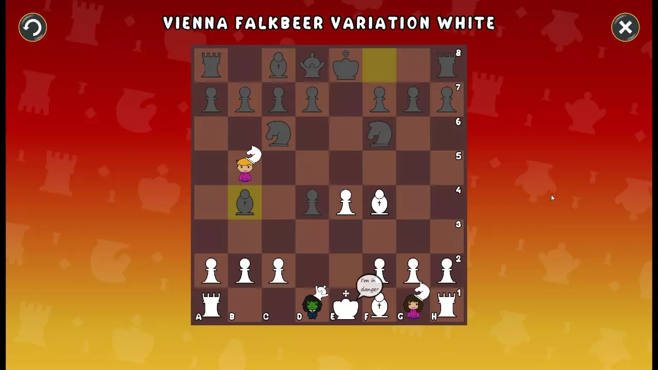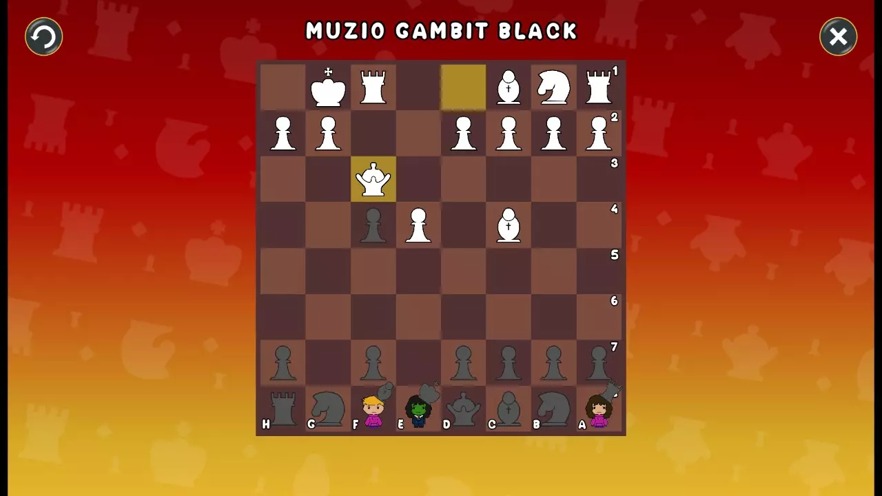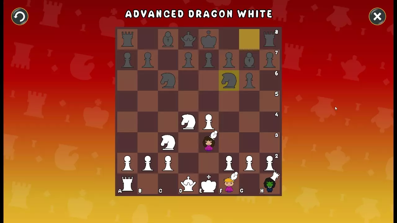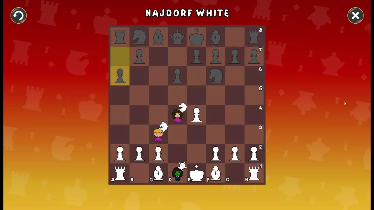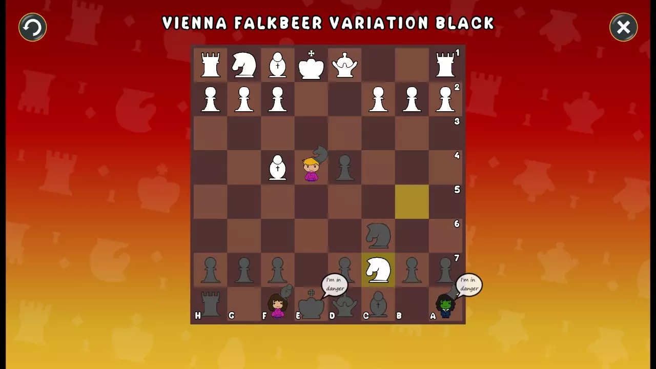 通过所有关卡并收集所有成就。 前言 那么,为我们带来了有趣的国际象棋变体。这里有需要在游戏过程中保护的【孩子棋子】。冒牌特级大师奥斯特洛夫·本德尔下过17盘西班牙开局。而我们则要下足足240盘棋,既执白棋也执黑棋。AI的智能水平并不突出:有时会走出强劲的棋步,有时却显得不堪一击。我们开启最高难度【d10】,然后开始游戏……