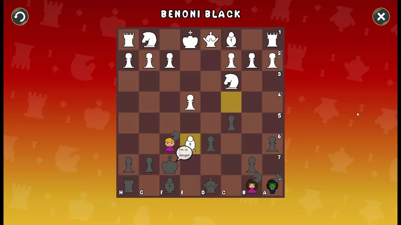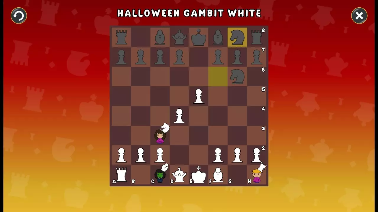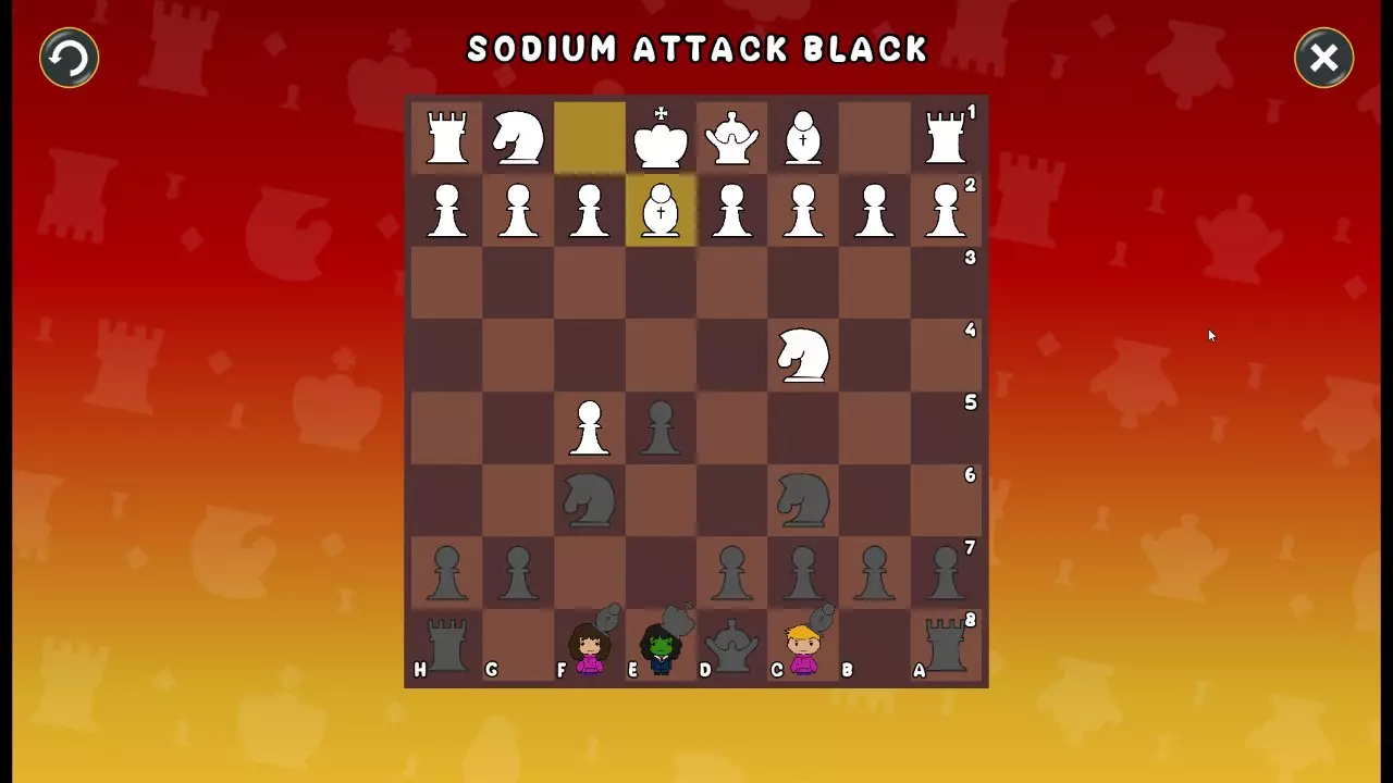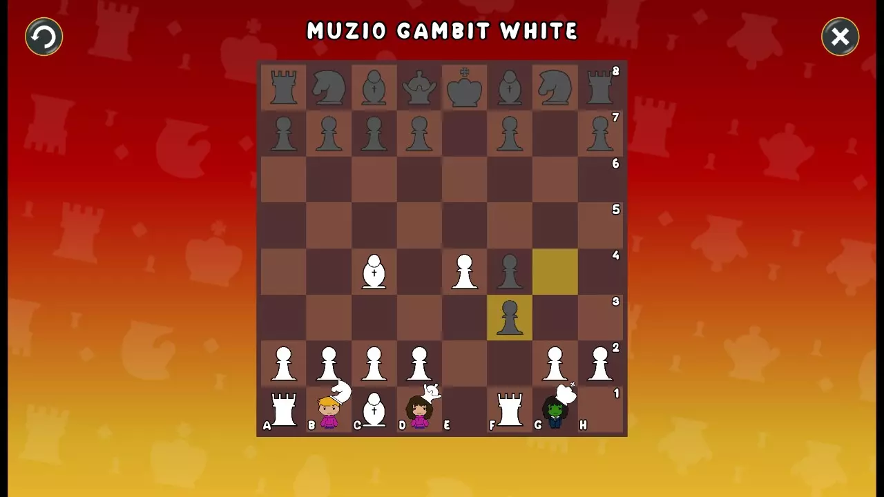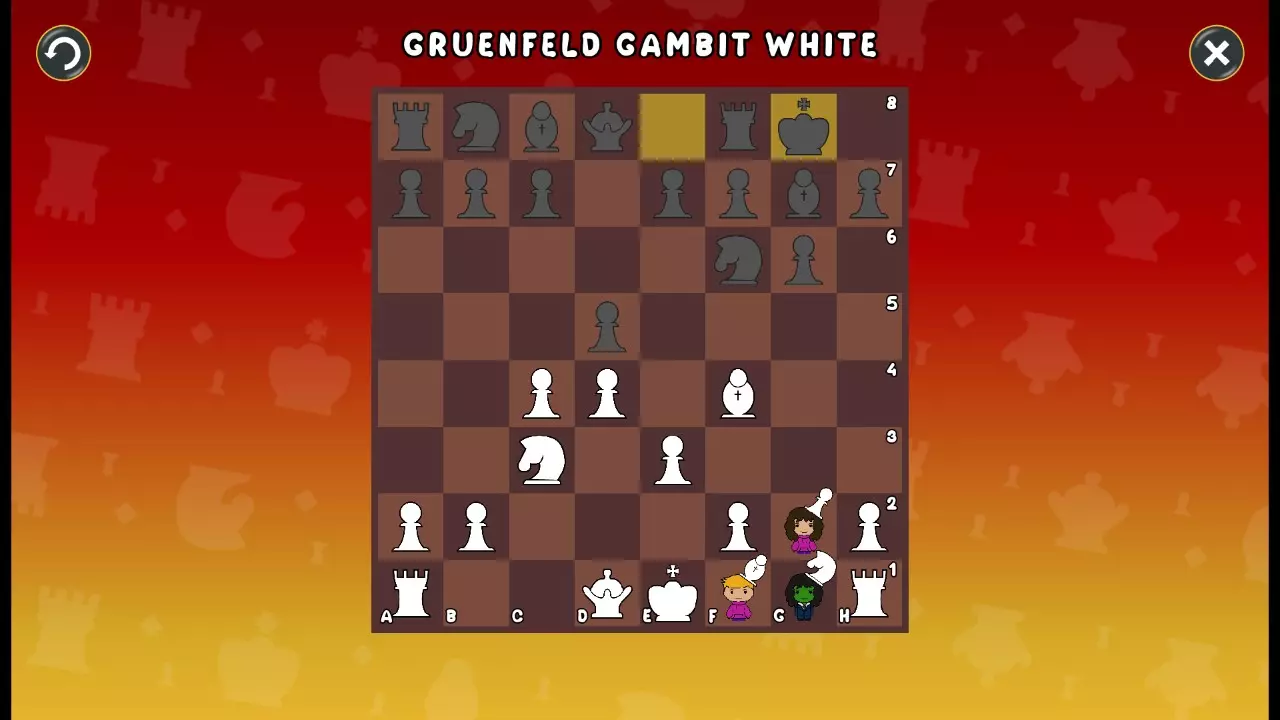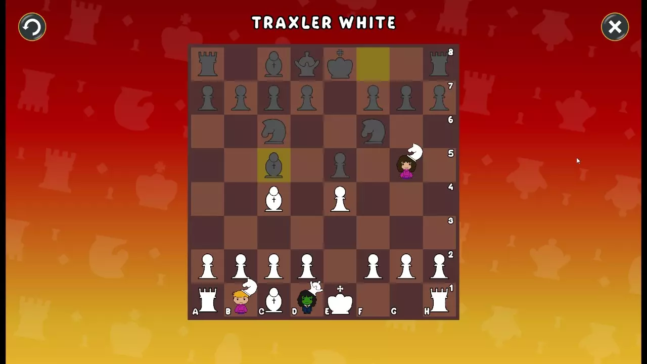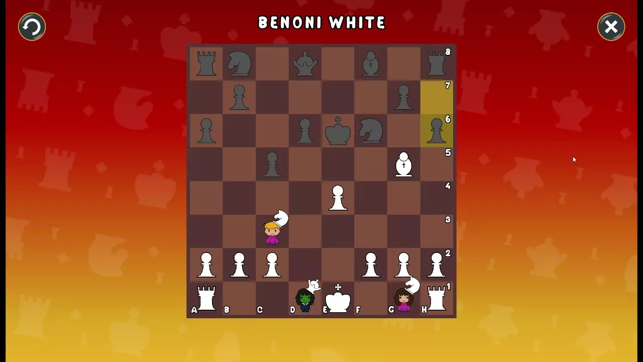 通过所有关卡并收集所有成就。 前言 那么,为我们带来了有趣的国际象棋变体。这里有需要在游戏过程中保护的【孩子棋子】。冒牌特级大师奥斯特洛夫·本德尔下过17盘西班牙开局。而我们则要下足足240盘棋,既执白棋也执黑棋。AI的智能水平并不突出:有时会走出强劲的棋步,有时却显得不堪一击。我们开启最高难度【d10】,然后开始游戏……