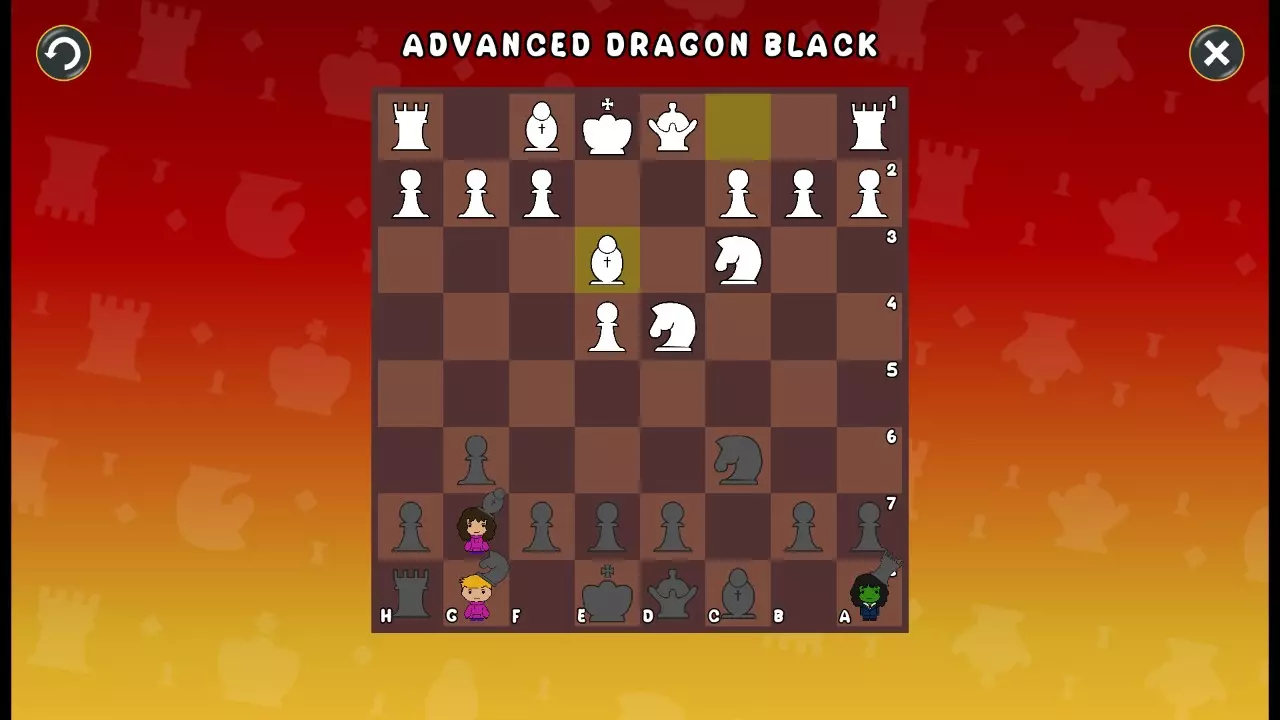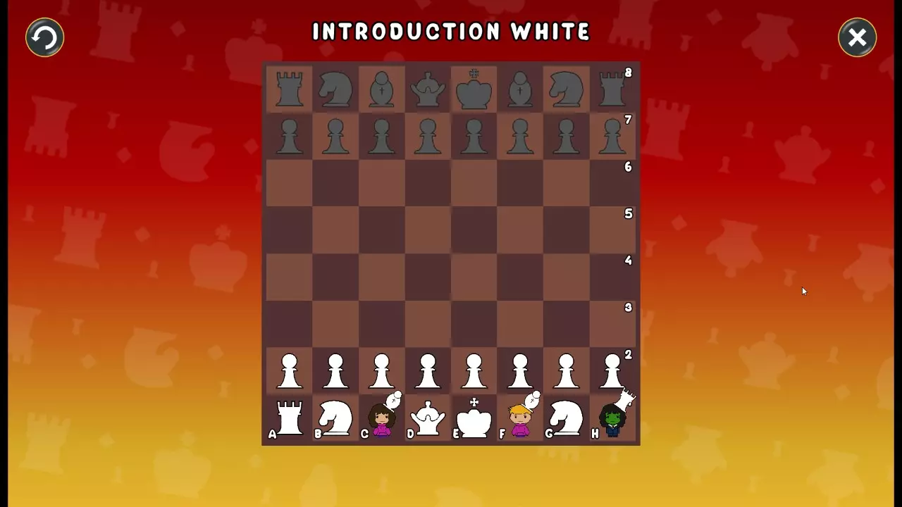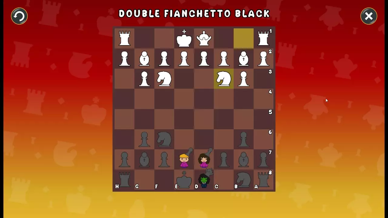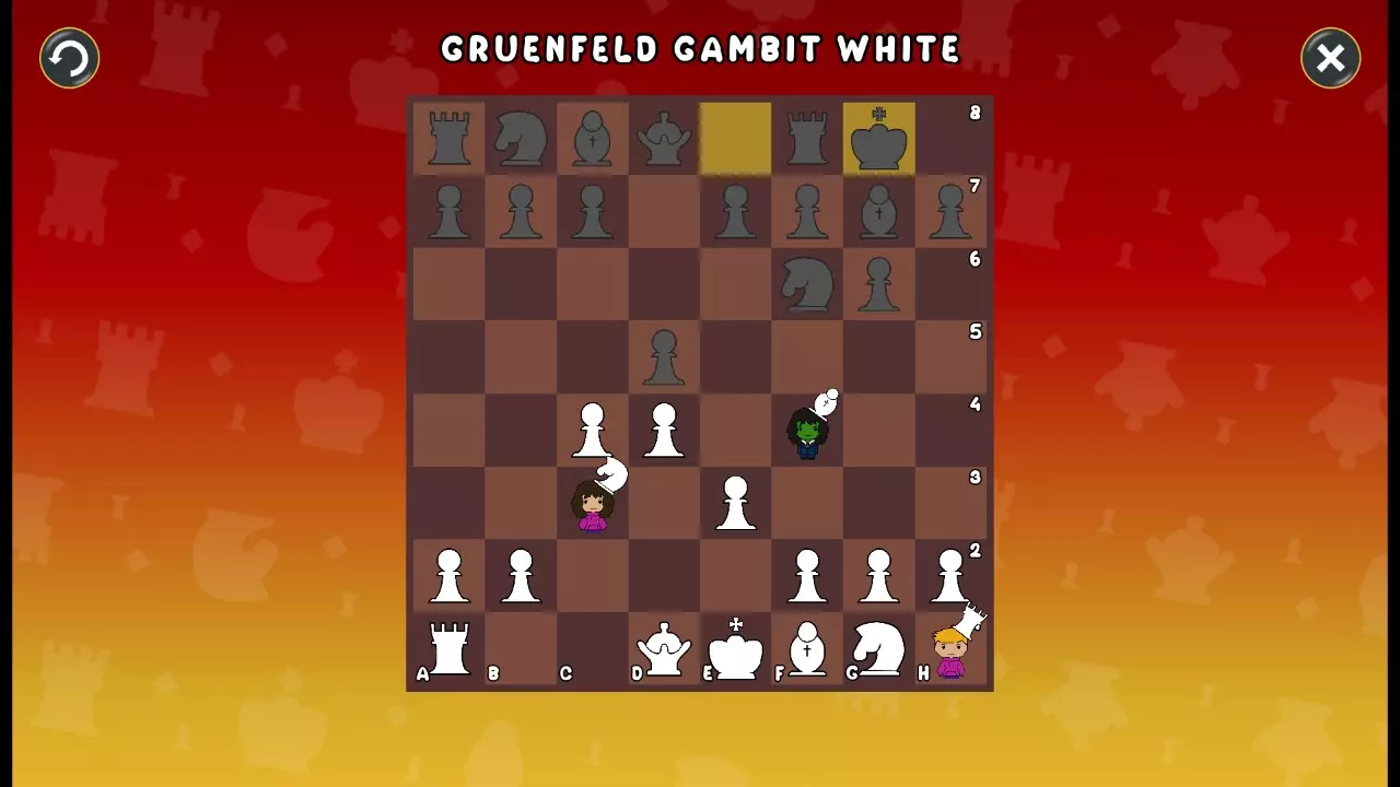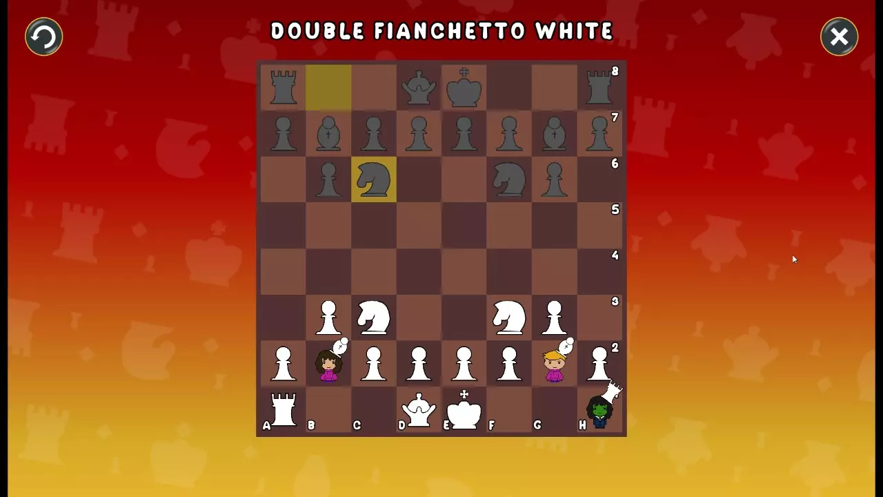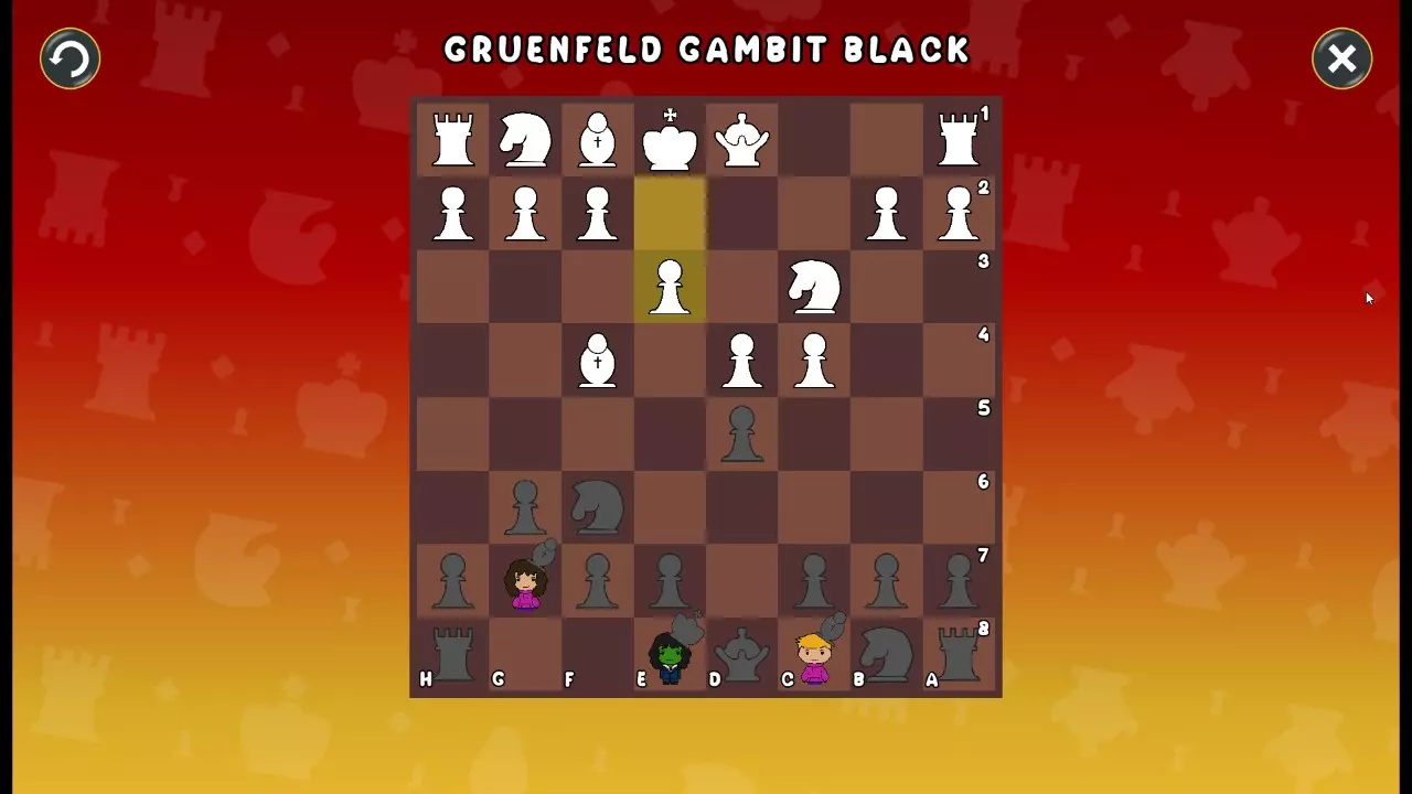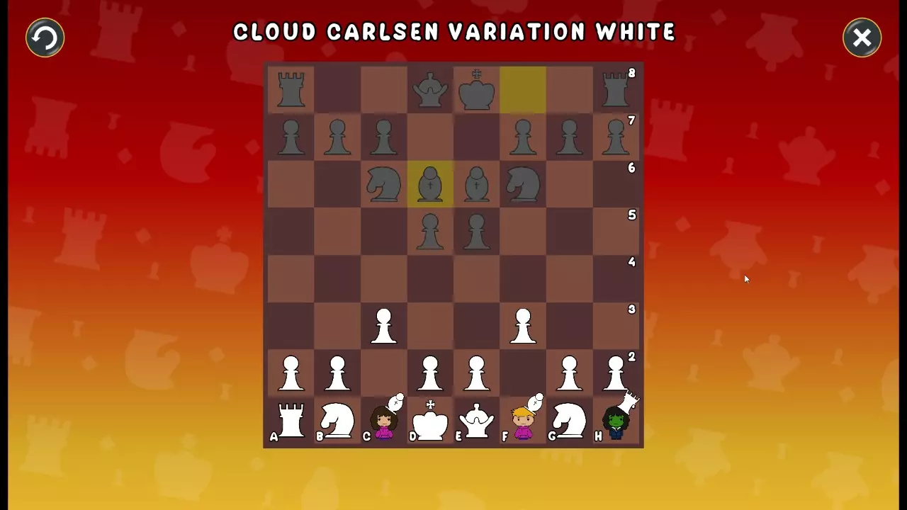 通过所有关卡并收集所有成就。 前言 那么,为我们带来了有趣的国际象棋变体。这里有需要在游戏过程中保护的【孩子棋子】。冒牌特级大师奥斯特洛夫·本德尔下过17盘西班牙开局。而我们则要下足足240盘棋,既执白棋也执黑棋。AI的智能水平并不突出:有时会走出强劲的棋步,有时却显得不堪一击。我们开启最高难度【d10】,然后开始游戏……
