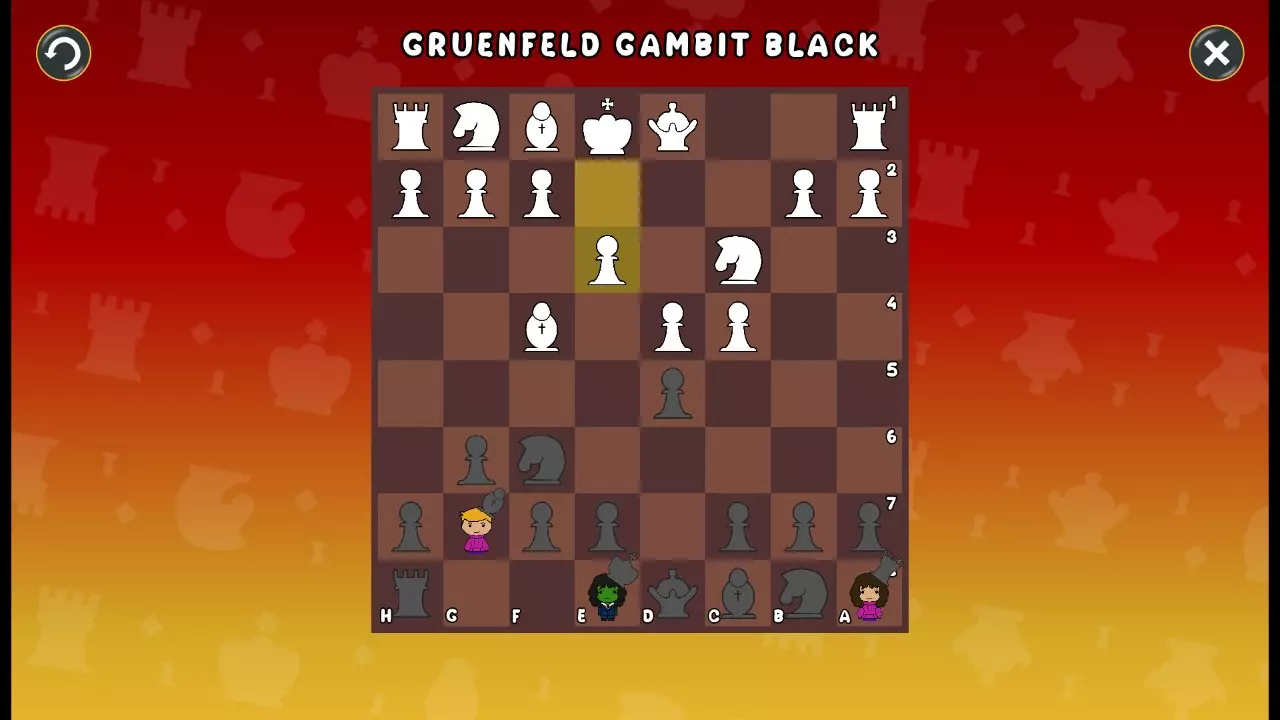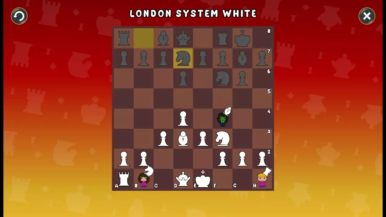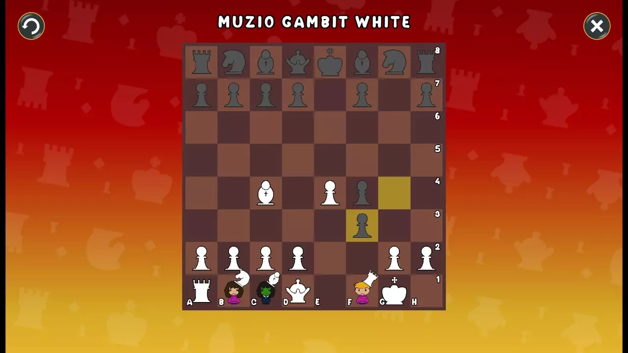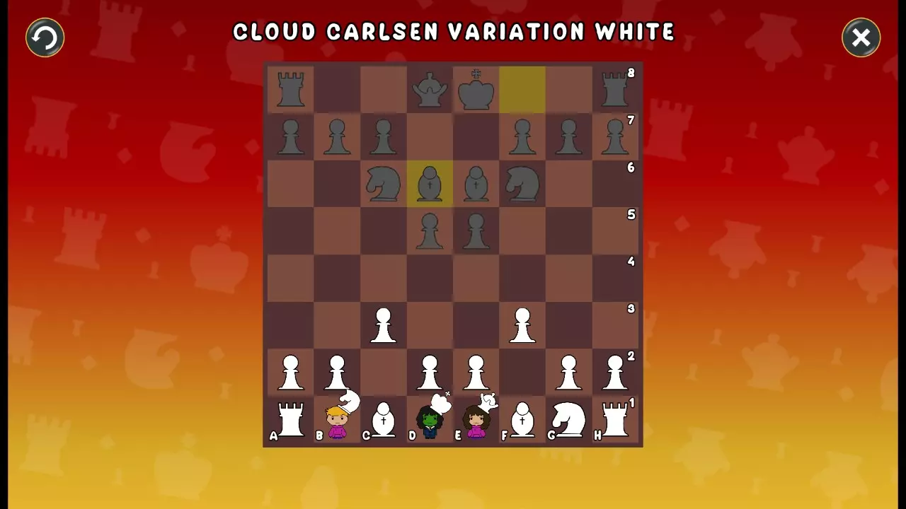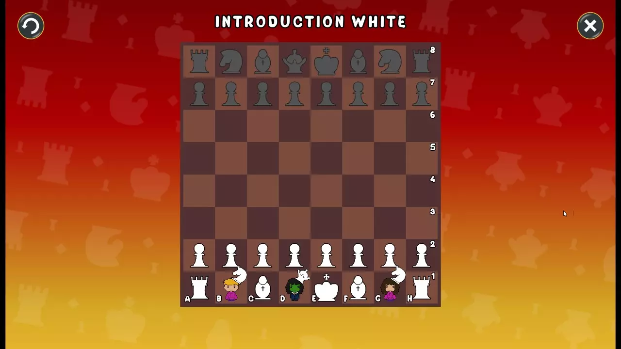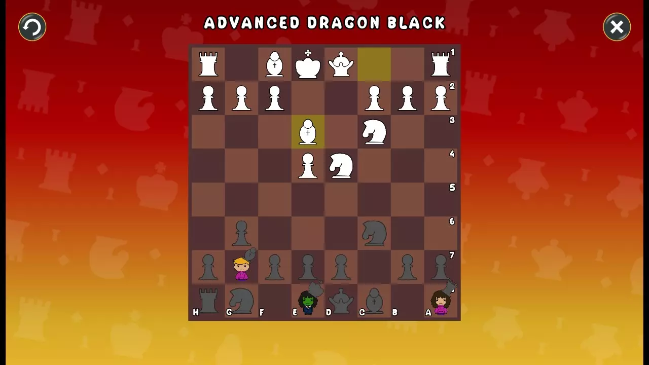 通过所有关卡并收集所有成就。 前言 那么,为我们带来了有趣的国际象棋变体。这里有需要在游戏过程中保护的【孩子棋子】。冒牌特级大师奥斯特洛夫·本德尔下过17盘西班牙开局。而我们则要下足足240盘棋,既执白棋也执黑棋。AI的智能水平并不突出:有时会走出强劲的棋步,有时却显得不堪一击。我们开启最高难度【d10】,然后开始游戏……
