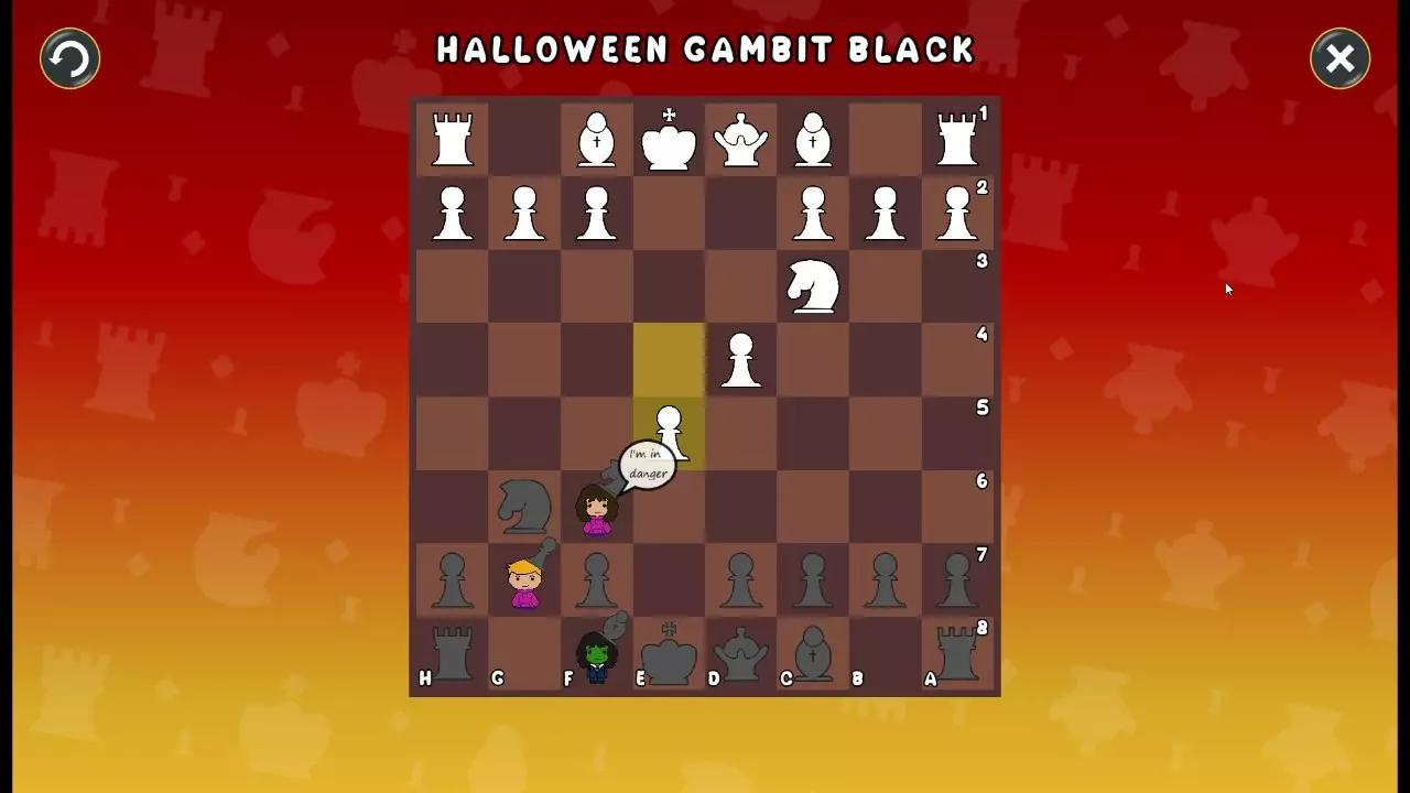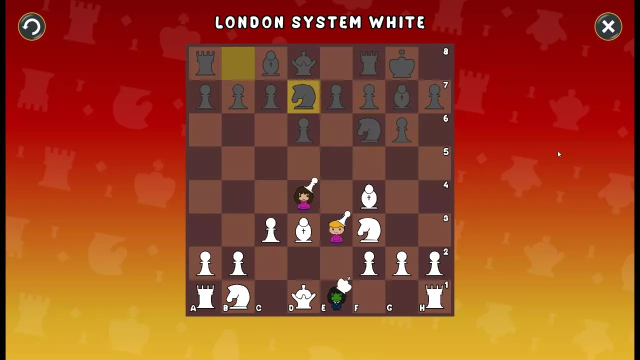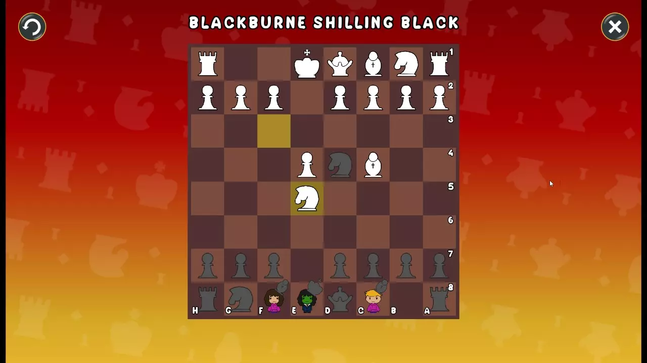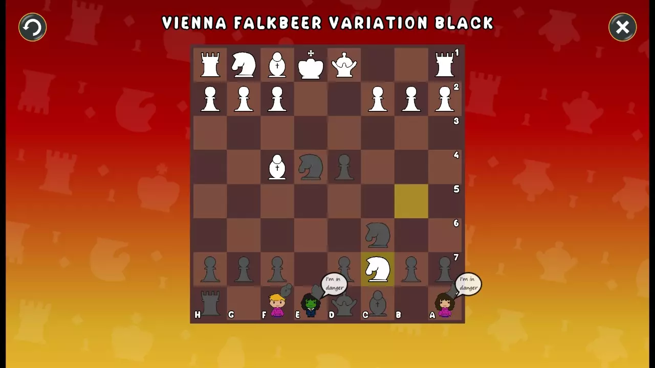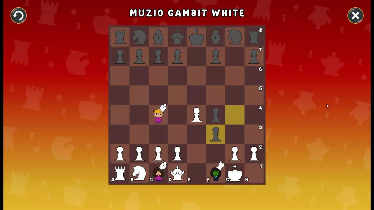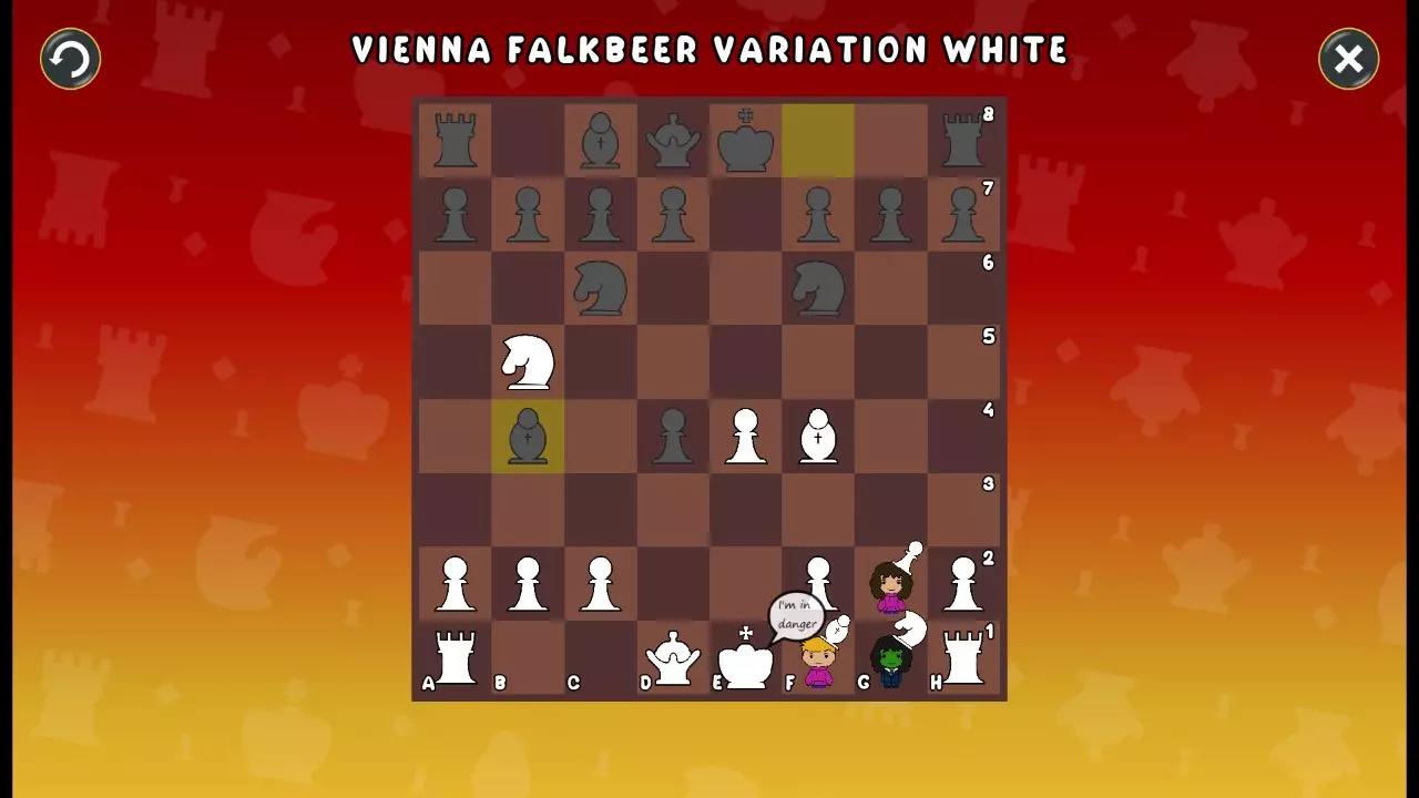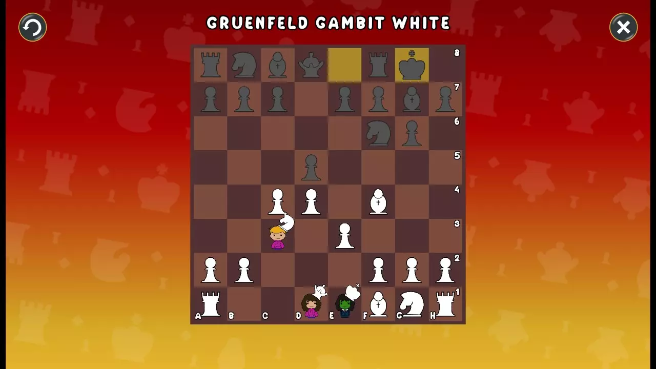 通过所有关卡并收集所有成就。 前言 那么,为我们带来了有趣的国际象棋变体。这里有需要在游戏过程中保护的【孩子棋子】。冒牌特级大师奥斯特洛夫·本德尔下过17盘西班牙开局。而我们则要下足足240盘棋,既执白棋也执黑棋。AI的智能水平并不突出:有时会走出强劲的棋步,有时却显得不堪一击。我们开启最高难度【d10】,然后开始游戏……