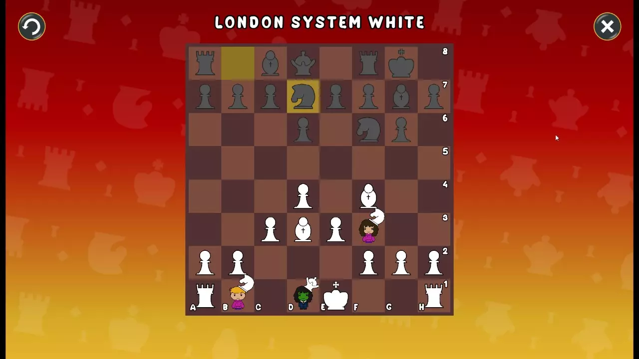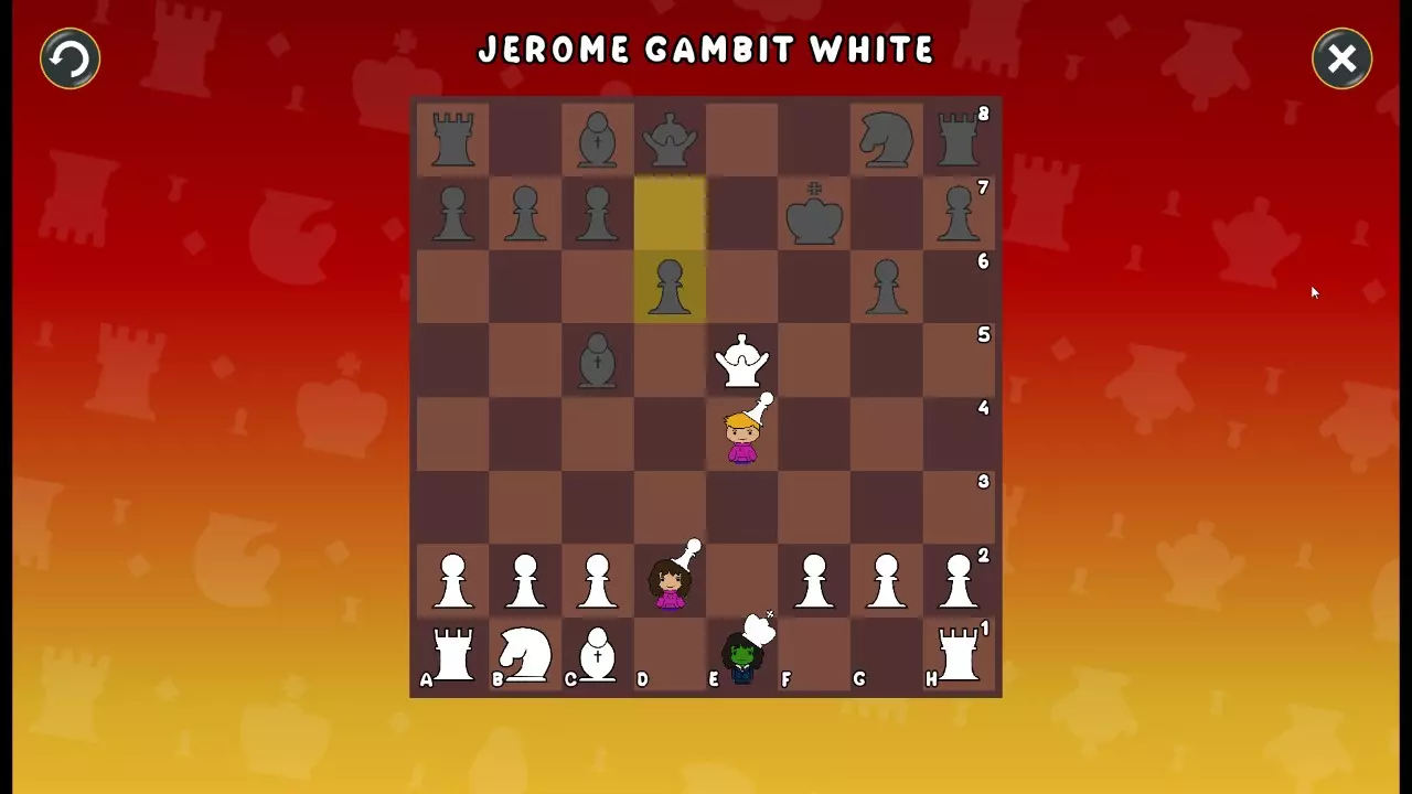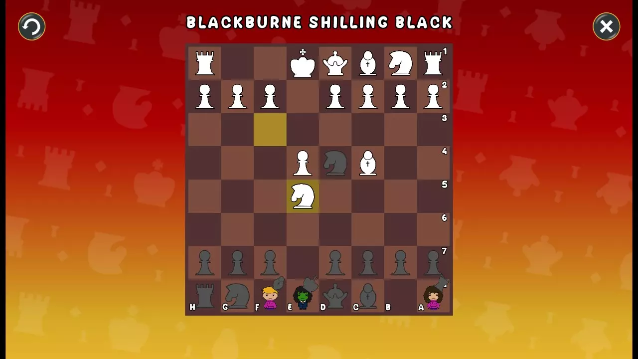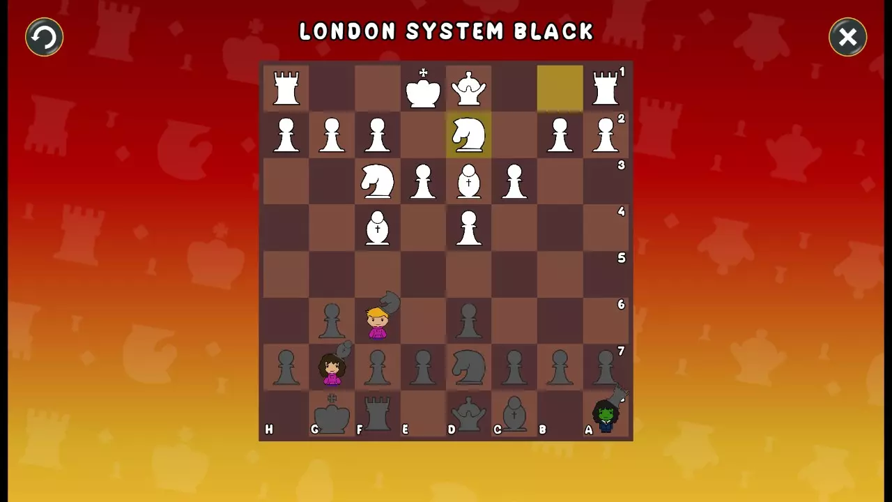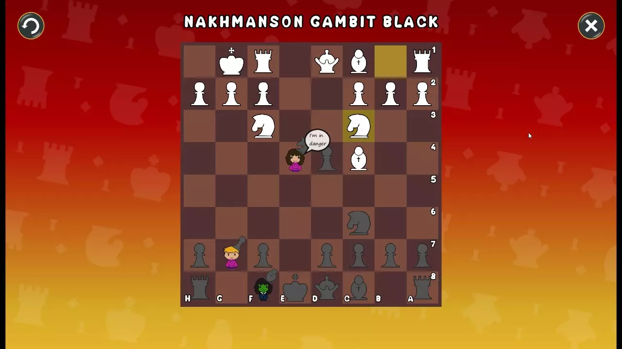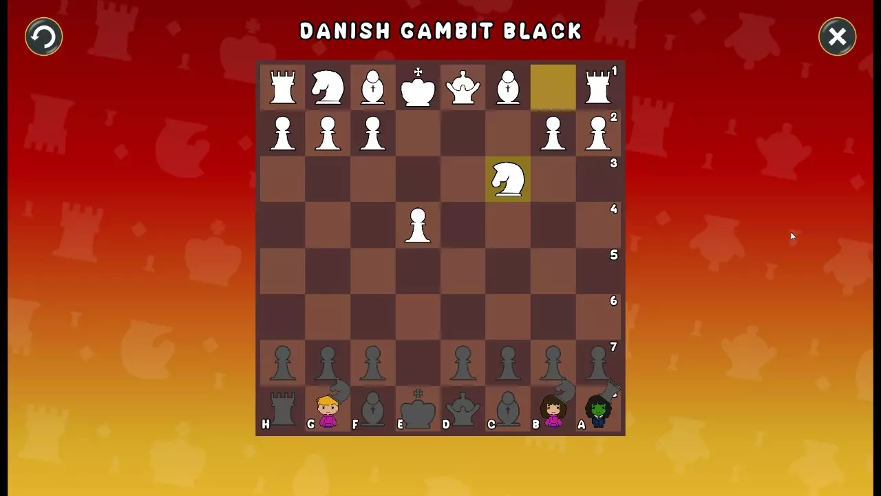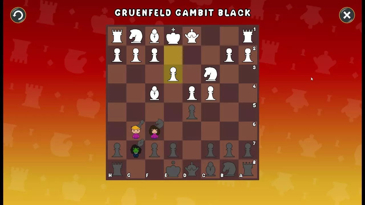 通过所有关卡并收集所有成就。 前言 那么,为我们带来了有趣的国际象棋变体。这里有需要在游戏过程中保护的【孩子棋子】。冒牌特级大师奥斯特洛夫·本德尔下过17盘西班牙开局。而我们则要下足足240盘棋,既执白棋也执黑棋。AI的智能水平并不突出:有时会走出强劲的棋步,有时却显得不堪一击。我们开启最高难度【d10】,然后开始游戏……