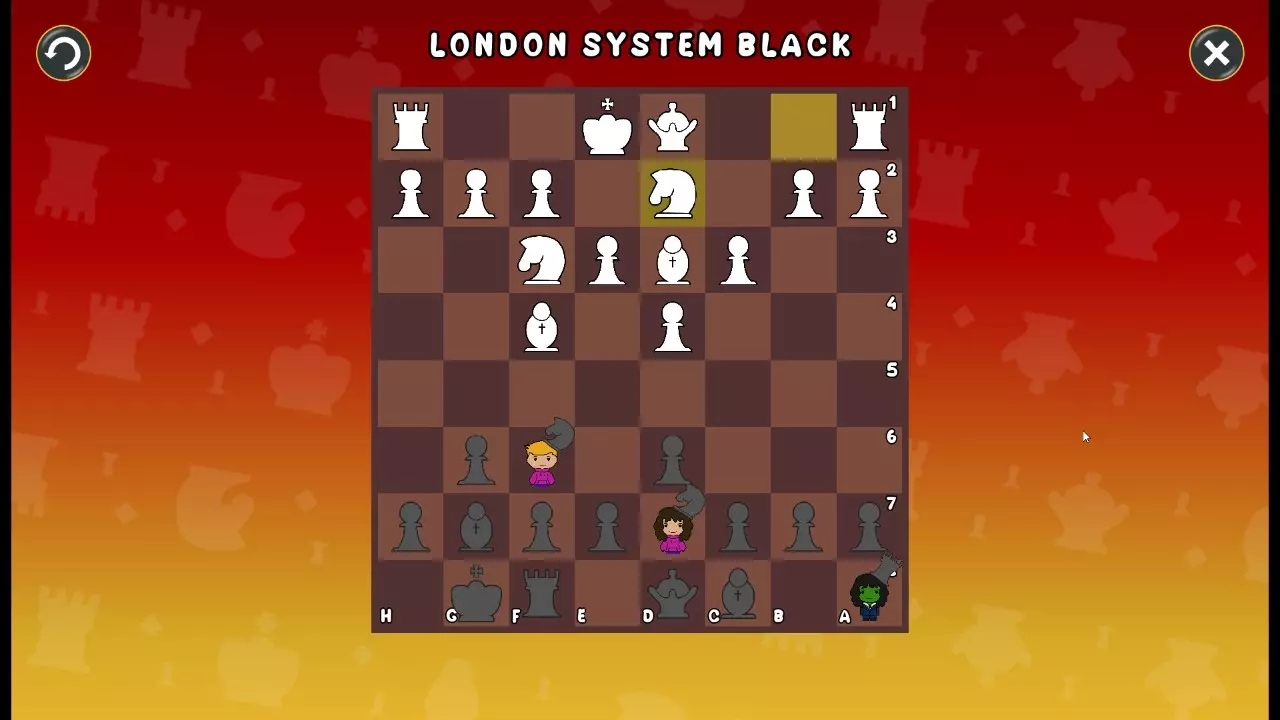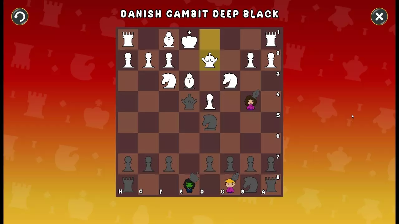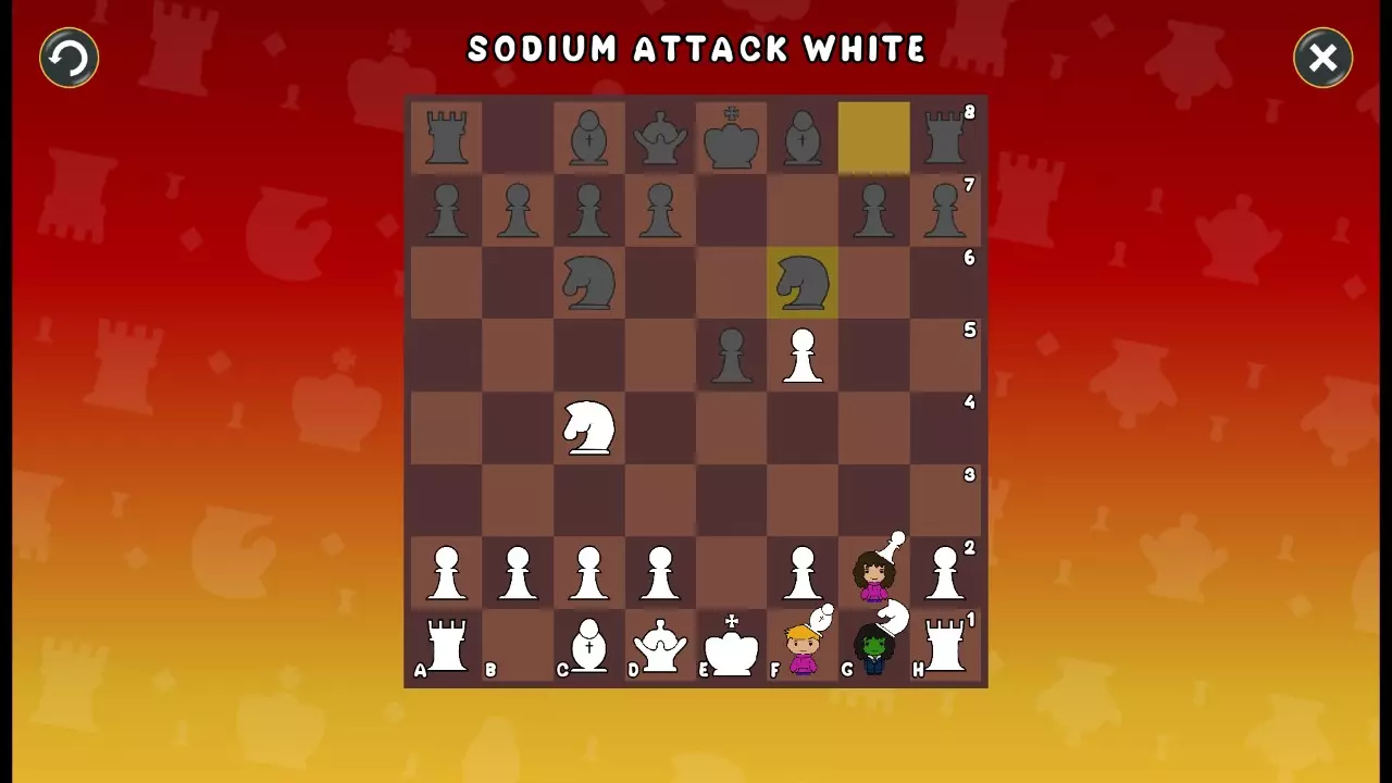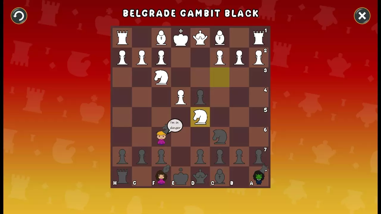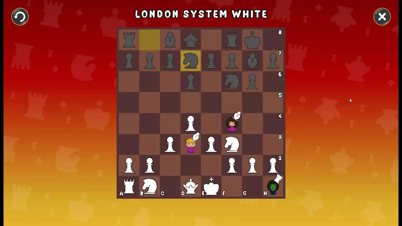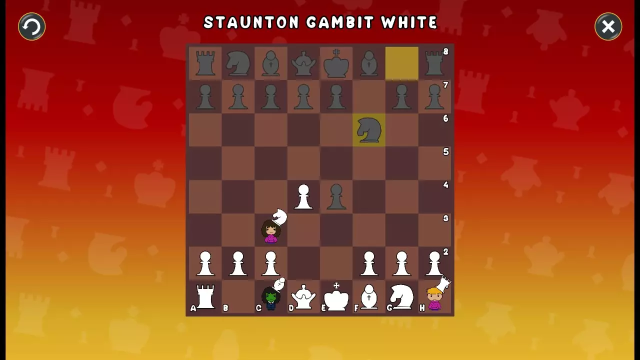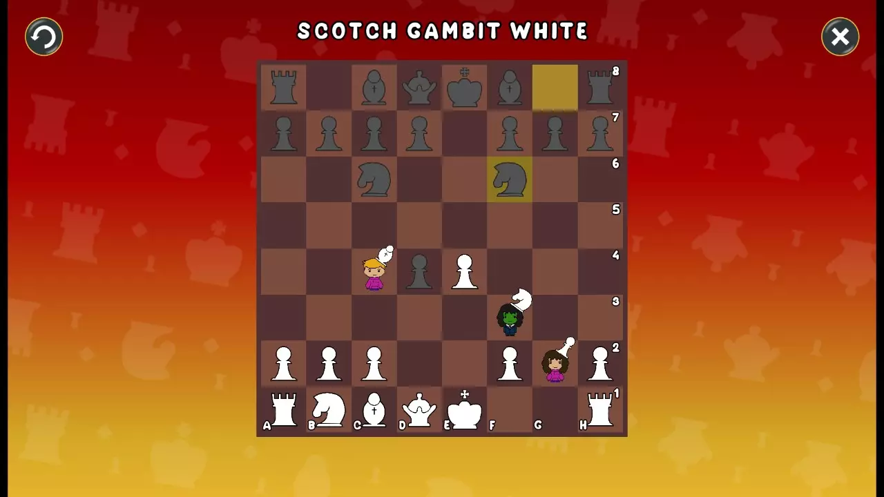 通过所有关卡并收集所有成就。 前言 那么,为我们带来了有趣的国际象棋变体。这里有需要在游戏过程中保护的【孩子棋子】。冒牌特级大师奥斯特洛夫·本德尔下过17盘西班牙开局。而我们则要下足足240盘棋,既执白棋也执黑棋。AI的智能水平并不突出:有时会走出强劲的棋步,有时却显得不堪一击。我们开启最高难度【d10】,然后开始游戏……