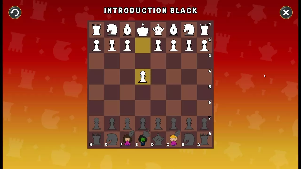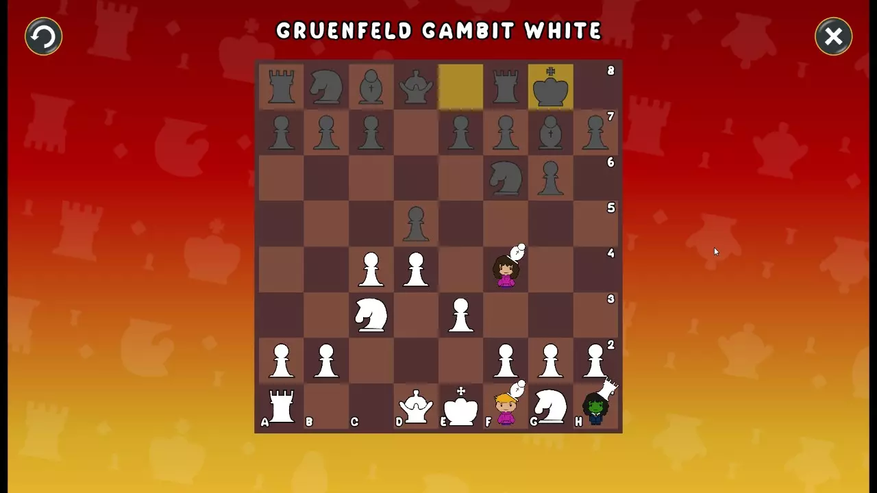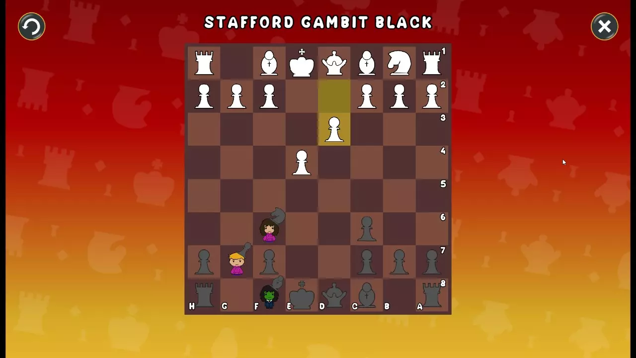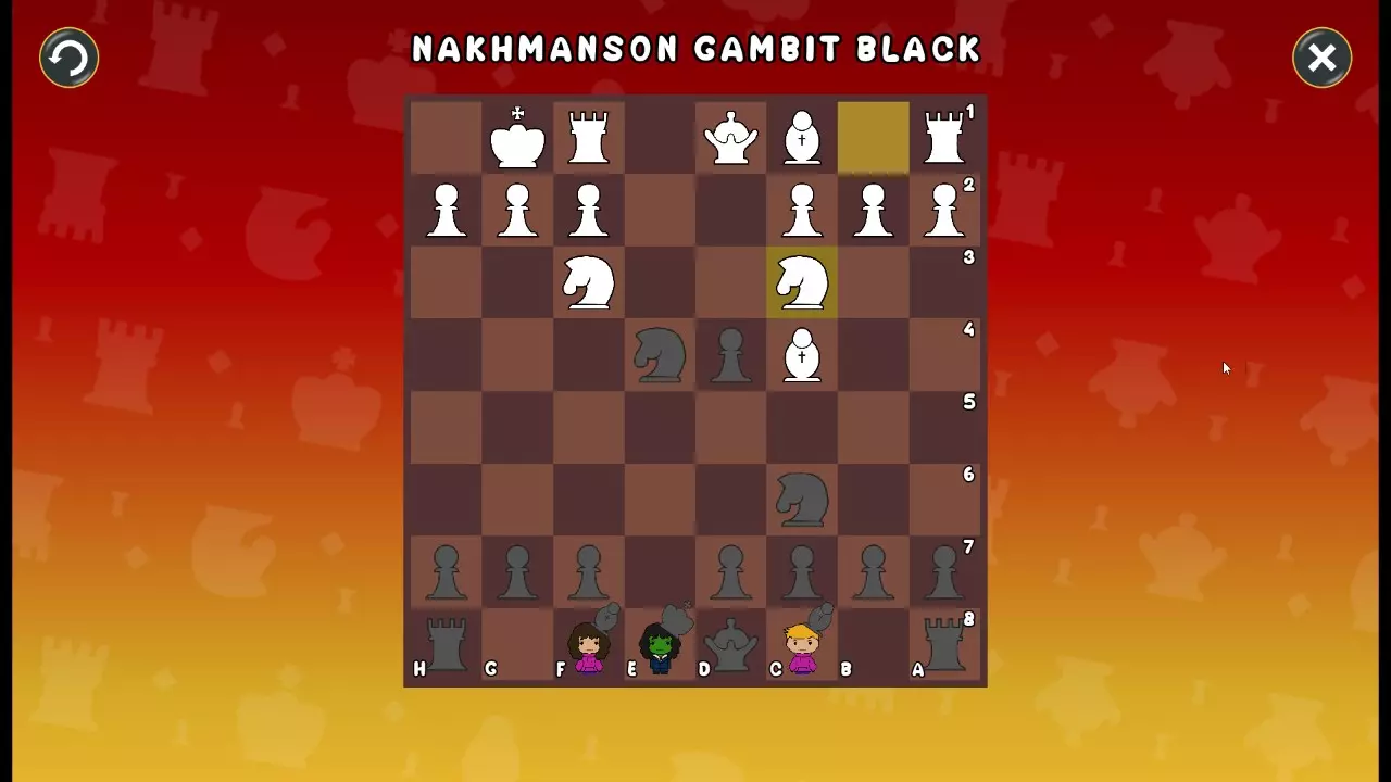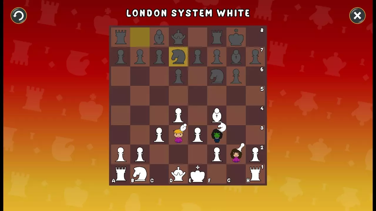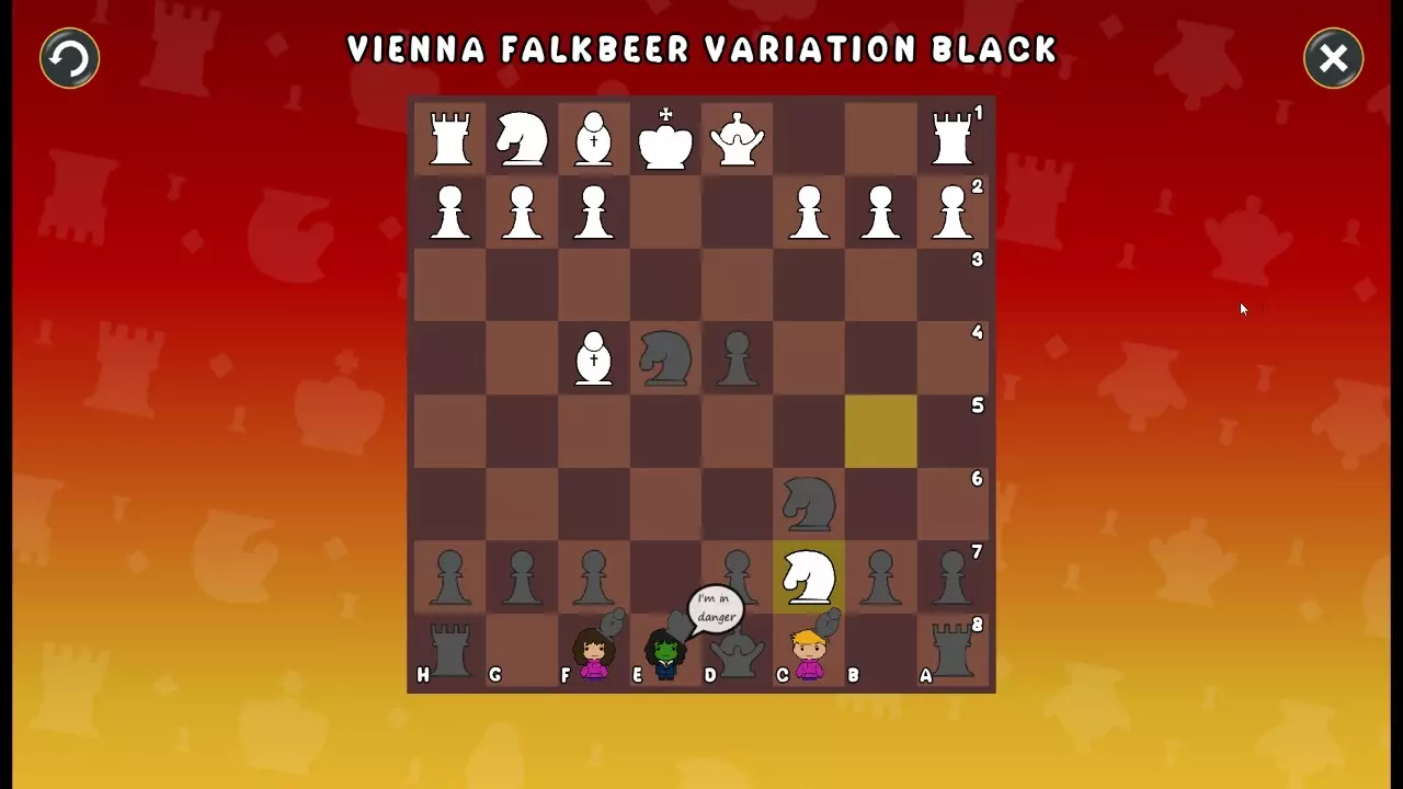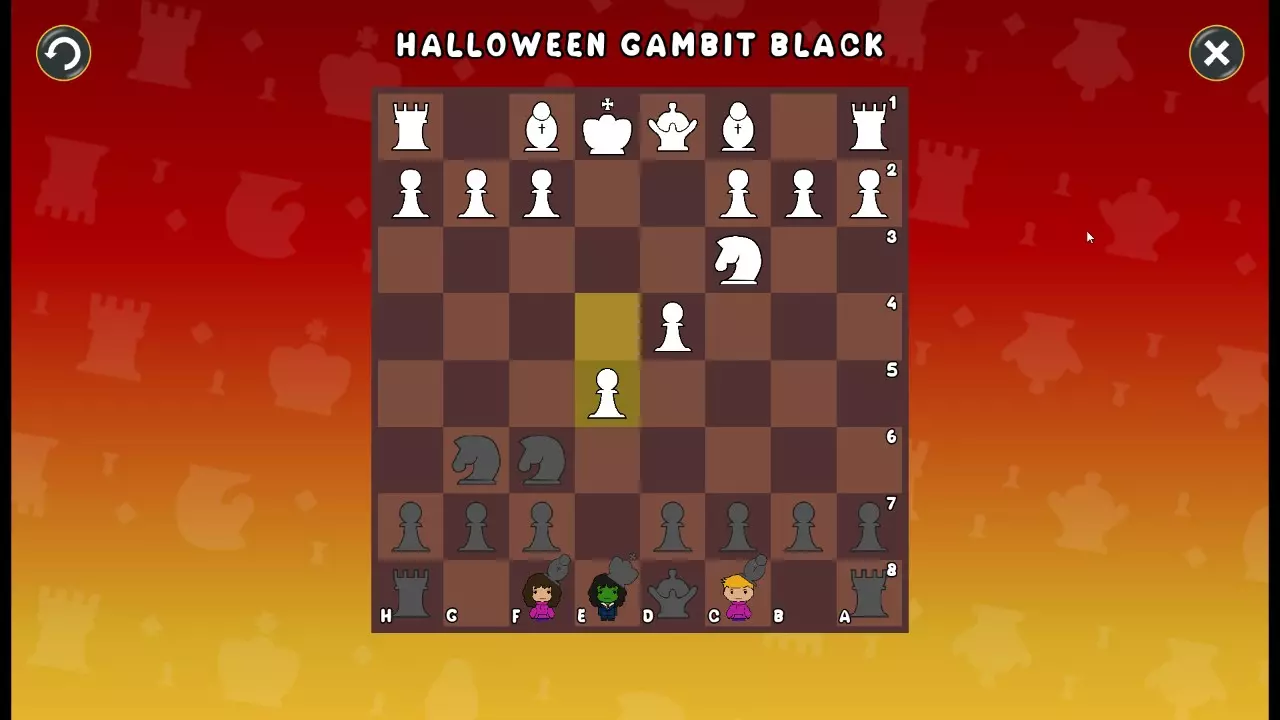 通过所有关卡并收集所有成就。 前言 那么,为我们带来了有趣的国际象棋变体。这里有需要在游戏过程中保护的【孩子棋子】。冒牌特级大师奥斯特洛夫·本德尔下过17盘西班牙开局。而我们则要下足足240盘棋,既执白棋也执黑棋。AI的智能水平并不突出:有时会走出强劲的棋步,有时却显得不堪一击。我们开启最高难度【d10】,然后开始游戏……