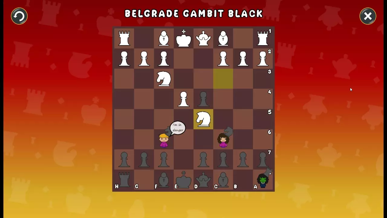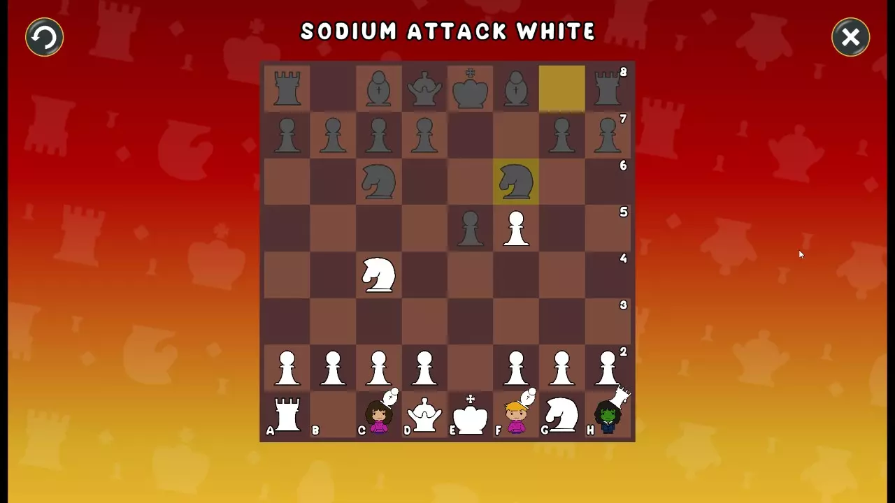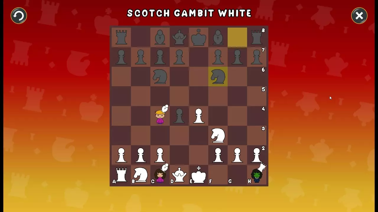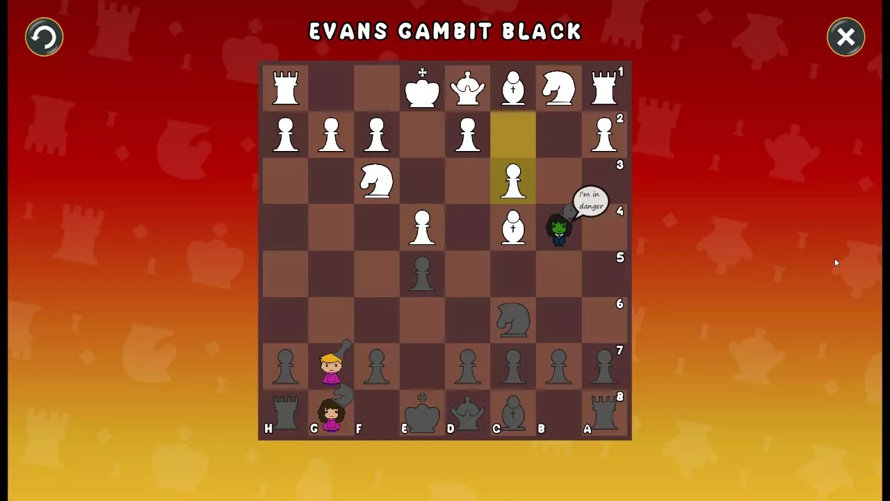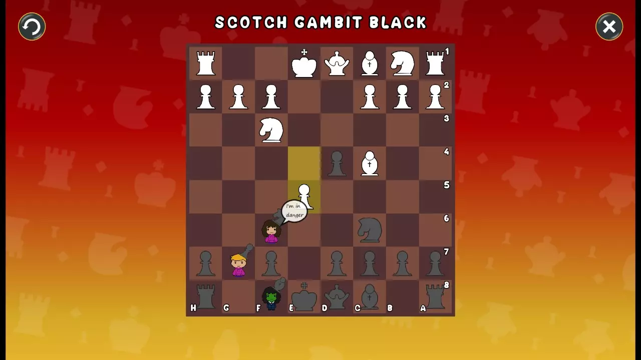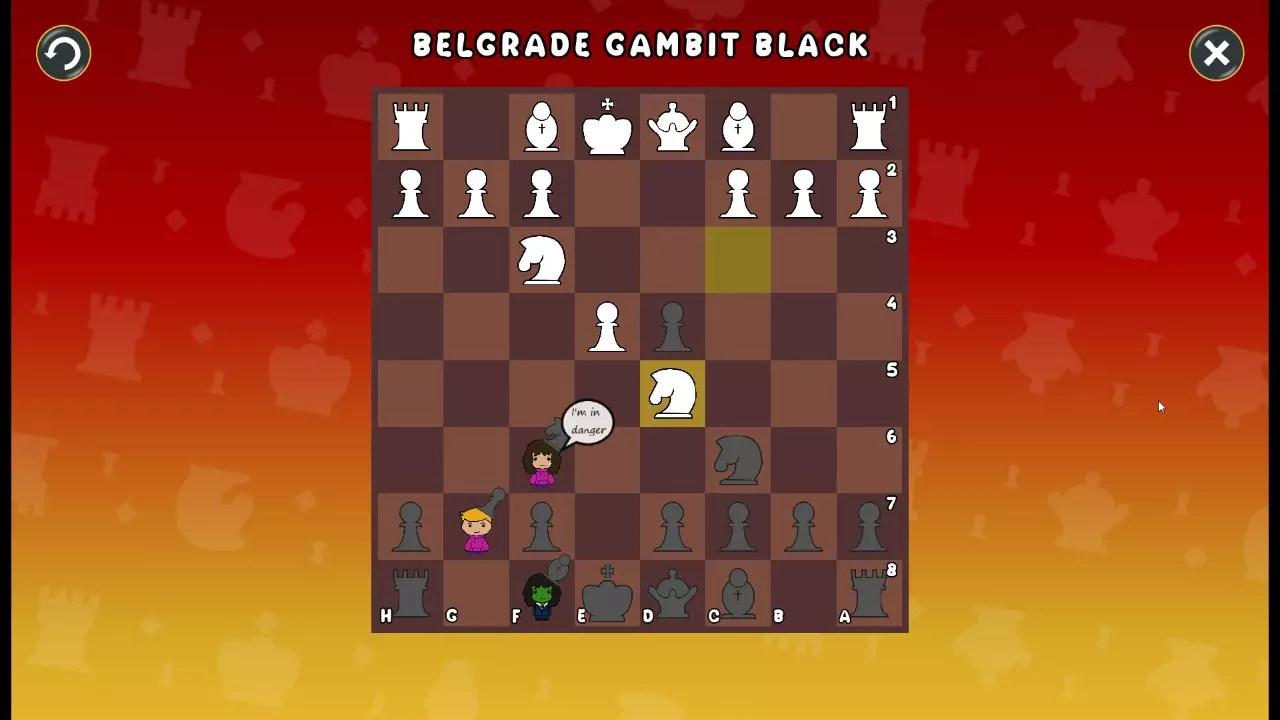 通过所有关卡并收集所有成就。 前言 那么,为我们带来了有趣的国际象棋变体。这里有需要在游戏过程中保护的【孩子棋子】。冒牌特级大师奥斯特洛夫·本德尔下过17盘西班牙开局。而我们则要下足足240盘棋,既执白棋也执黑棋。AI的智能水平并不突出:有时会走出强劲的棋步,有时却显得不堪一击。我们开启最高难度【d10】,然后开始游戏……