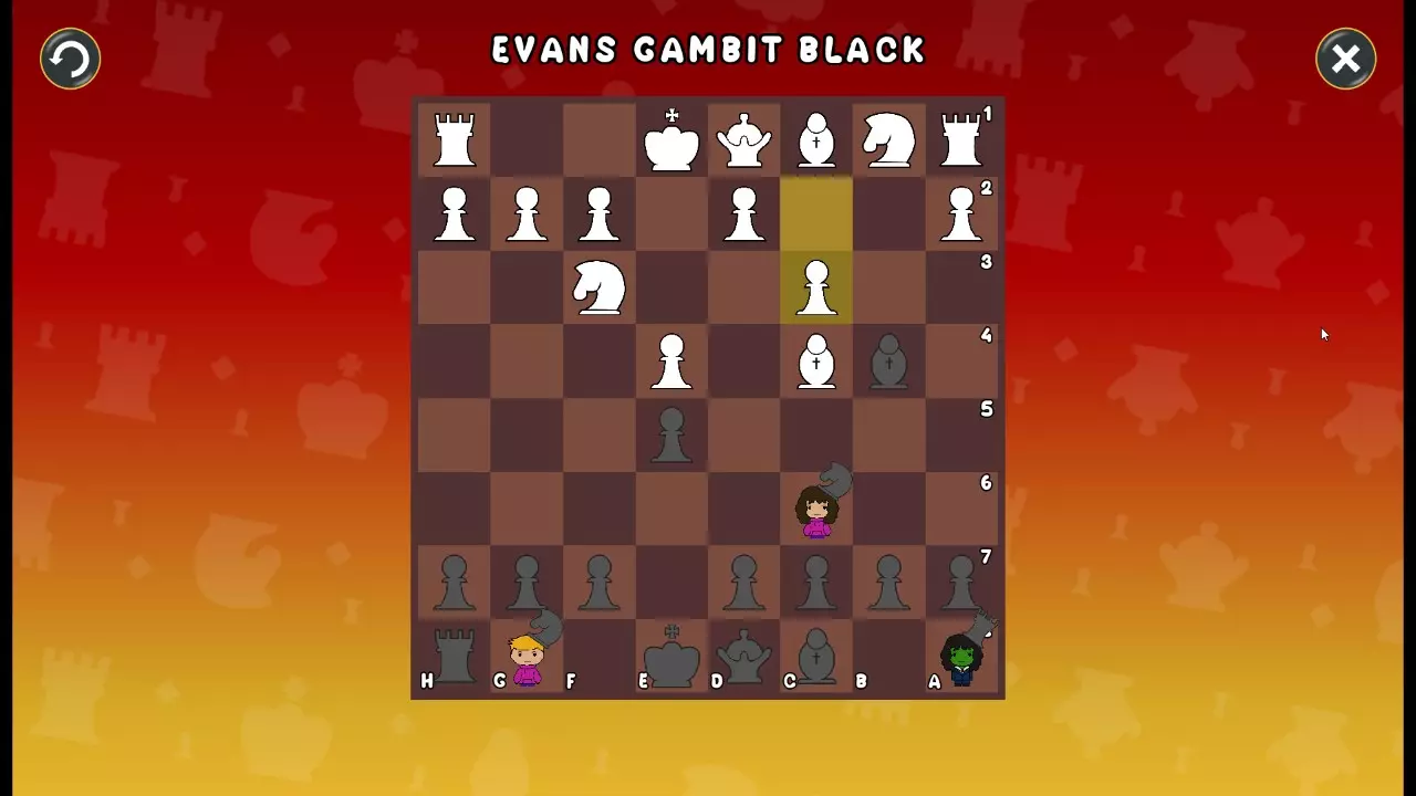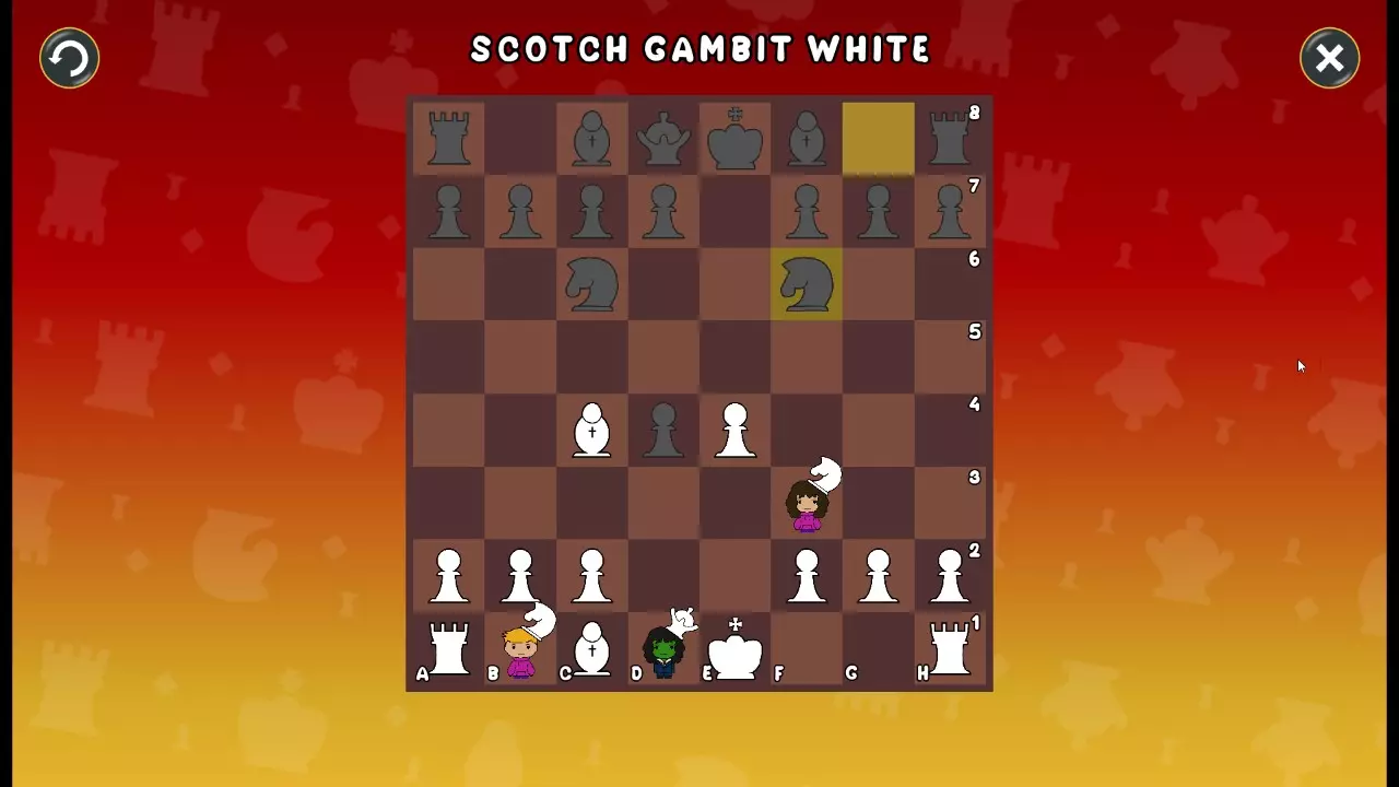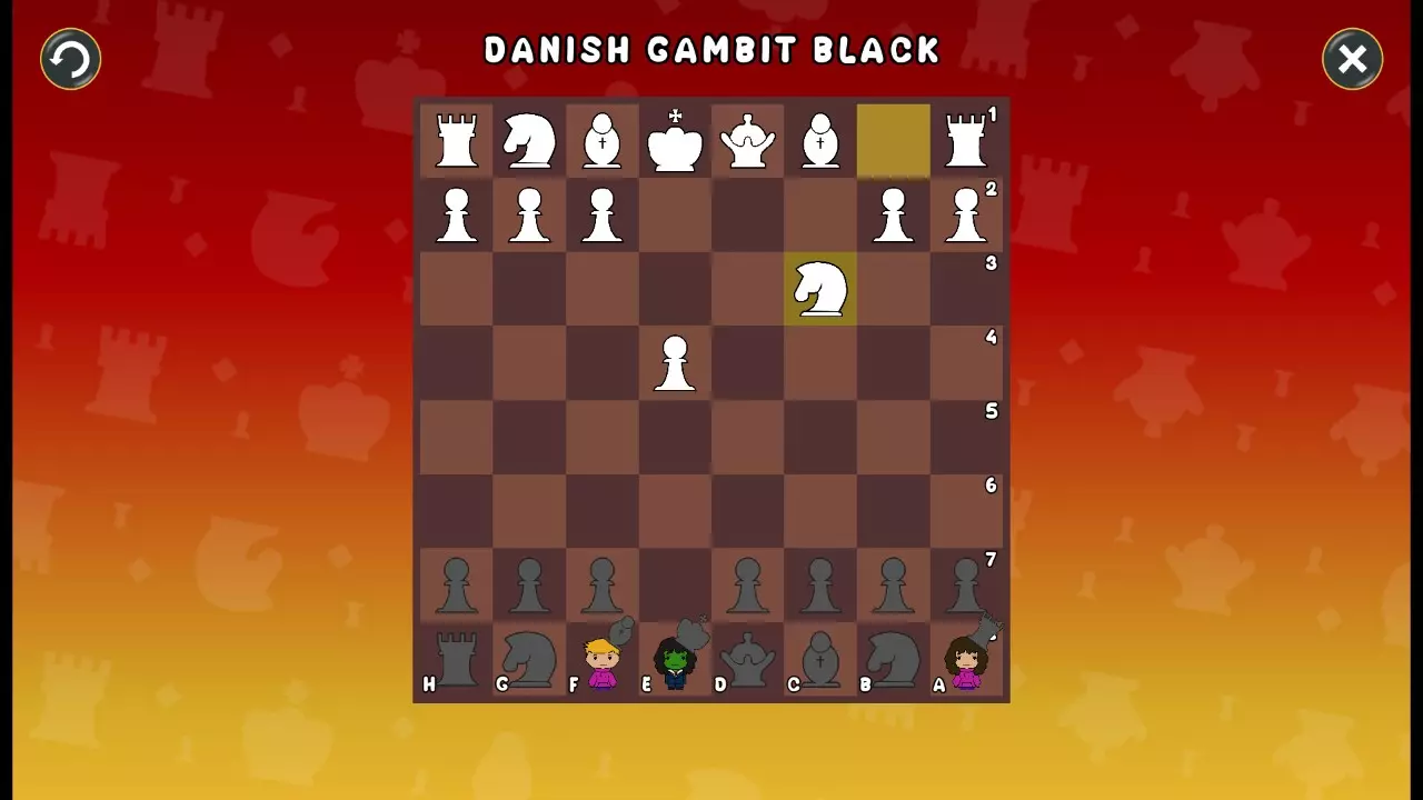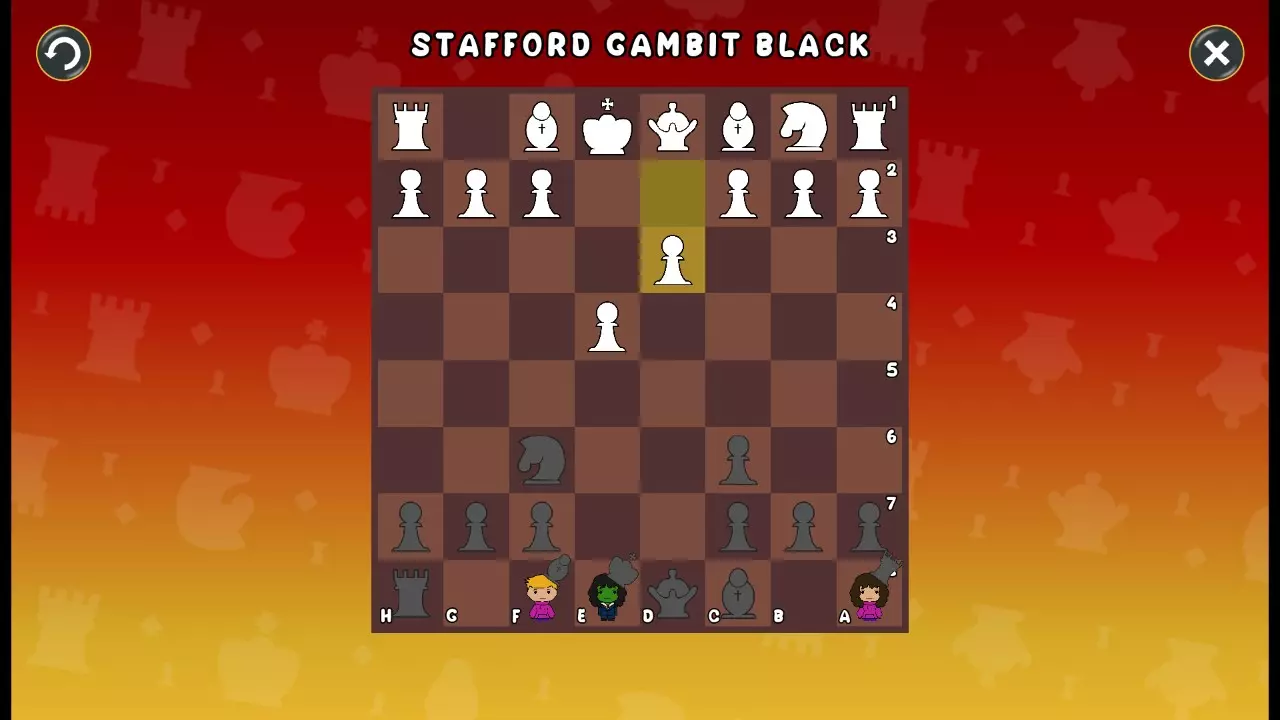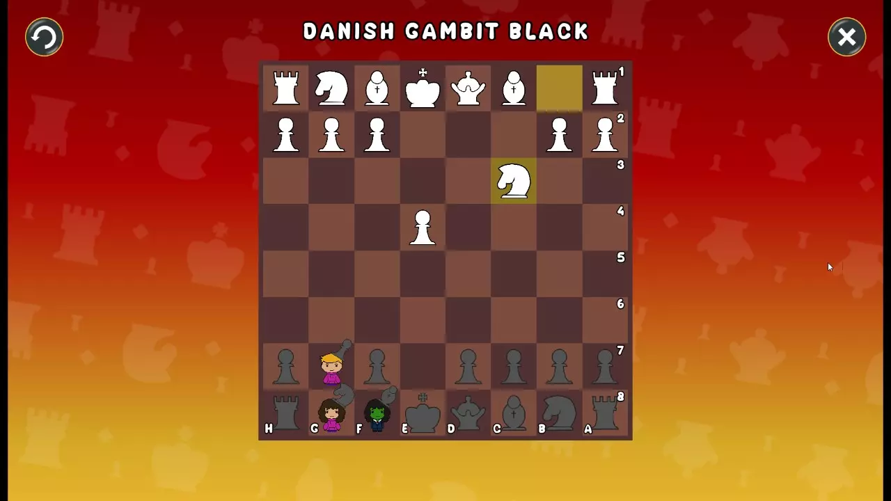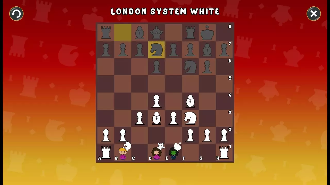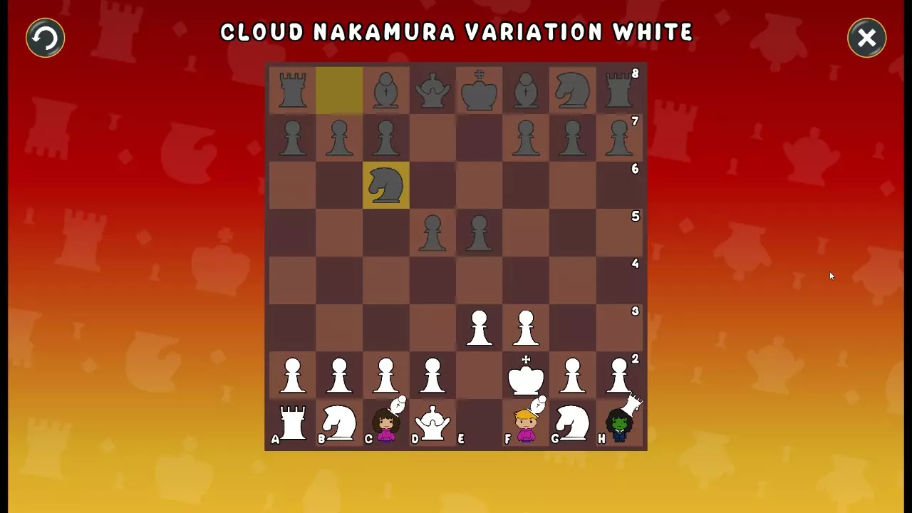 通过所有关卡并收集所有成就。 前言 那么,为我们带来了有趣的国际象棋变体。这里有需要在游戏过程中保护的【孩子棋子】。冒牌特级大师奥斯特洛夫·本德尔下过17盘西班牙开局。而我们则要下足足240盘棋,既执白棋也执黑棋。AI的智能水平并不突出:有时会走出强劲的棋步,有时却显得不堪一击。我们开启最高难度【d10】,然后开始游戏……