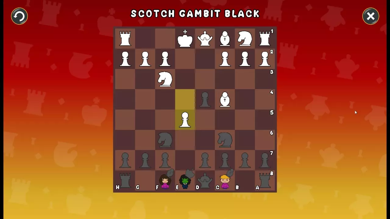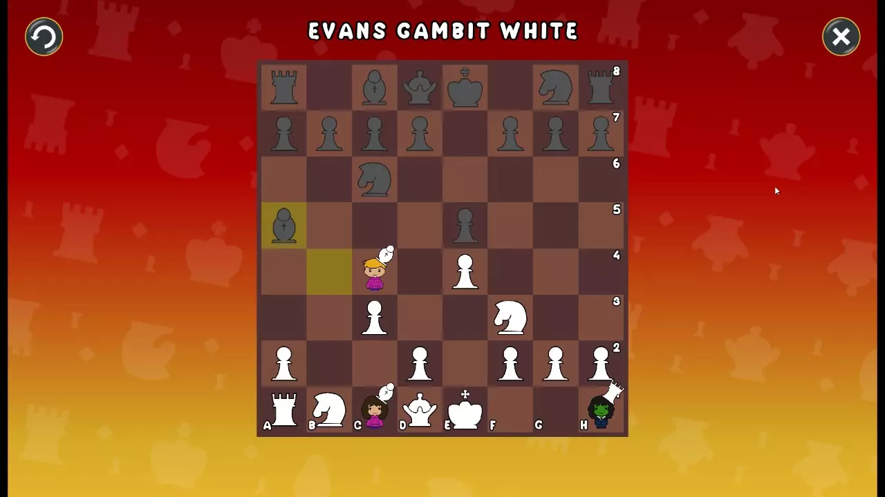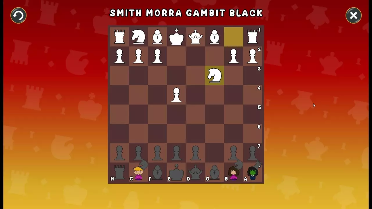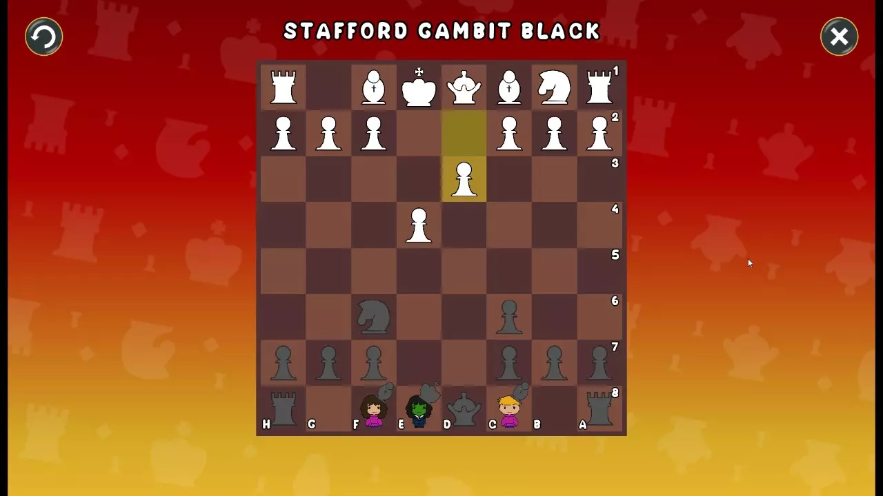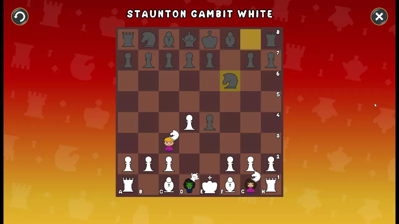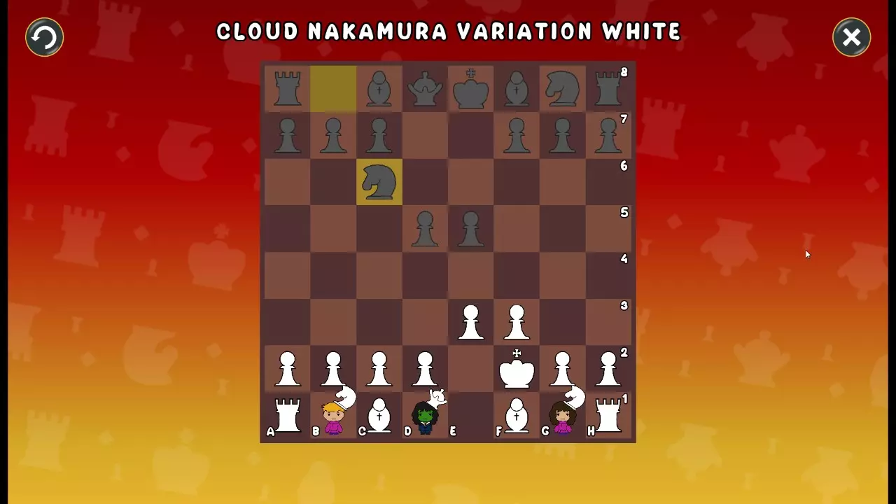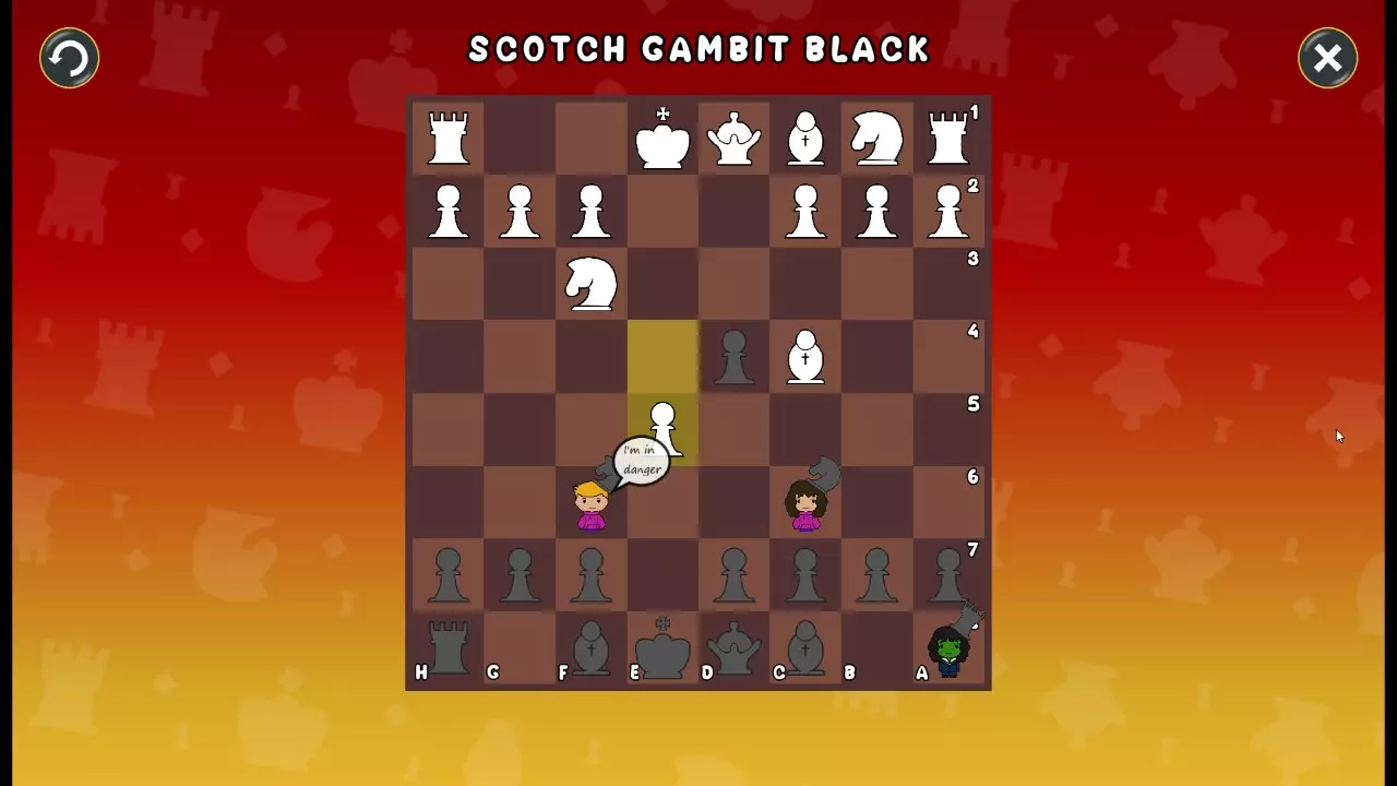 通过所有关卡并收集所有成就。 前言 那么,为我们带来了有趣的国际象棋变体。这里有需要在游戏过程中保护的【孩子棋子】。冒牌特级大师奥斯特洛夫·本德尔下过17盘西班牙开局。而我们则要下足足240盘棋,既执白棋也执黑棋。AI的智能水平并不突出:有时会走出强劲的棋步,有时却显得不堪一击。我们开启最高难度【d10】,然后开始游戏……