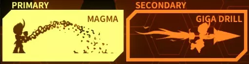 【概要】击败区域4的 Boss 后解锁。 一位看起来很擅长战斗的大姐姐。武器是岩浆喷射和钻头特攻,非常强力。由于性能特点突出,其擅长和不擅长的关卡区分明显,但在擅长的关卡中能发挥出真正惊人的歼灭力。 【主武器:岩浆】喷射岩浆洪流。虽然存在弹道狭窄、射速稍慢、射程有限的限制,但威力较高,即使随意扫射也能进行相当程度的战斗。 由于射速较慢,应对中距离敌人时容易反应迟缓,需要注意。升级后射击宽度会略微增加。 【副武器:巨型钻头】摆出钻头高速突进。是游戏中少有的近战攻击。此外,从发动瞬间到停止期间,对敌人的蓝色针状子弹免疫。 威力较高,可连续突进直到撞到地形或能量耗尽。发动至少需要消耗约五分之二的副武器能量条。 接触地形等物体后会略微向后反弹,需要妥善进行后续的恢复操作。 莉库莉丝