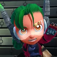 【概要】击败区域1的Boss后解锁使用。 如你所见,是个脑子有点不太灵光的角色。但武器性能意外地优秀。若以高排名为目标,需要考虑各种因素;但如果只是以通关为目标,其性能会非常易用。 【主武器:激光】发射照射型激光束。性质与仙人掌的主射击比较相似,但弹道无延迟,玩家的瞄准能更直接地体现效果。和仙人掌一样,不擅长对付群体敌人。在击倒大型杂兵时,如果将连击纳入考量,火力会略显不足。建议采取瞄准大型敌人→击倒周围杂兵→再次瞄准大型敌人的循环方式,逐步对其造成伤害。 提升威力后,光束会稍微变粗。 【副武器:微型导弹】可以发射连射导弹。虽然能在一定程度上按照瞄准方向攻击,但具有优先瞄准中距离敌人的特性,而且并非总能完全按照瞄准方向进行攻击。连射时的气势相当不错,威力也还可以。由于其弹道会从上方迂回,所以能在一定程度上越过障碍物进行攻击,但如果障碍物太近,就会在进入迂回轨道前撞到障碍物,导致子弹浪费。 茄子