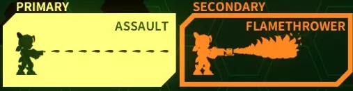 【概要】主武器和副武器均为前方集中型。因此攻击范围较窄,但两者都具备高威力。特别是副武器火焰喷射器,虽然射程较短,但能量效率良好,可以频繁使用。 【主武器:突击步枪】发射射程无限且弹速较快的子弹。单发威力不算太高,但连射能力非常强,所以基本无需担心输出问题。弱点是子弹没有宽度。尤其是初始状态下子弹非常细,对付成群涌来的敌人会有些吃力。应该利用加速来让敌人纵向排好队,然后依次击破。 升级后攻击范围会略微向左右扩大。 【副武器:火焰喷射器】短射程高威力的火焰喷射器。可以理解为是主武器的短射程版本,和主武器一样,左右方向的攻击宽度几乎没有。 但它的破坏力非常惊人,大部分杂兵都能瞬间击破,比较耐打的杂兵稍微灼烧一下也能轻松打倒。另外,它的能量效率也相当不错,这是其一大特点,能够持续使用相当长的时间。 霍莉