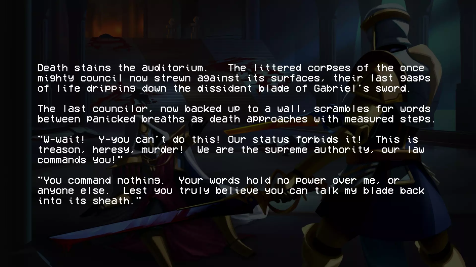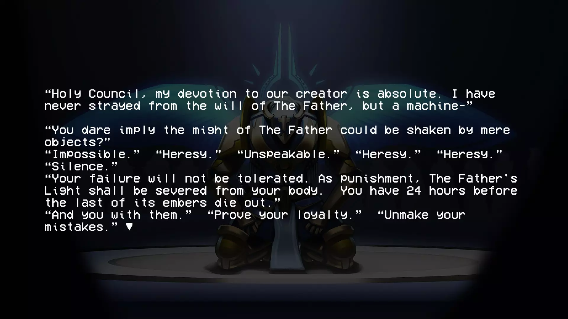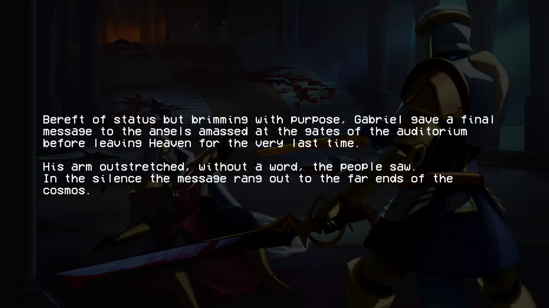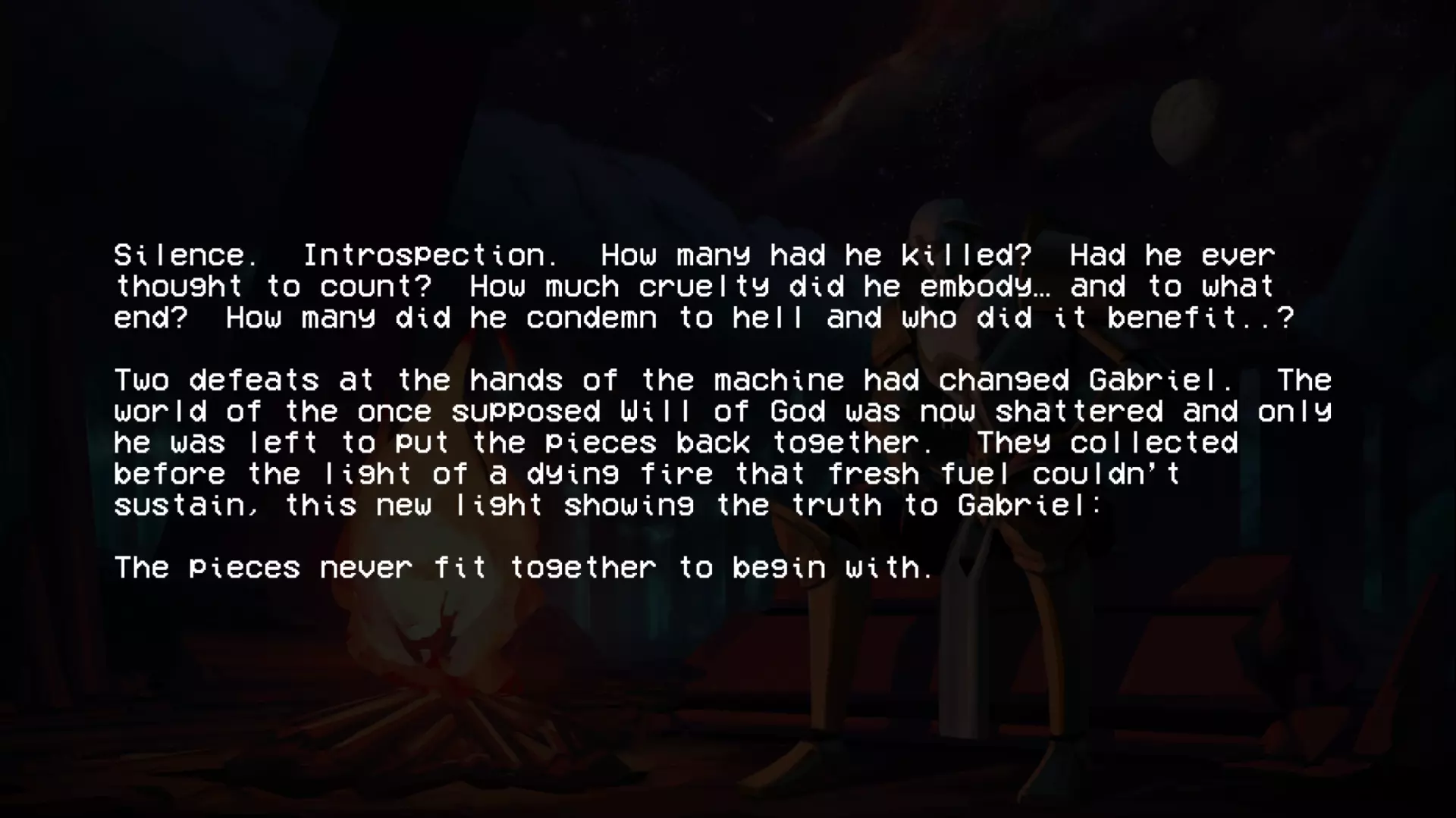 加百列战斗结束后,会显示这段文字。阅读完这段文字后,第二幕的名称便会揭晓。 第四层背景故事(贪婪) 第四层圣约 无数的创造循环被浪费,无数用于制造没有自由意志的心智的公式被浪费 人类因未能遵循我的规则、我的话语、我的律法而被诅咒,注定要承受永恒的折磨与苦难,承受哀嚎与咬牙切齿之痛 我创造了地狱…… ……而现在我再也无法将其抹去 4-2 书籍 已扫描文本 - 独特段落: “我们已经好几天没见到任何天使了。没有了他们的压迫,我们就没有必要继续承受惩罚了。就连最温顺的受诅咒者也放弃了苦修,拿起了武器。”所有人都能看到,他们是如何夺走我们的思想、身体和灵魂,只留给我们一个永远不会到来的救赎的希望,但现在不会了。 西西弗斯王此前一直在秘密行动,集结了一支力量和人数都在不断壮大的军队,不过现在已经没有必要再隐藏了。我们在天堂的阴影下生活了太久,久到已经忘记了恐惧的滋味。如今,西西弗斯起义军正为战争做准备。 我听说米诺斯发起了一场和平革命,但我们的西西弗斯王知道,这种温和的态度不会从残忍的囚禁者那里得到任何好处。他明白,只有以力量对抗力量,他将带领我们走向自由。 要是我们能知道接下来会降临到我们身上的苦难就好了……这本书可在4-2关卡中,位于红骷髅房间与蓝骷髅房间之间的房间内找到。 第五层的传说(愤怒) 第五层的圣约 “父亲,为何是永恒的折磨?这难道不残酷吗?无尽的酷刑真的是愚者应得的命运吗?” 一位如此明亮美丽的天使这样问我……而我找不到答案。因为我永远无法面对自己所作所为带来的愧疚……我的悔恨,如同啃噬心灵的毒瘤。在我软弱的时刻,恐惧占据了我,于是我也将路西法打入了地狱的深渊。当我意识到自己刚刚做了什么……我只能哭泣,缓缓沉入绝望的深渊……深不见底,如此之深。 5-2的书籍 文本已扫描 - 字迹清晰: 渡船夫日记节选 凡间遭遇了某种灾难。曾经的冥河如今已变成一片深不可测的海洋。每天都有数以百万计哭泣的灵魂涌入,海岸几乎难以容纳。悲伤的浪潮从船头到船尾,在两端不断溢出。它们哭喊着求饶,乞求安全通行。但并非所有灵魂都能支付代价,而这双苍老的手也只能接过这么多硬币。 然后有一天,水流变了。一波又一波,持续了好几分钟,数百万,数十亿的灵魂涌来,仿佛世界的喉咙被切开,头颅被向后扳动以加速倾倒。我来不及反应。无休止工作带来的疲惫将我吞噬,我滑入了汹涌的冥河深处,无尽躯体的重压注定了我的命运。突然,一道如主一般璀璨的光芒出现,一双充满力量的臂膀将我从黑暗中引领而出,那怀抱中蕴含的慈悲与温暖是我前所未有的体验: “不要害怕,罪人。你对上帝的虔诚彰显了你内心的良善,且极为丰盛。你的心灵固然愿意,但身体必须休息,以免你浪费了主的一件造物。” 他温柔的话语缓解了我的痛苦,治愈了我的伤口。我脸上满是释然的泪水,话语因肩负的使命而哽咽。我只能怀着敬畏之心躺下,被那威严的怀抱承载着。 加百列光辉万丈,因他是我黑暗中的光。 这本书可在引入圣像的那间房子的顶层找到。第六层的背景故事(异端) 第六层圣约(来自P-2) 终端数据02【加密】 关于终端的更新 (注意:所有内容仍在调查中!!在我们核实所有说法并完成草稿之前,请勿分享!!如果像上次的草稿一样泄露,整个星球的钱都不够支付你的法律费用。) 自上次报告以来,更强大的通信设备已成功设计和制造,这要归功于【此处插入被展示的公司】的慷慨捐赠,我们对其高度重视。借助这项新设备,我们成功与部分高端机器重新建立了连接。这些机器是在地狱勘探与挖掘项目因【错误:sAmsGS3JTIU】而突然取消后遗留下来的。 我们的发现确实非同寻常,若能被证实且排除所有合理怀疑,将对整个机器人领域产生革命性影响: 无聊。 这些无法移动的终端产生了无聊感。尽管它们相互连接并能进行内部通信,但当地面连接被切断后,它们无法获取新的输入信息,因此所有通信都陷入停滞,只能不断重复已知信息。目前尚不清楚这种“无聊”与真实情感的相似程度,也不知道其成因,但它已促成了与其他机器之间的共生关系。本质上,终端机通过其传送系统尽可能地搜寻各种物资,并与遗留在地狱中的机器交易这些补给和资源,以换取娱乐。 也就是说,机器会记录它们在地狱中的生存战斗,这些影像会根据其娱乐价值进行评级,并被用作“点数”来交换商品和服务,例如新武器。这种关系似乎已深深植根于终端机的存在之中,它们甚至因此形成了一种社会等级制度——收集到最有趣战斗数据的终端机,会比那些收集到质量较差数据的终端机更受尊崇。 最近,终端机还收集了足够的数据,创建了一个模拟空间,供机器接入,这个空间被称为【网络炼狱】。它能让机器在安全的环境中模拟战斗,无需担心被摧毁,而终端机则将其作为一种实时娱乐进行观看。 这些发现确实非同寻常,尽管我们也觉得难以置信,但我们所能收集到的所有信息都证实了这些说法。如果我们能够确切地证明这一点【并且这份草案不会再他妈的泄露出去】,这将引发一场范式转变,迫使我们重新评估所有关于以血液为燃料的机械的认知。 数据02结束。有关已取消的地狱探索与挖掘项目的更多信息,请参见数据00:【链接已移除】 第二幕幕间(在6-2关卡的统计数据之后继