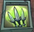 冷却时间:6/5/4秒 伤害:156/312/468 移动速度:100 持续时间:1.4秒 刀扇:在你前方呈弧形投掷飞刀