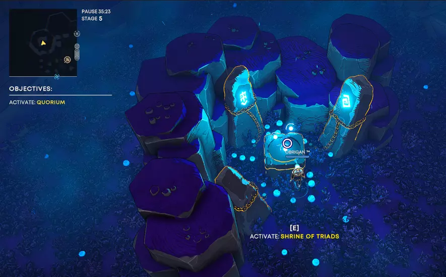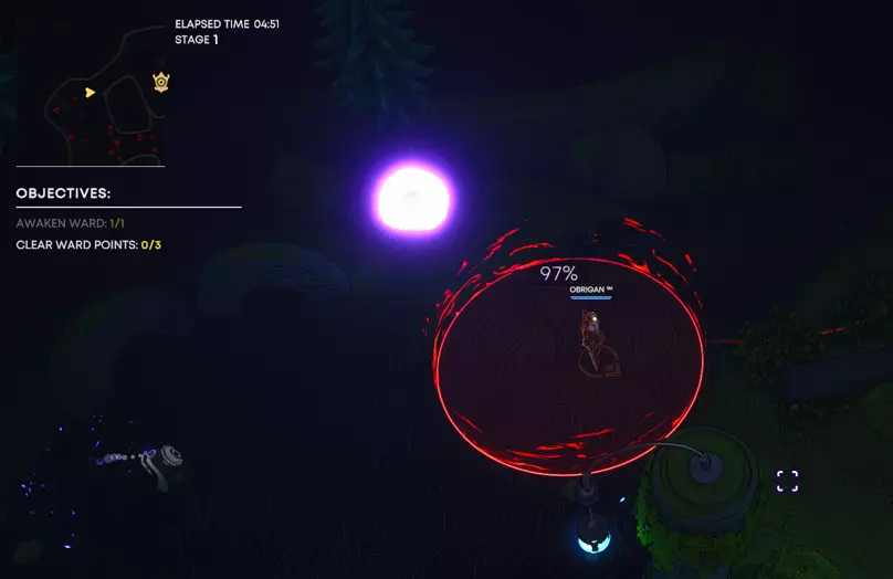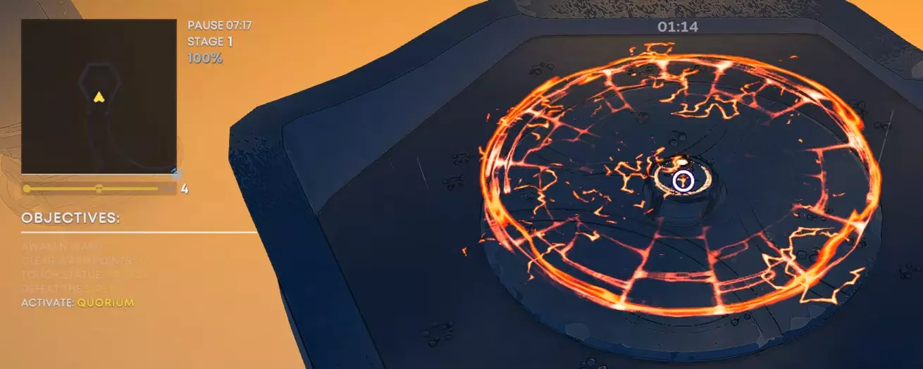 在30秒内激活所有远古之石的能量核心。先收集所有能量核心(场景1),然后快速冲向远古之石(场景2),不要在途中浪费时间击杀敌人。