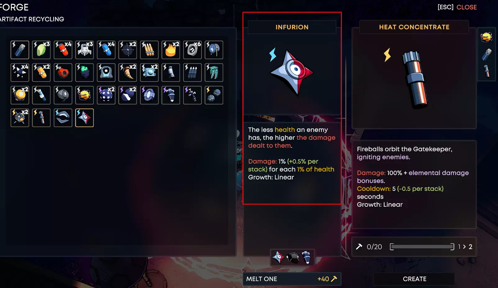 在锻造炉中熔化任意一枚创造符文。当你获取符文(蓝色物品,列表如下)后,可在关卡间隙的锻造炉中将其摧毁。