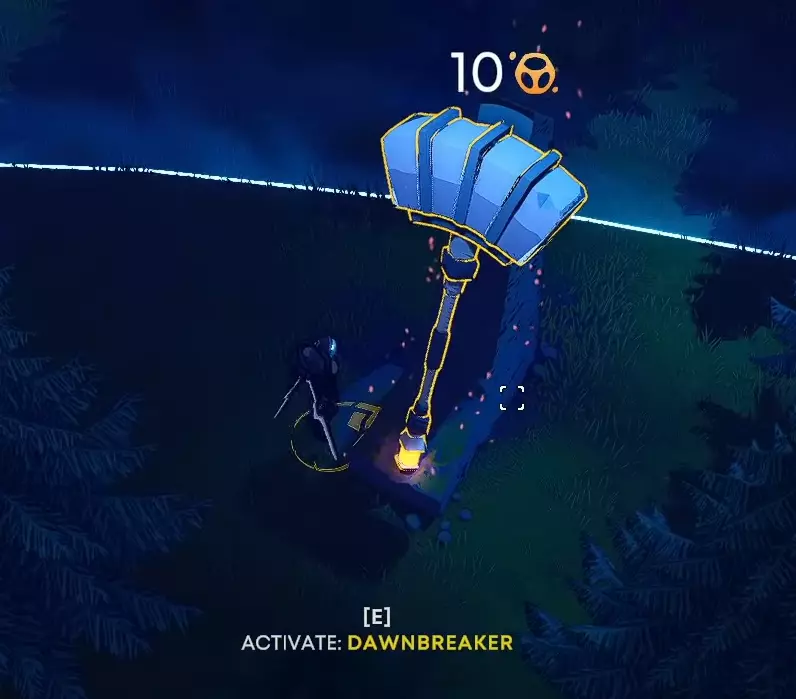 找到黎明使者。 在初始地图(极光、符文森林)中的某一张地图上,你可以找到一把锤子。使用10点能量激活它,即可获得该成就和角色。