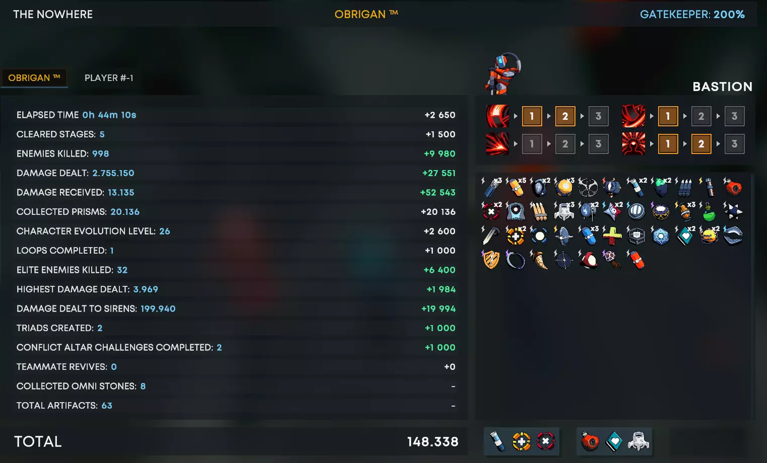 一定要确保在每个关卡中尽可能收集所有神龛。这将通过在游戏过程中提升一些伤害/生存能力来给你带来很大帮助。编辑于8月20日:只要你能快速收集,仍然可以这样做,并且不要忘记,即使你不能100%清理一个关卡,你也会保留金币以便在关卡之间进行升级,所以这仍然是值得的。 建议在离开区域前清理完整个地图,并在每个关卡积累1000金币用于【Delta】(例如:第一关1000金币,第二关2000金币等,因为游戏过程中价格会上涨)。我建议使用键盘游玩,因为游戏没有自动射击功能,技能需要手动释放。使用鼠标瞄准会更精准,但如果你喜欢的话,最终也可以使用手柄游玩。默认情况下,我们将始终以100%难度进行游戏,除非另有说明。TITAN-200